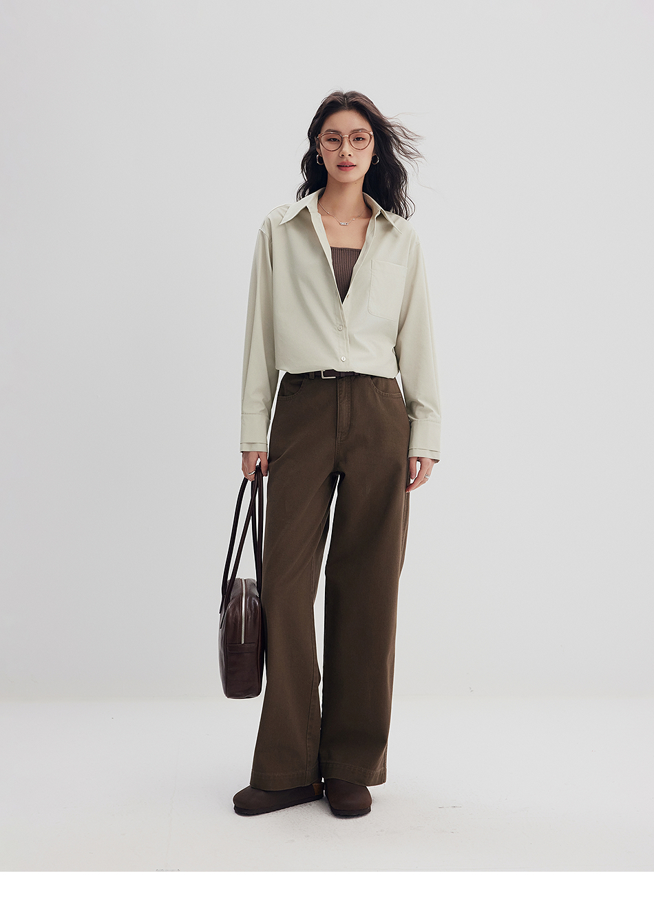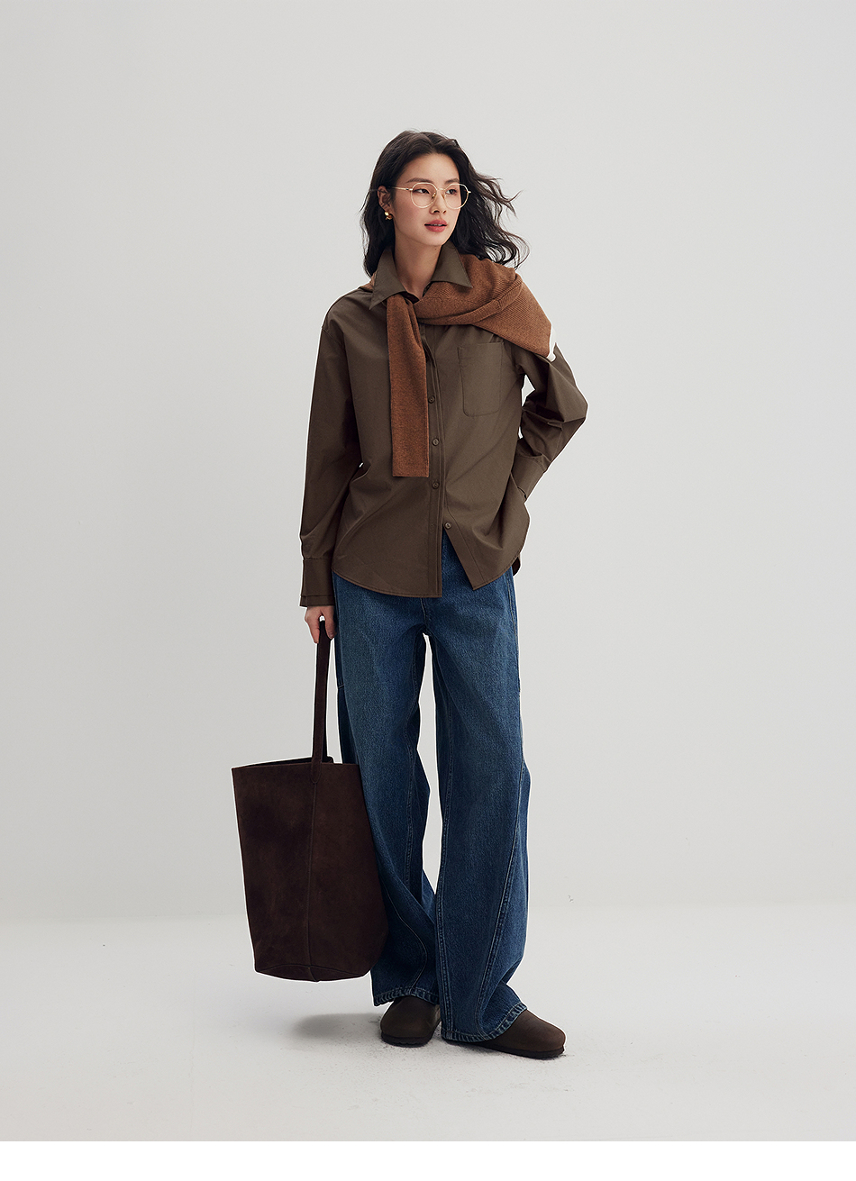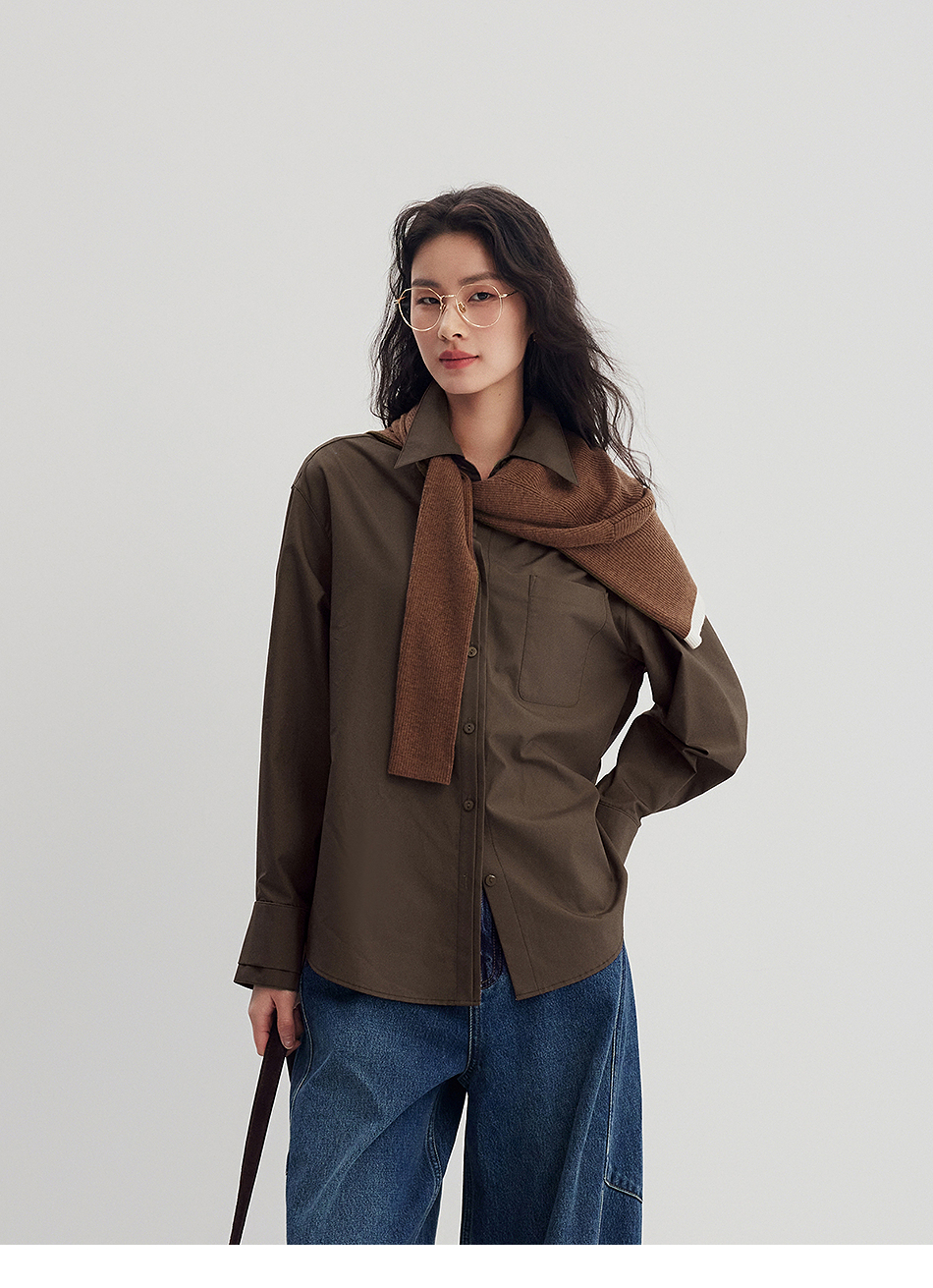 棉仓356604019-液氨双门襟佰搭ROW风廓形衬衫