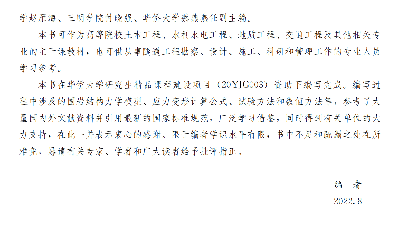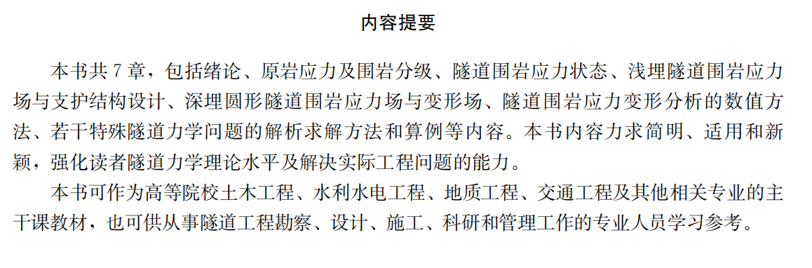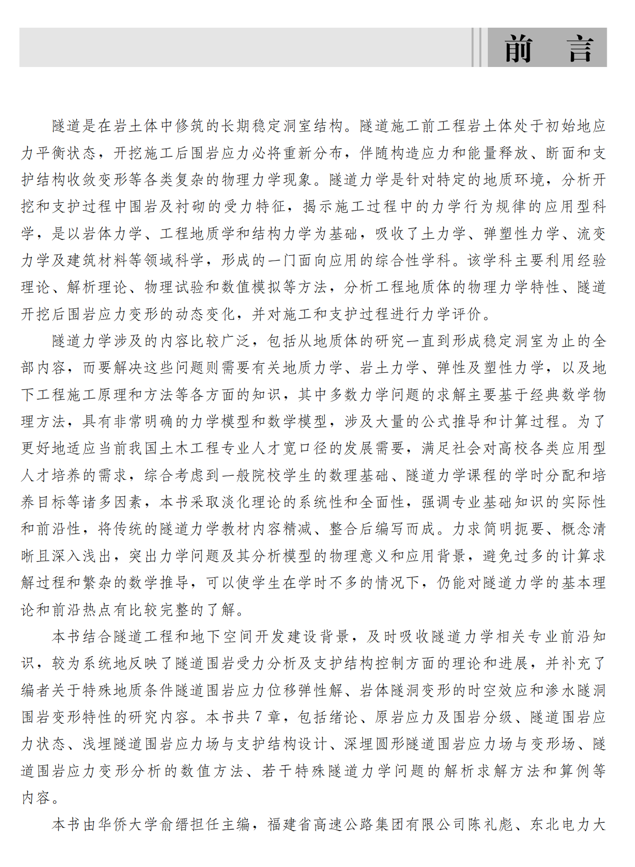 隧道力学简明教程 主编俞缙 普通高等院校土建类专业“十四五”创新规划教材