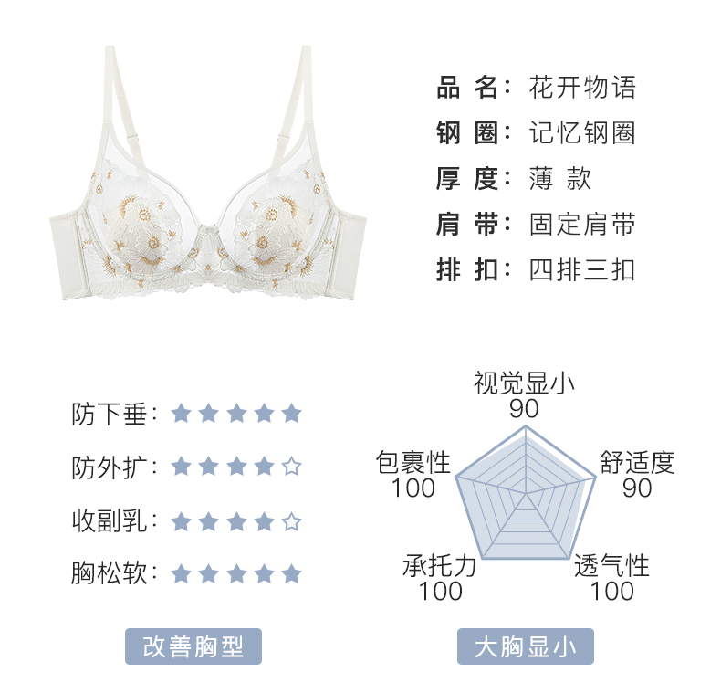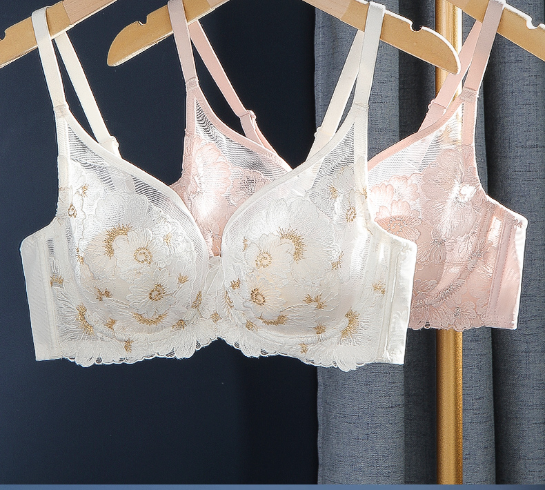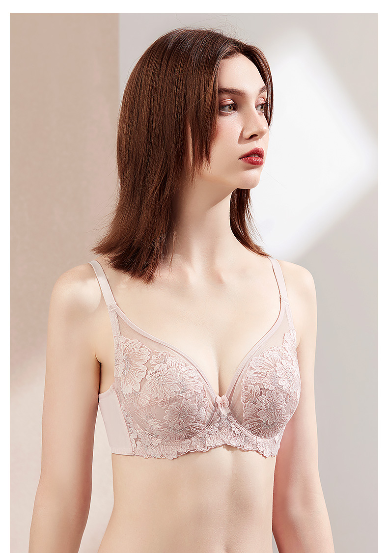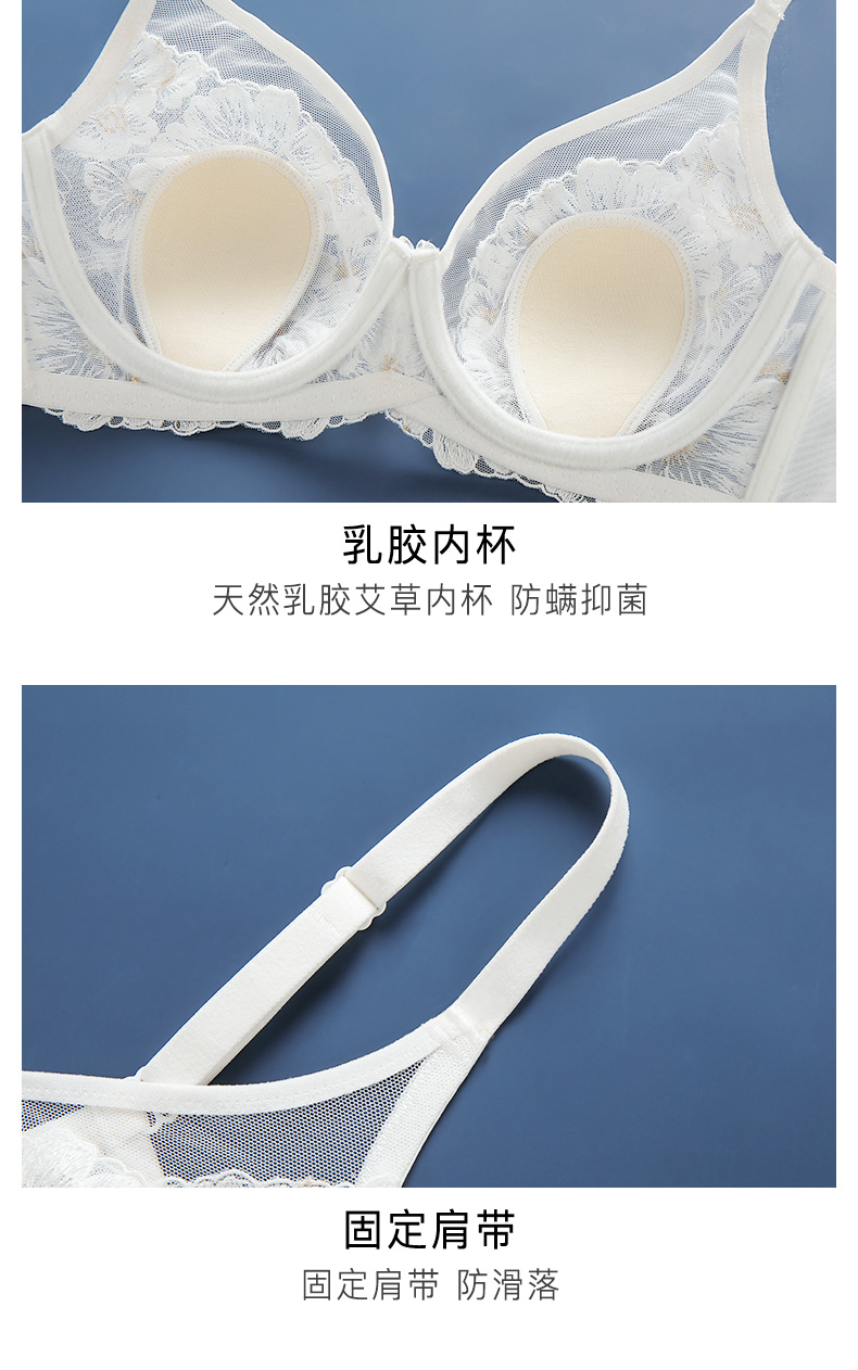 梦芭蒂内衣女软钢圈超薄款乳胶刺绣文胸蕾丝网纱性感胸罩花开物语套装