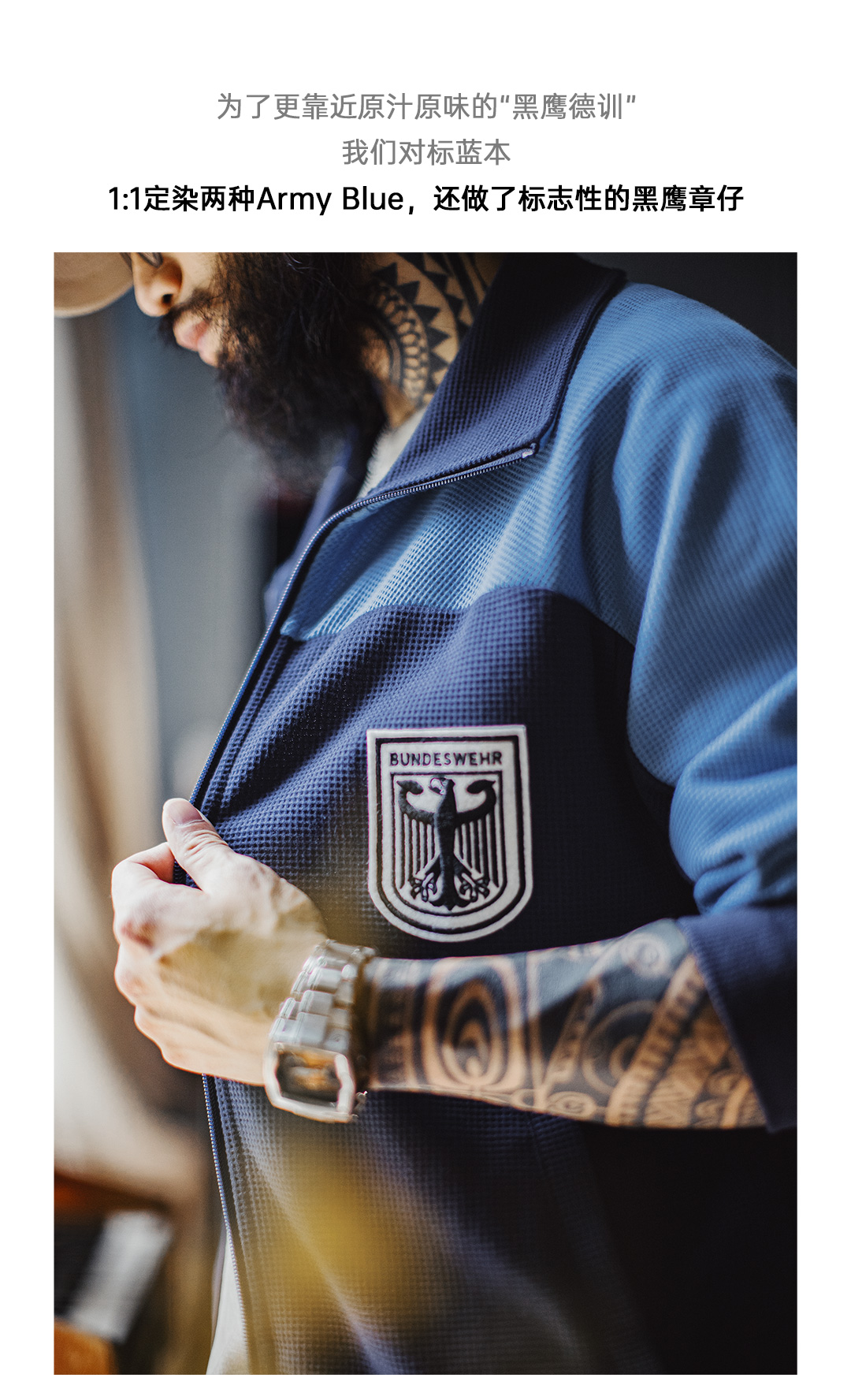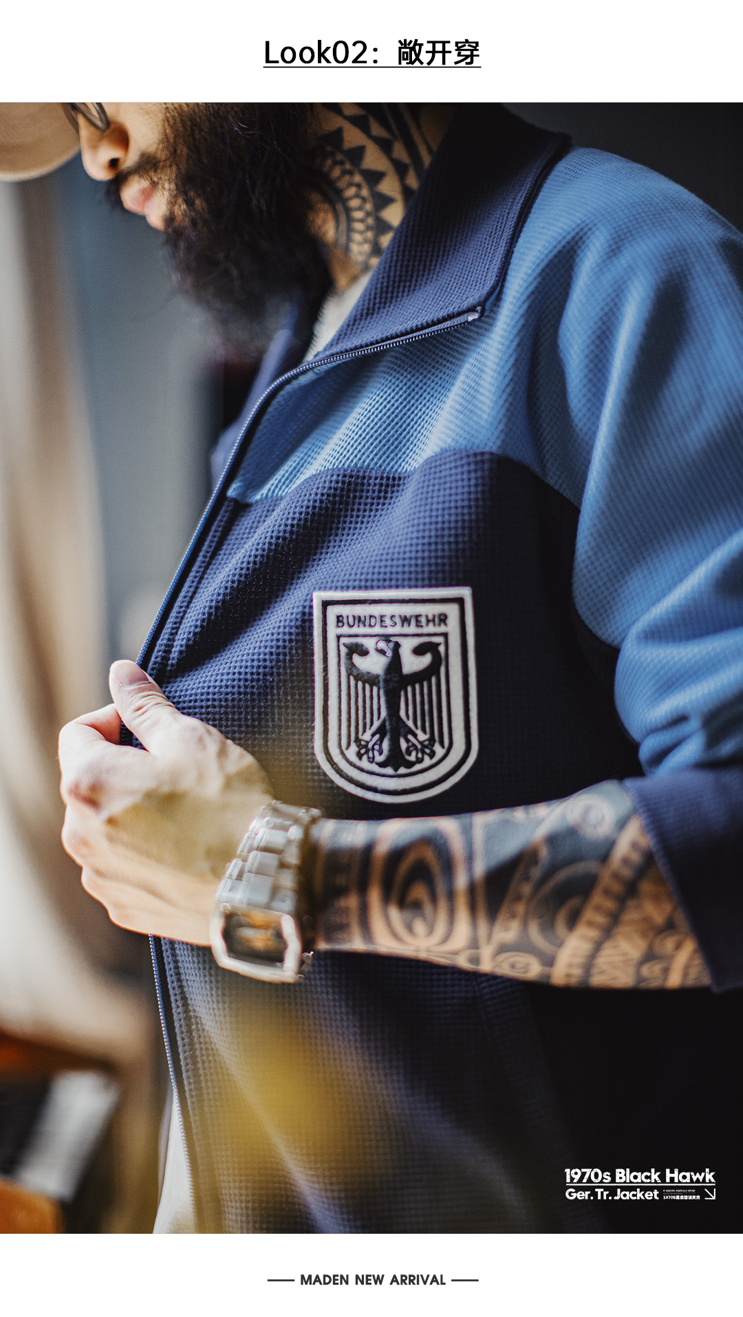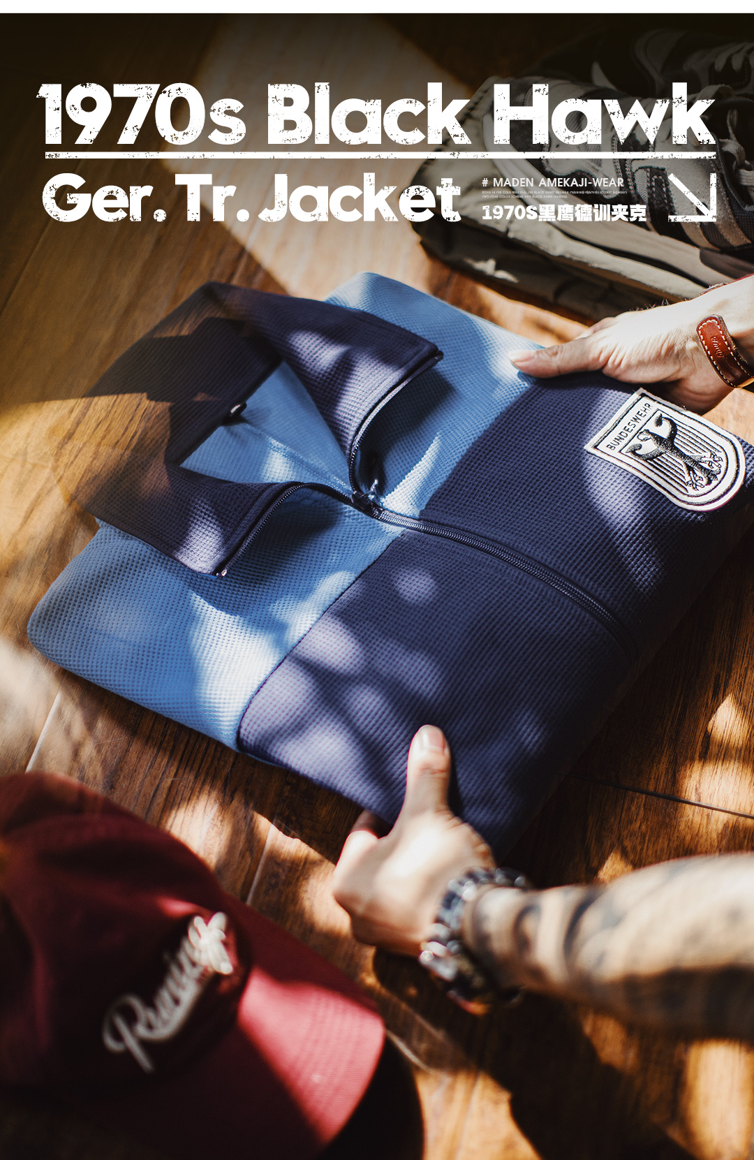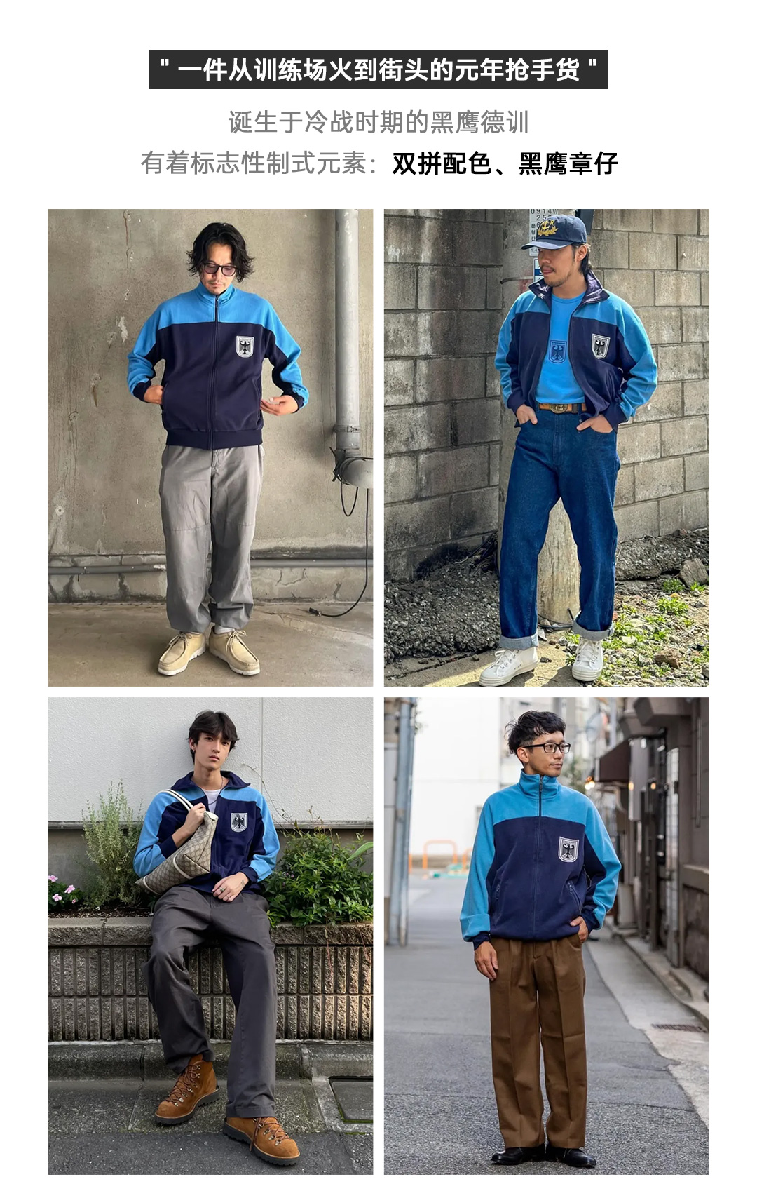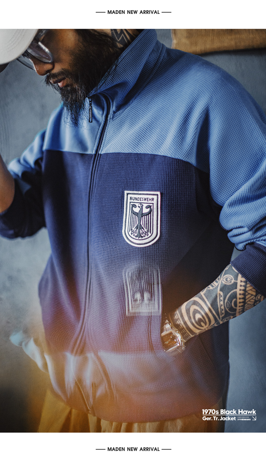马登工装美式撞色教练夹克华夫格立领蓝色训练服透气长袖外套男秋