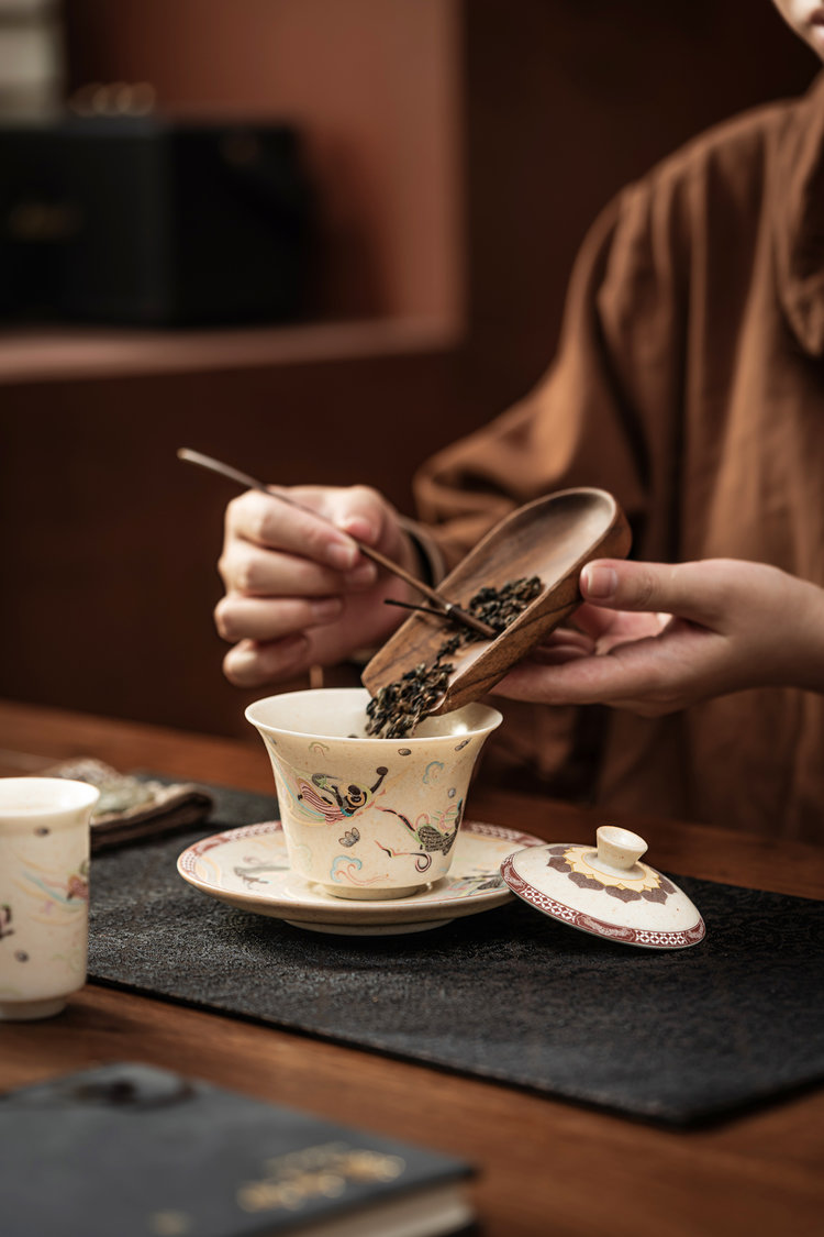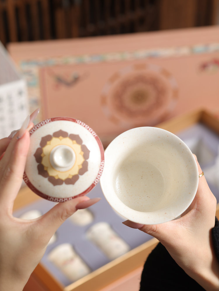 【售卖规格三】敦煌飞花映沙·盖碗7件套茶器(盖碗*1、闻香杯*4、碟子*1、公道杯*1)