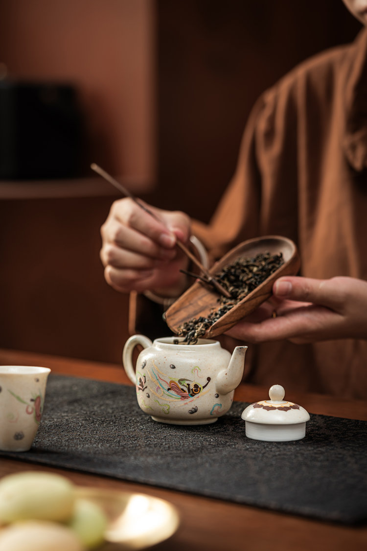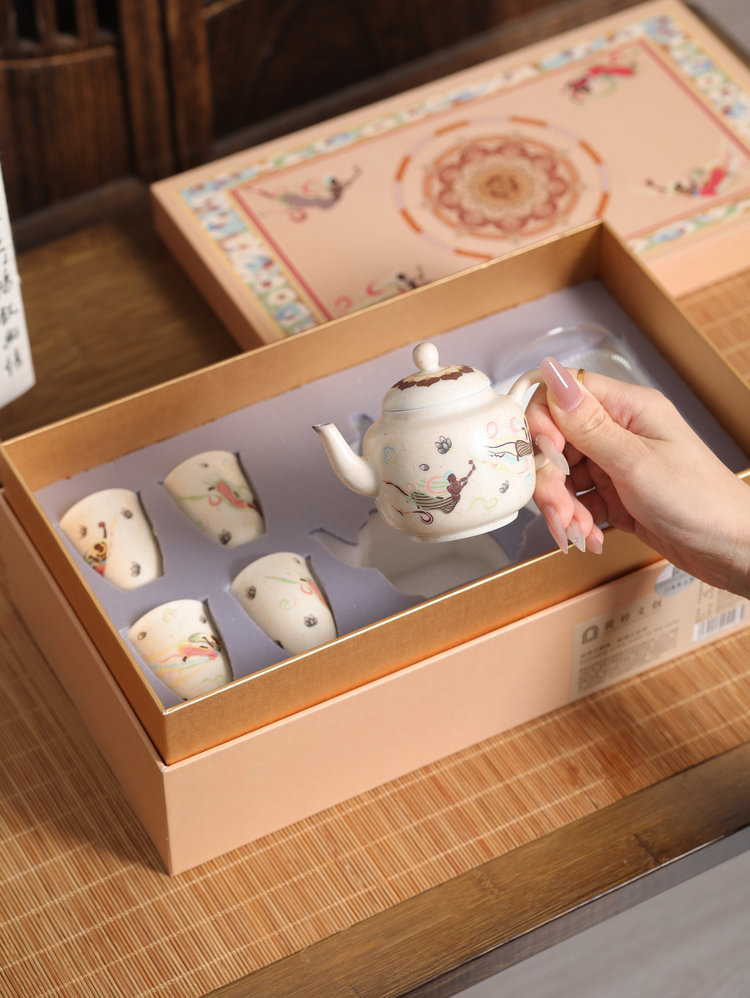 【售卖规格二】敦煌飞花映沙·茶壶6件套茶器(文壶*1、品茗杯*4、公道杯*1)