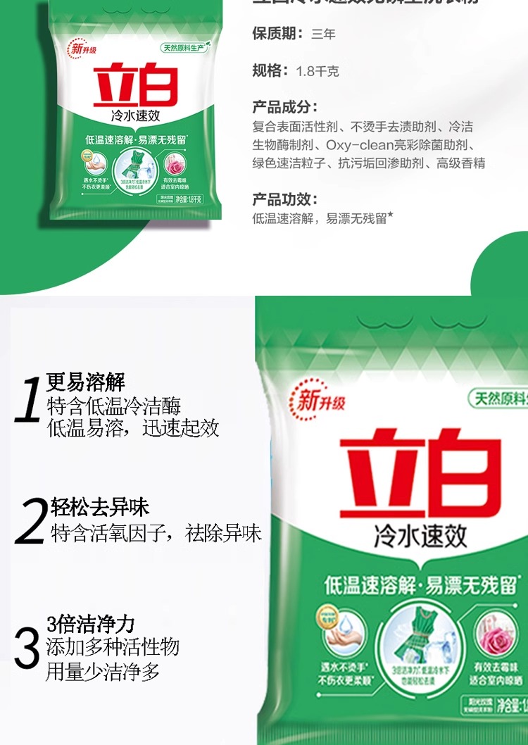立白冷水速效无磷洗衣粉1.8kg/袋
