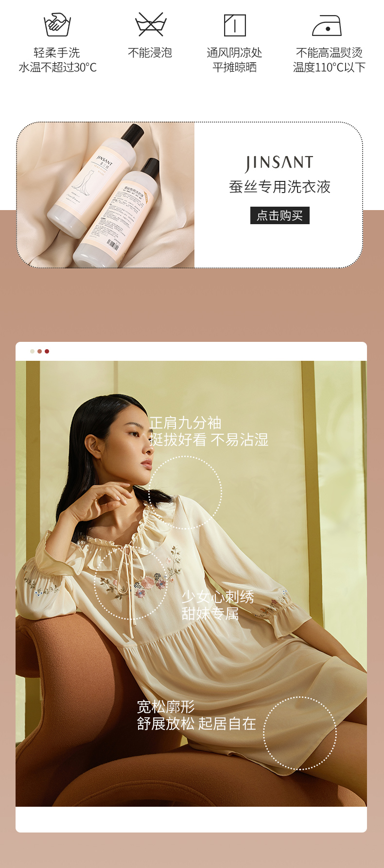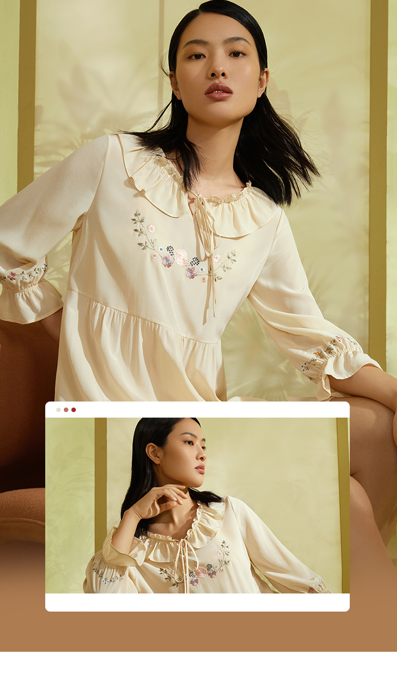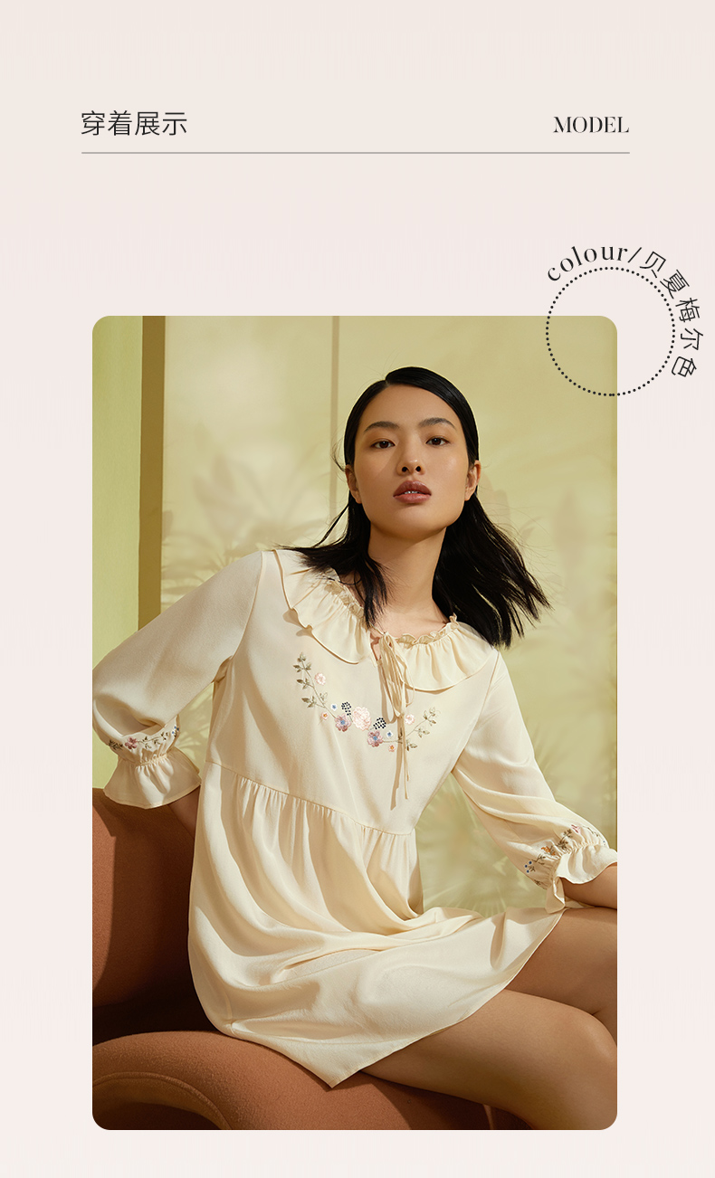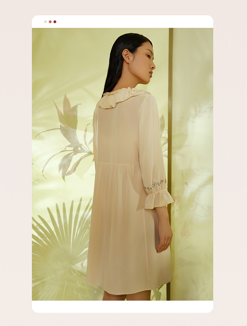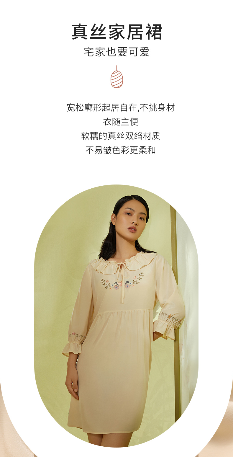 金三塔真丝双绉(不易皱真丝)甜美少女心桑蚕丝绣花舒适睡裙 YSFCA313