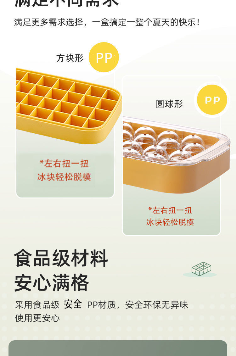 【一秒取冰】冰块模具大容量PP冰格食品级家用储冰制冰盒冰球冰箱冻冰块神器