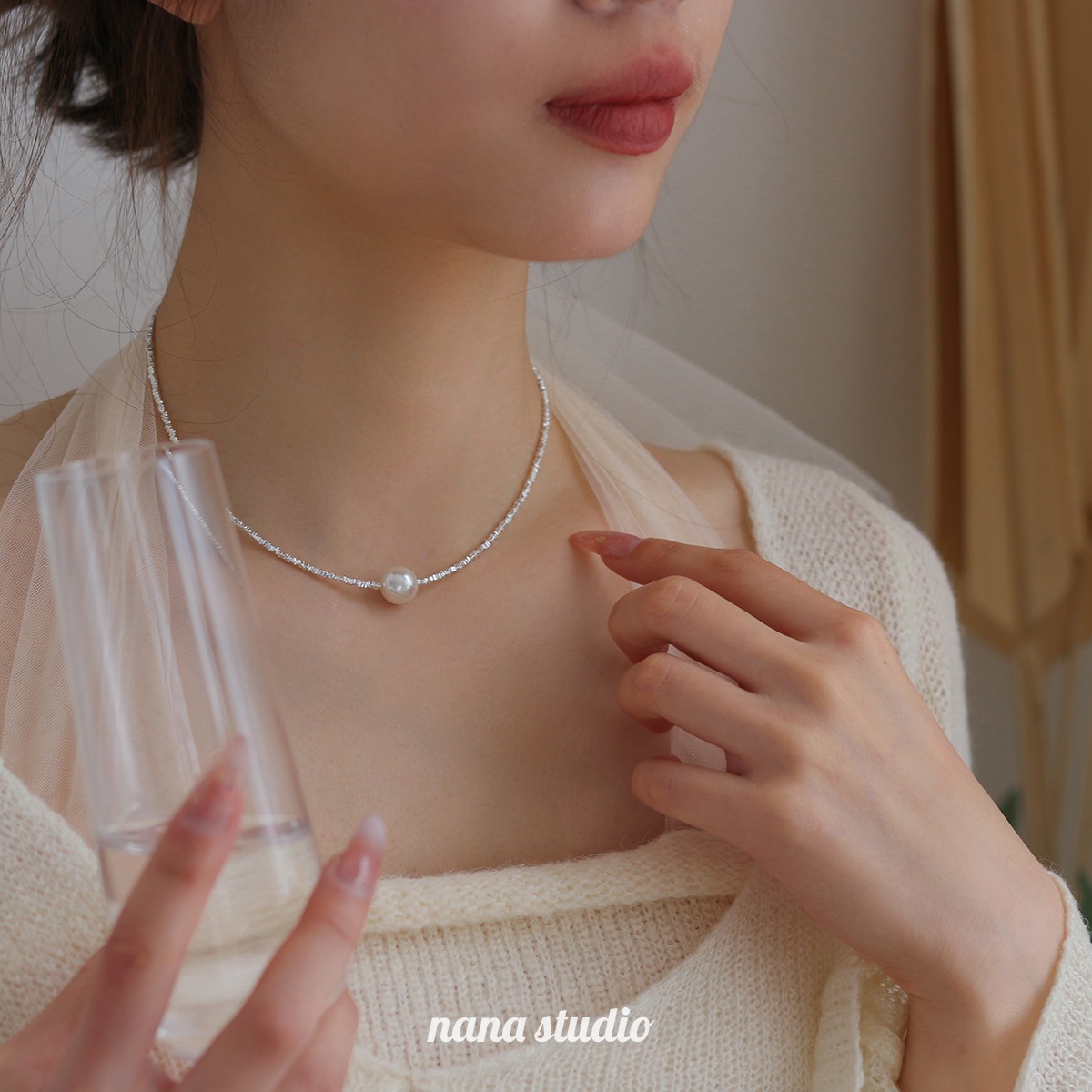 六鑫珠宝 碎银子淡水珍珠项链 925银+珍珠 规格10-11mm
