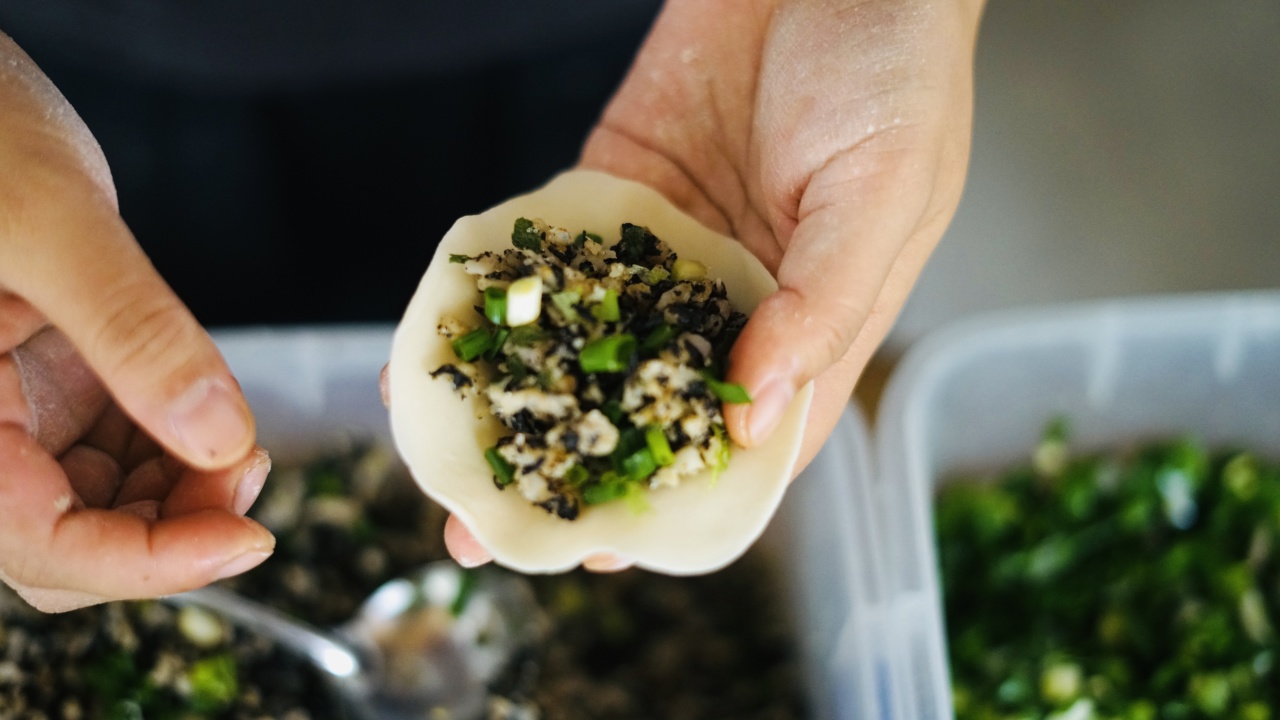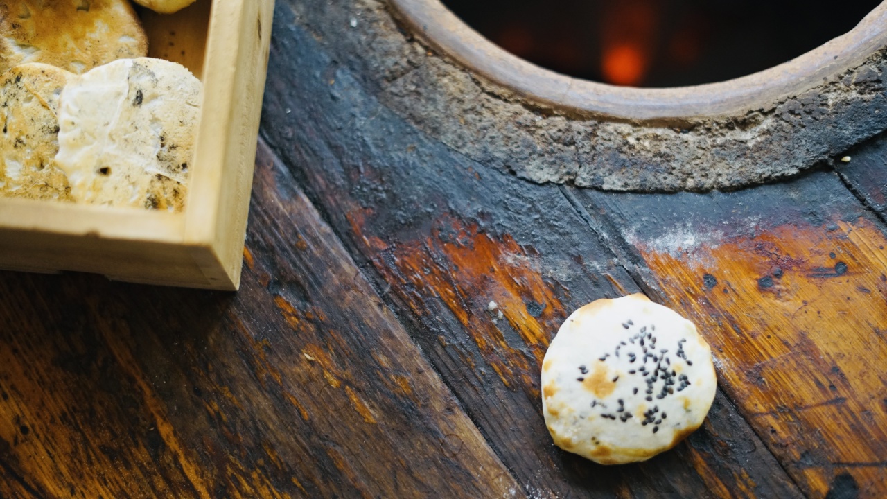 秋莲妈妈的小鲜肉饼,无论在用料还是制作工艺上都很用心。面用的是精选的小麦粉,在处理面团的过程中要通过人工的揉、捏、打、捶来让面团更筋道,面团中不加盐和其他添加剂;梅干菜是千岛湖当地传统工艺腌制,咸甜有味;小葱是新鲜现摘的,葱香浓郁;猪肉是千岛湖高山猪五花肉,肥瘦均匀、肉质细嫩紧实。前后总共需二十道工序才能制作出来一颗小饼,好的馅料带来香味浓郁的口感,繁杂的手工制作成就烧饼的淳朴滋味。做好的饼子,用果木炭烤制,火焰缓缓舔舐着饼子的底部,那温暖的火光不仅赋予了饼子金黄色的诱人外表,更让果木香与饼香交织,悠悠飘散,闻到就让人食指大动!