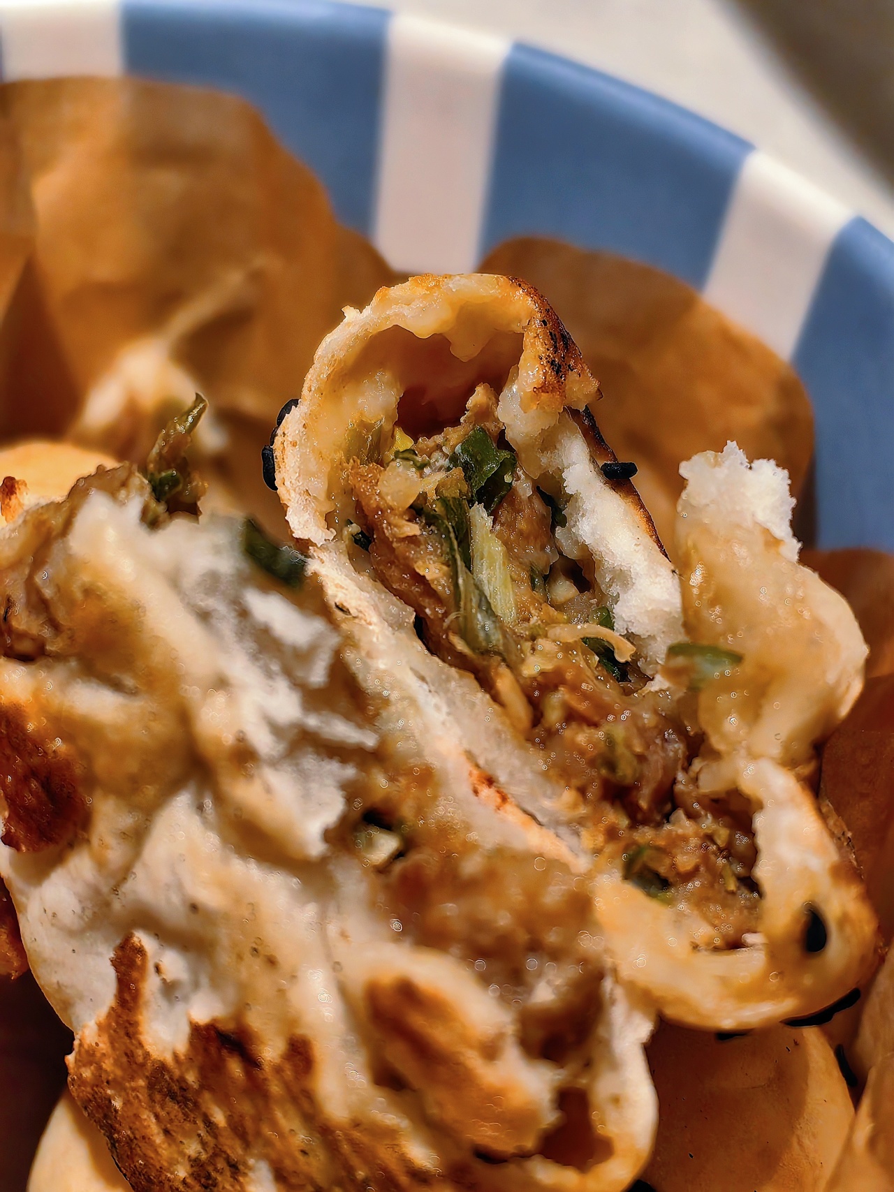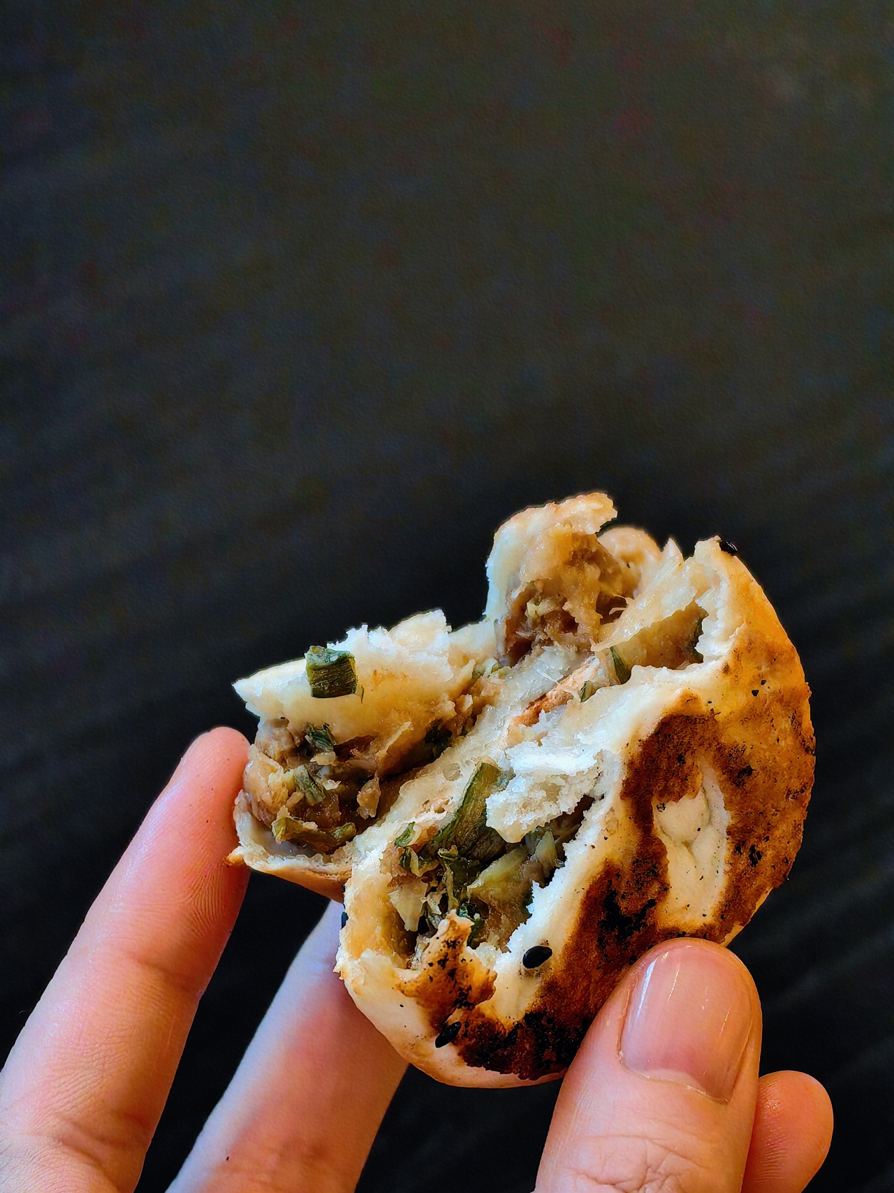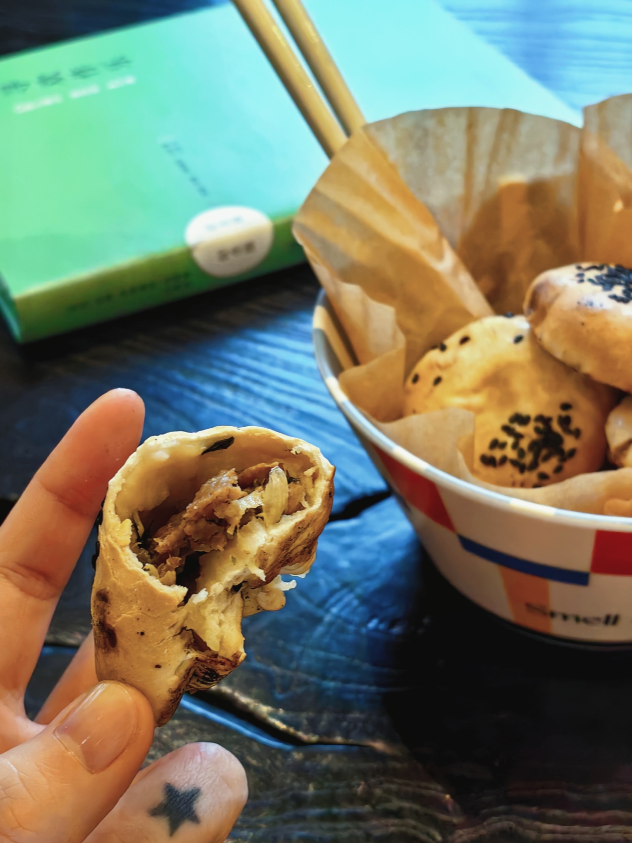 秋莲妈妈出新品啦!小鲜肉烧饼,太过好吃,必须赶紧插队把它给上了!小小个,但很有料哎,肉馅那真是超满,而且有很多葱哎!