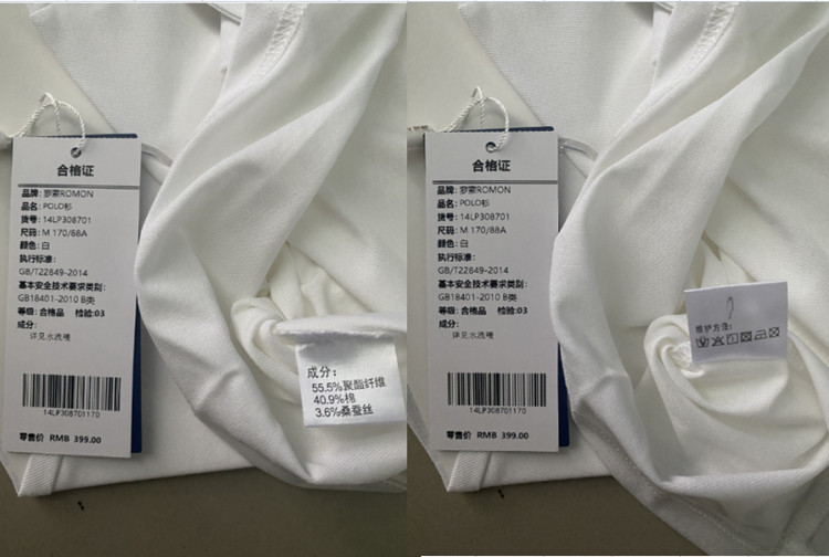 面料:55.5%聚酯纤维 40.9%棉 3.6%桑蚕丝