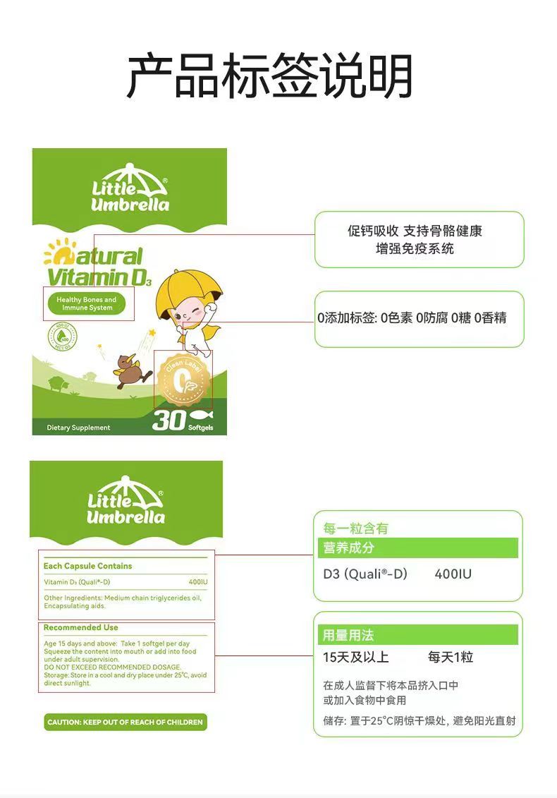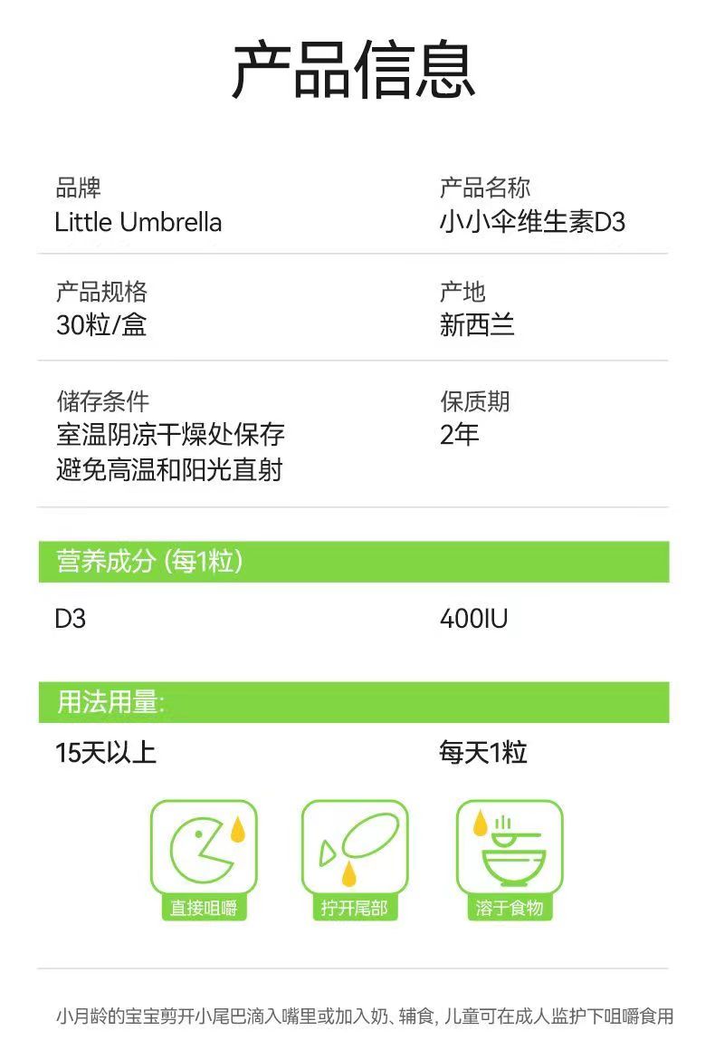 【保税仓】新西兰Little Umbrella小小伞维生素D3 30粒/盒(400IU/粒)