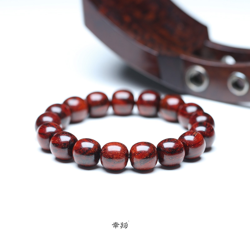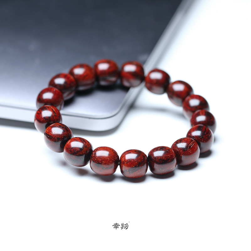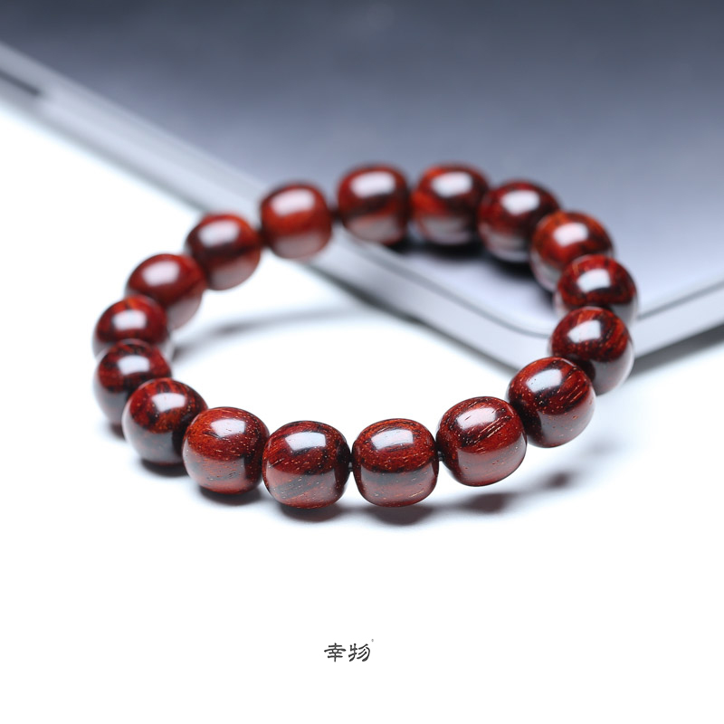 【青山特惠】琴料 12*13mm360度鱼鳞多金星半满火焰纹小叶紫檀手串 t12