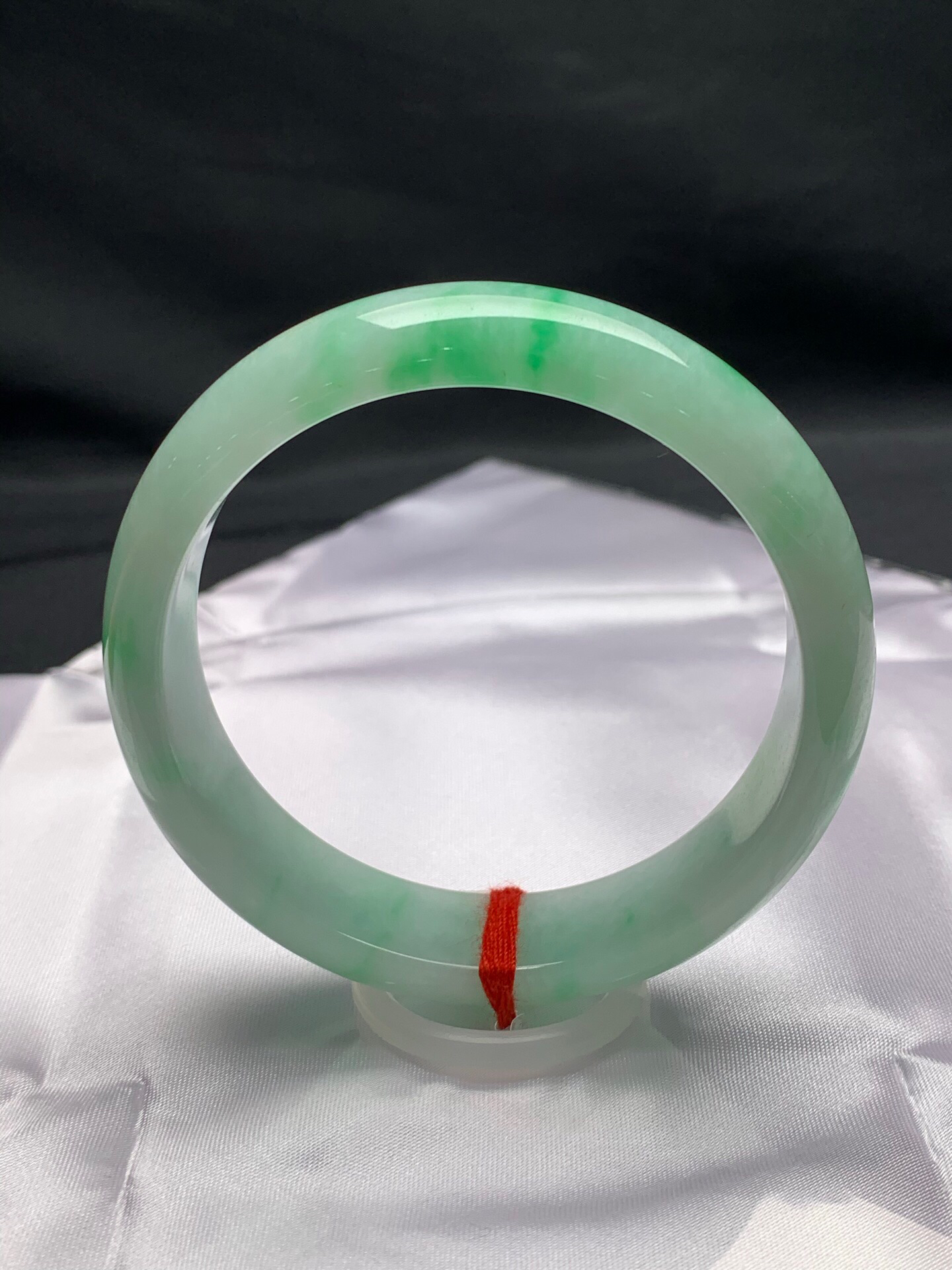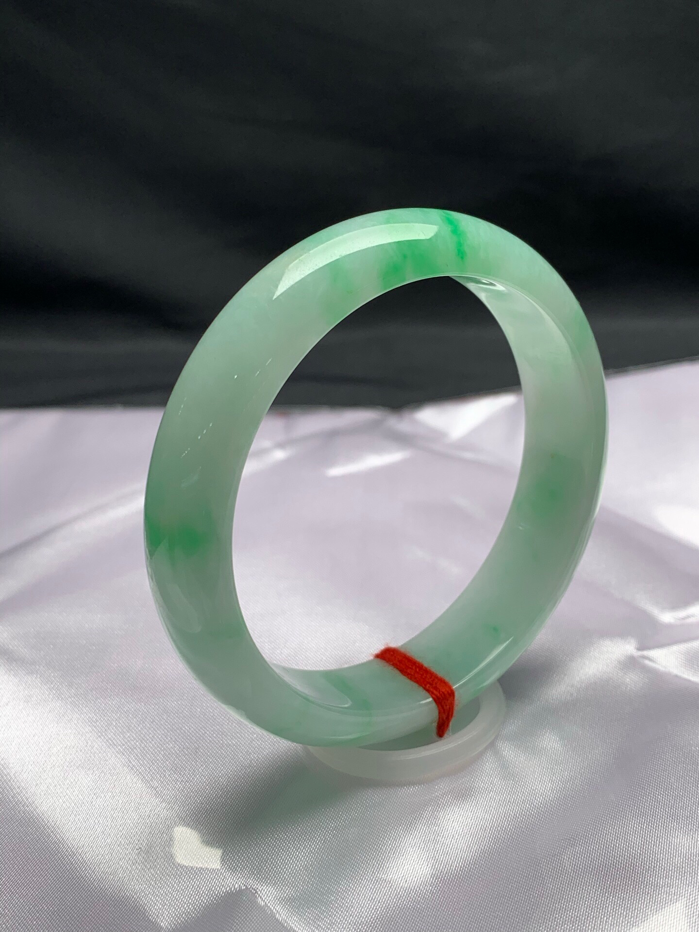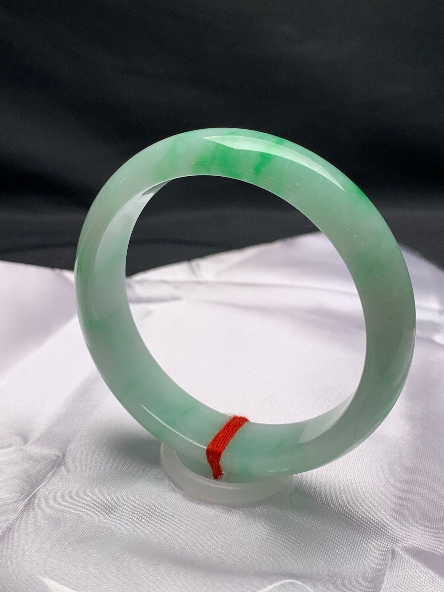 612848,57.8圈口,飘绿正圈平安镯,淡底色飘阳绿,色阳,底子细腻,尺寸:57.8-14.5-7.5,超值价💰28000 #优石客珠宝#香玉荟萃