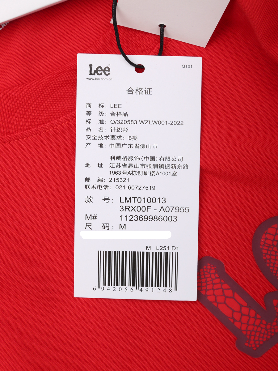 【云粉节】【新品】6楼LEE男式短袖T恤吊牌价359元