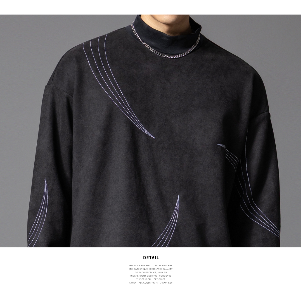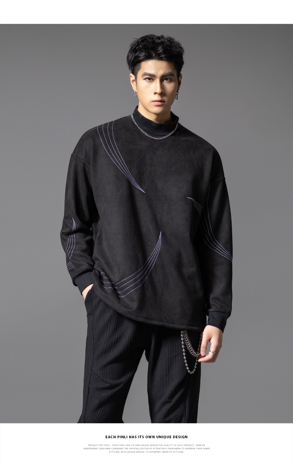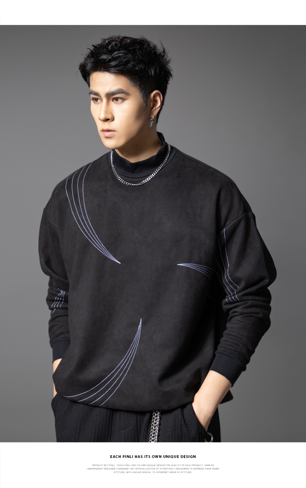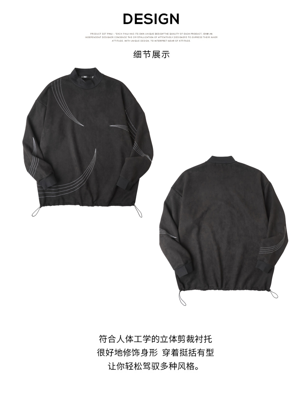 PINLI品立2025秋季新款半高领套头卫衣男嵌线设计宽松休闲上衣潮B253109012