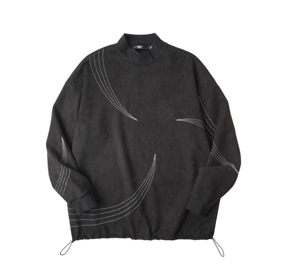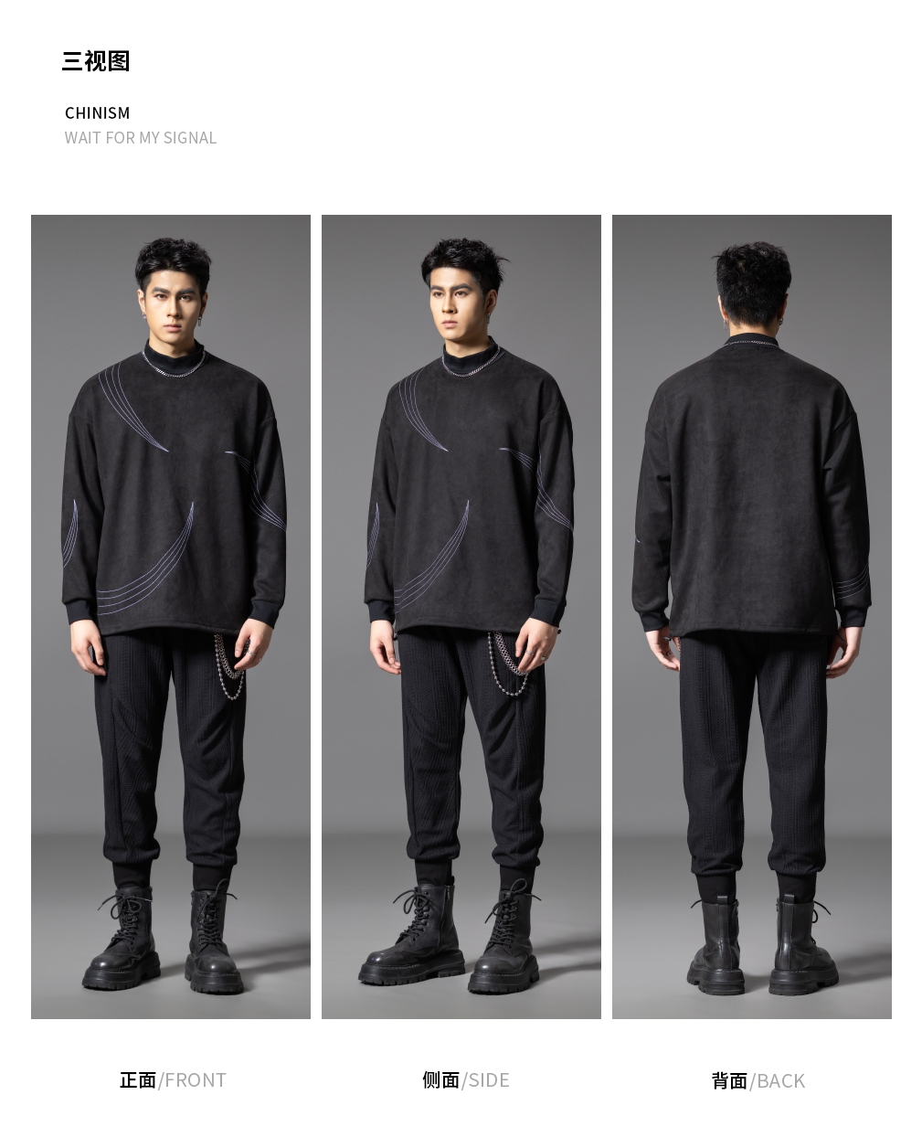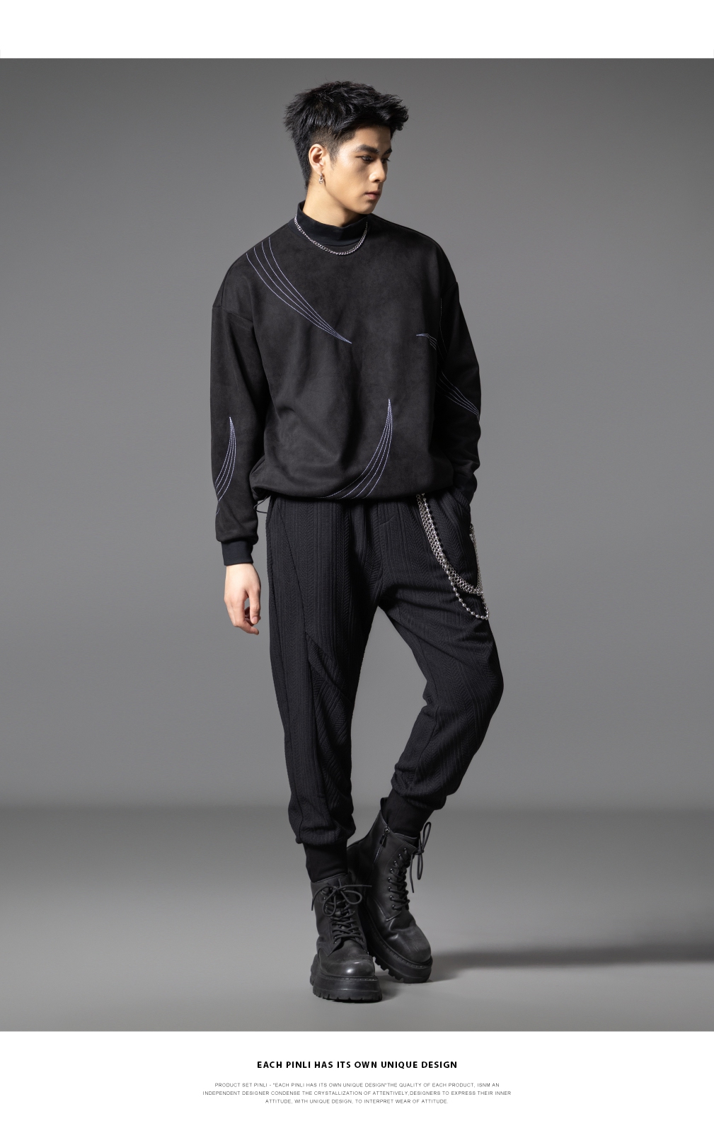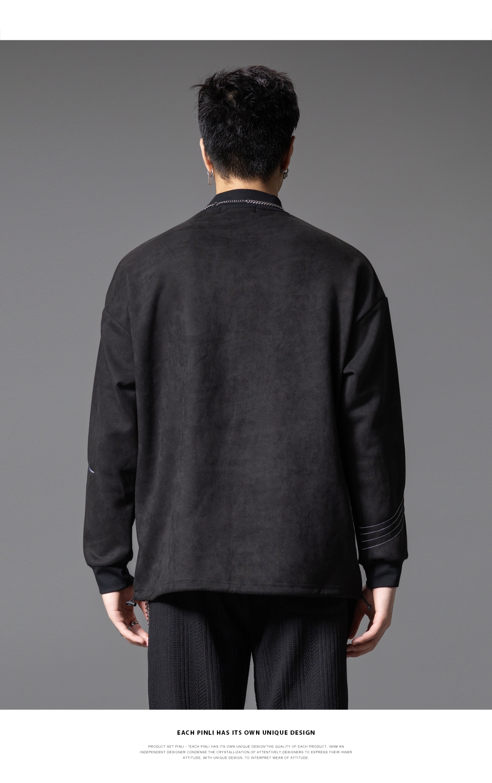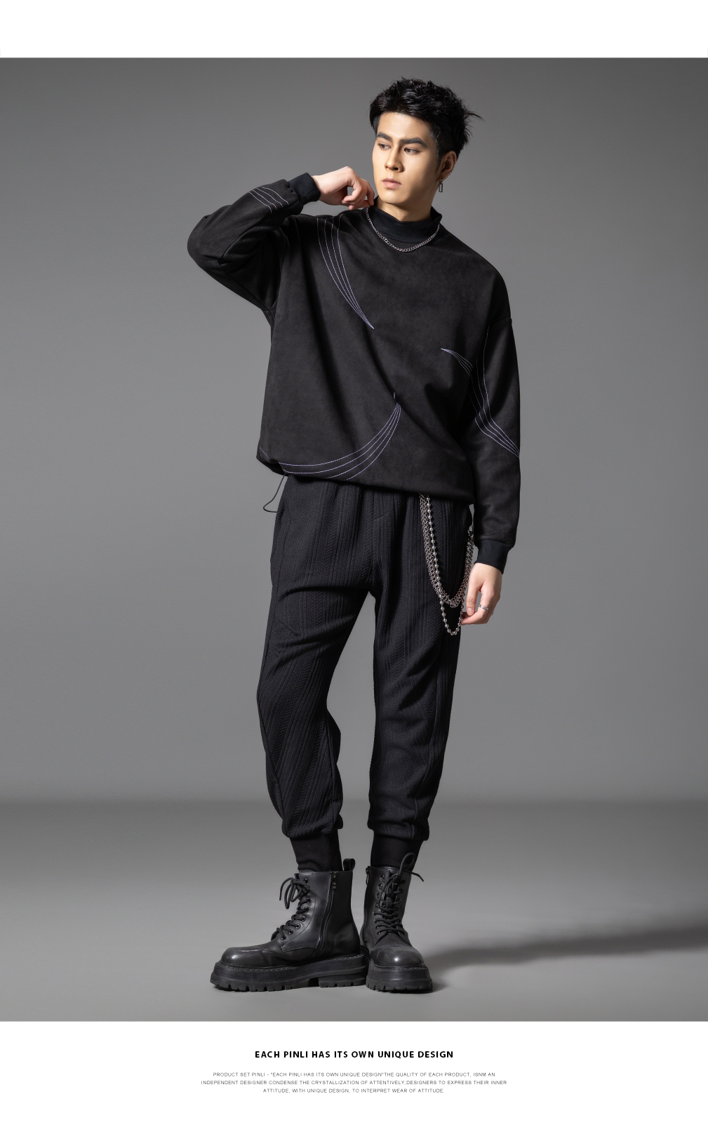 PINLI品立2025秋季新款半高领套头卫衣男嵌线设计宽松休闲上衣潮B253109012
