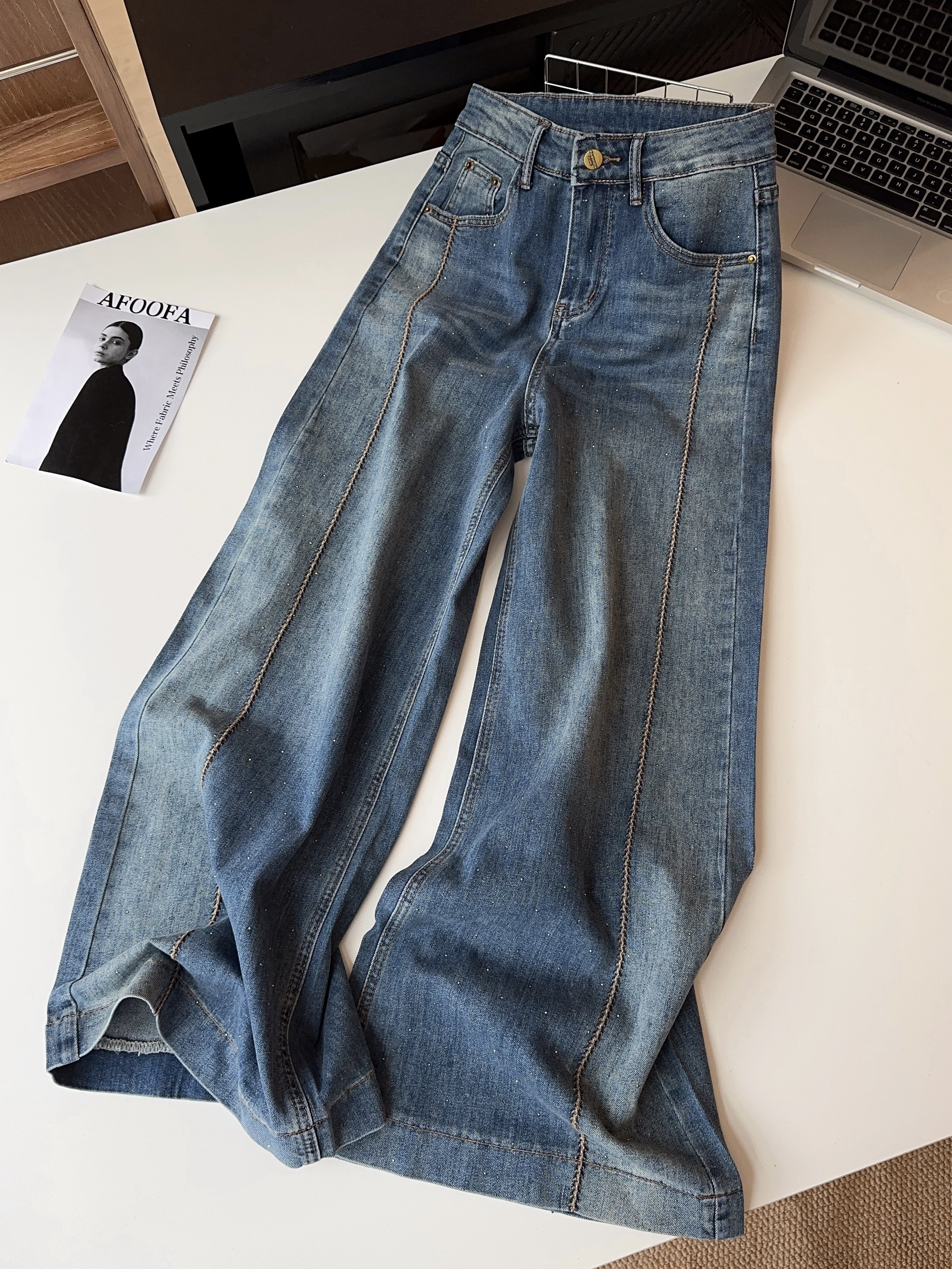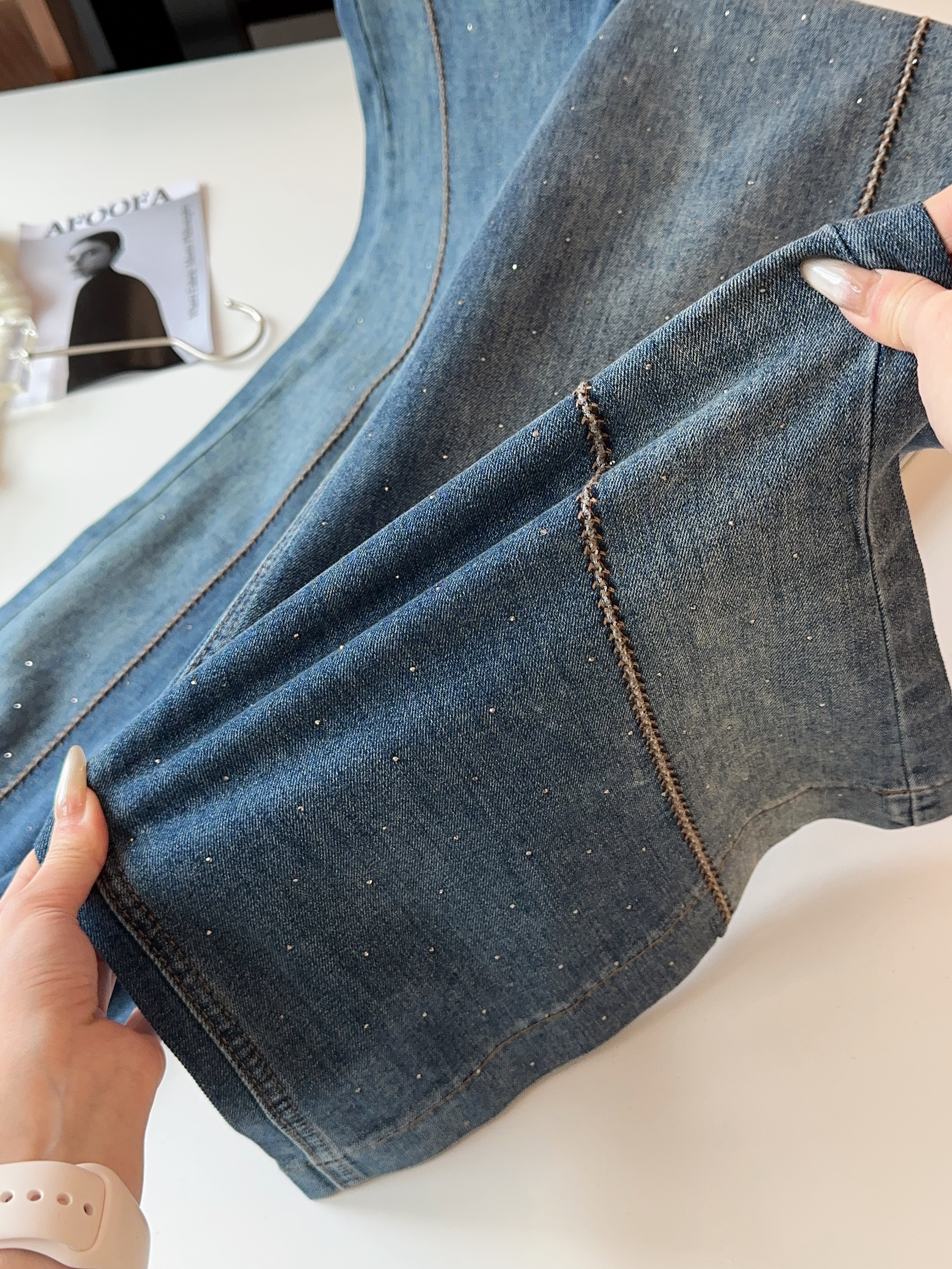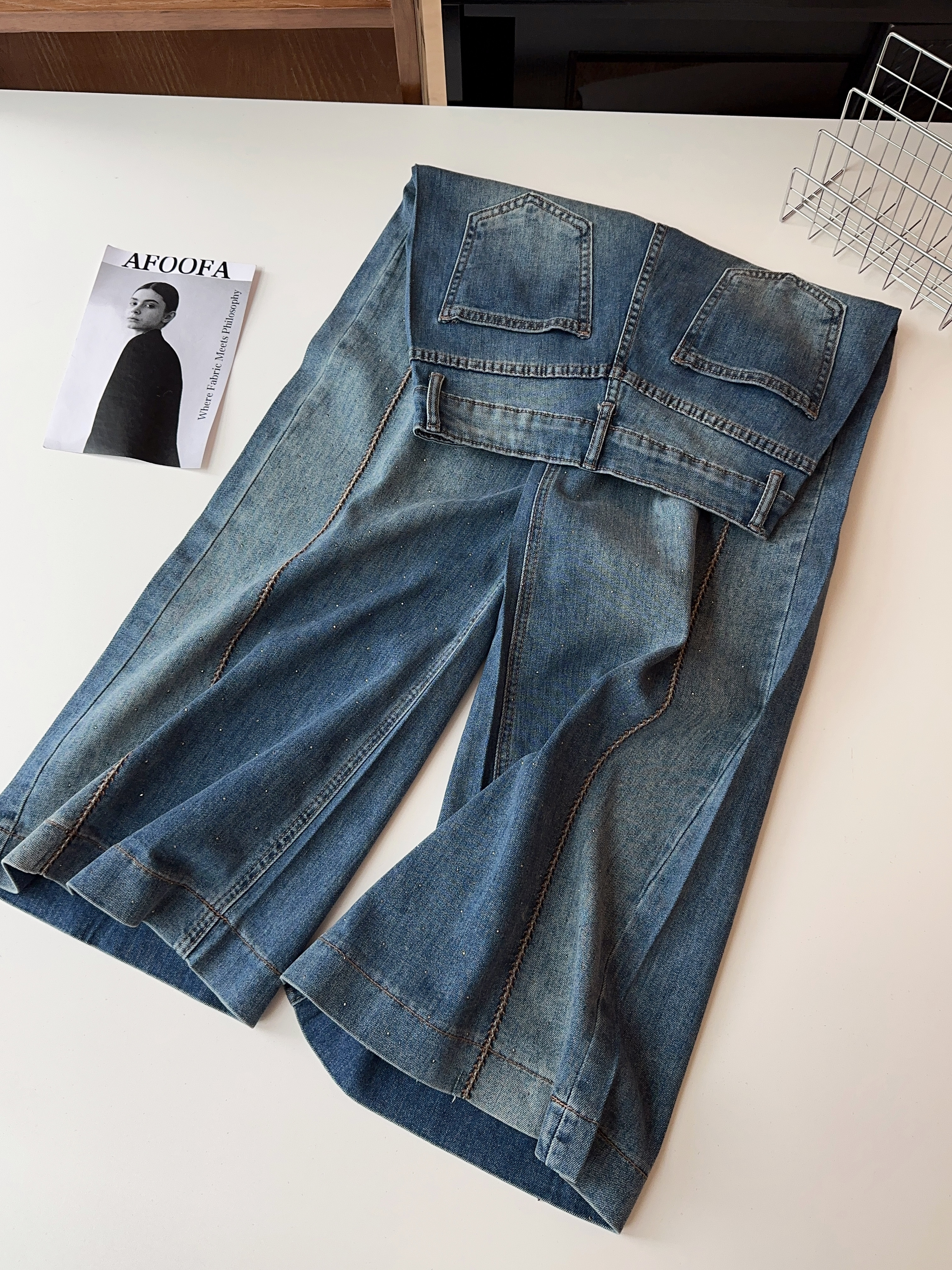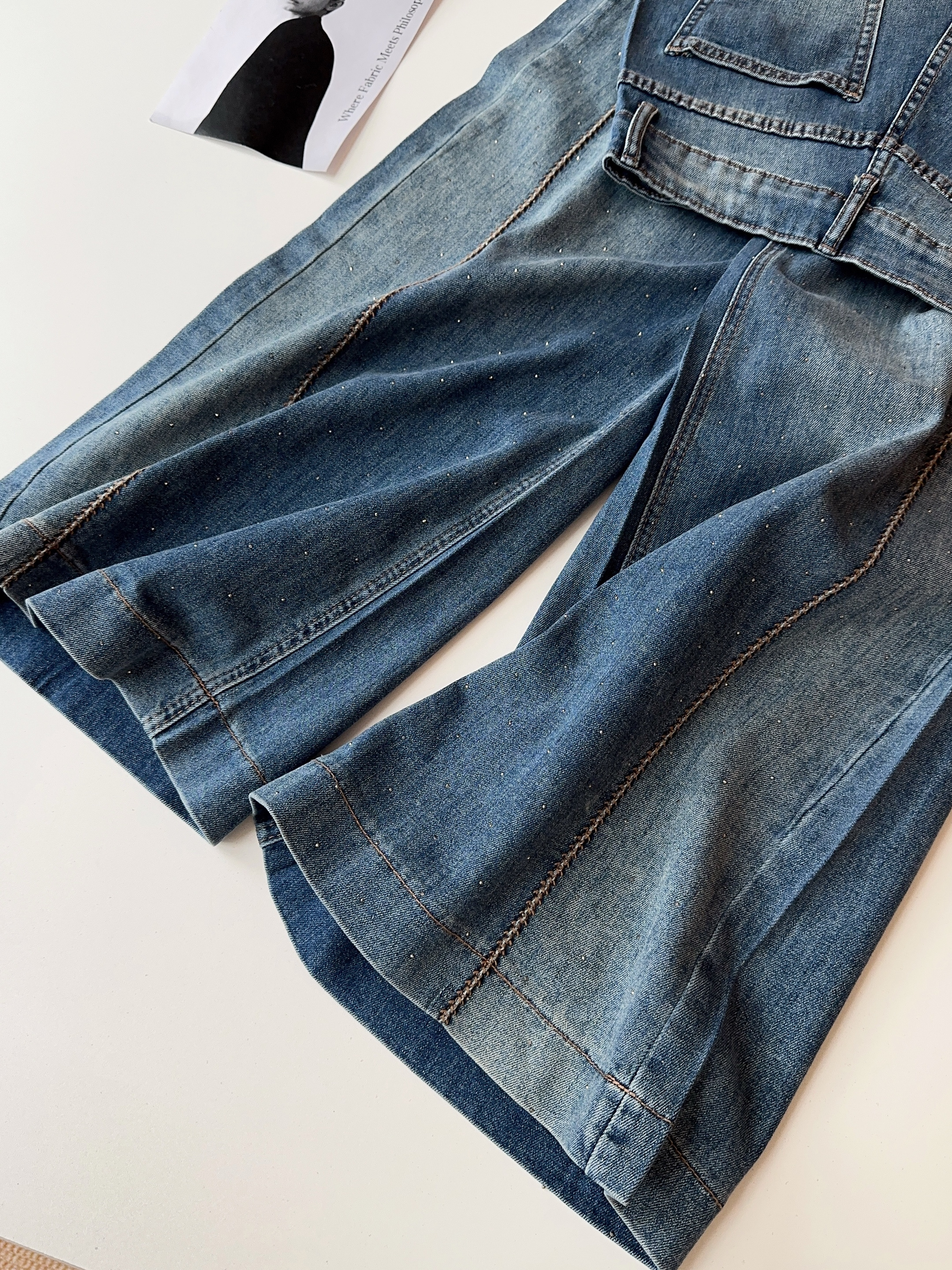 韩国进口烫钻,无敌爆闪,超吸睛,阔腿版型,侧缝立体三角剪裁,六线流畅,显瘦又显高,出门回头率爆表!
