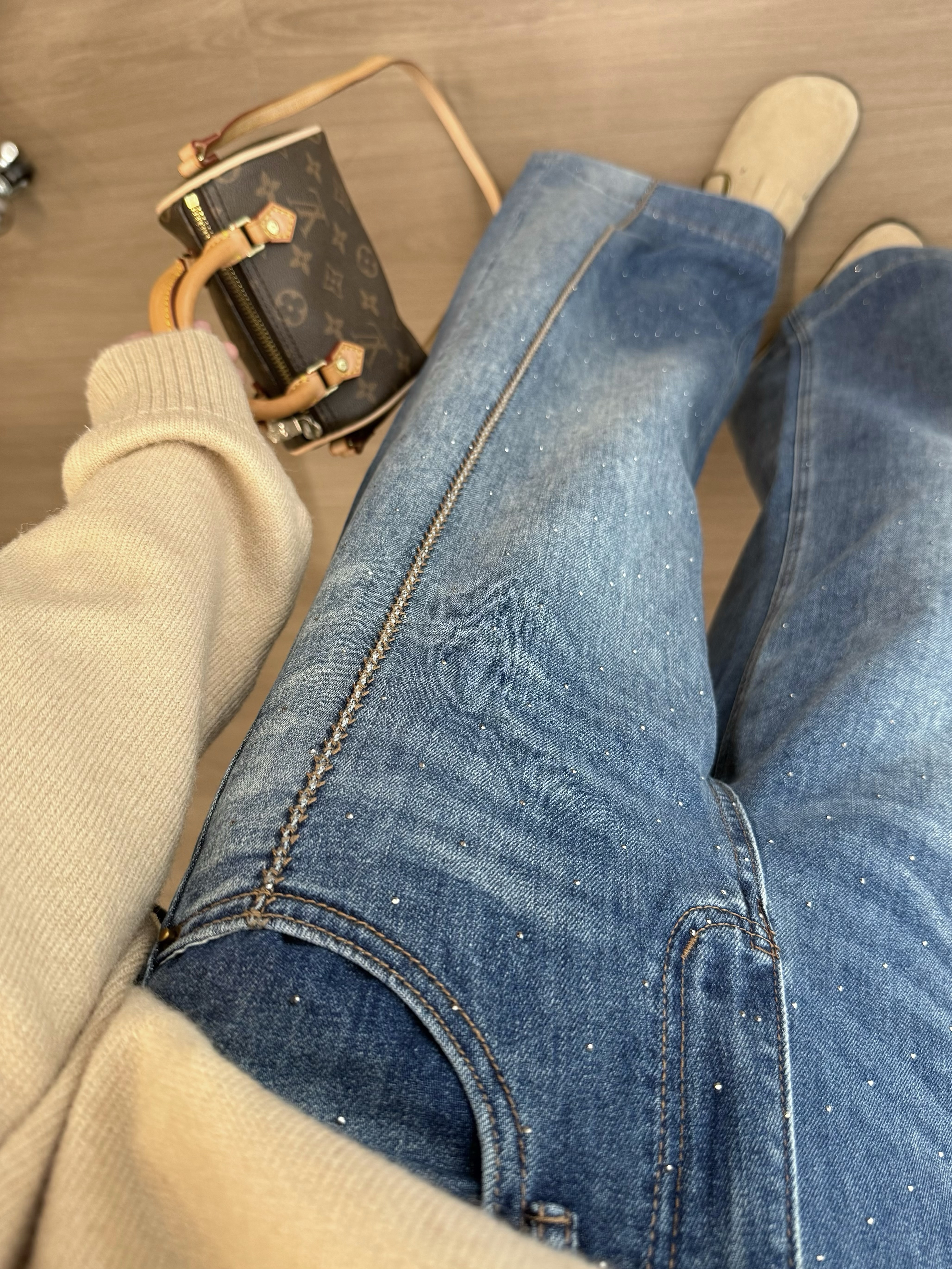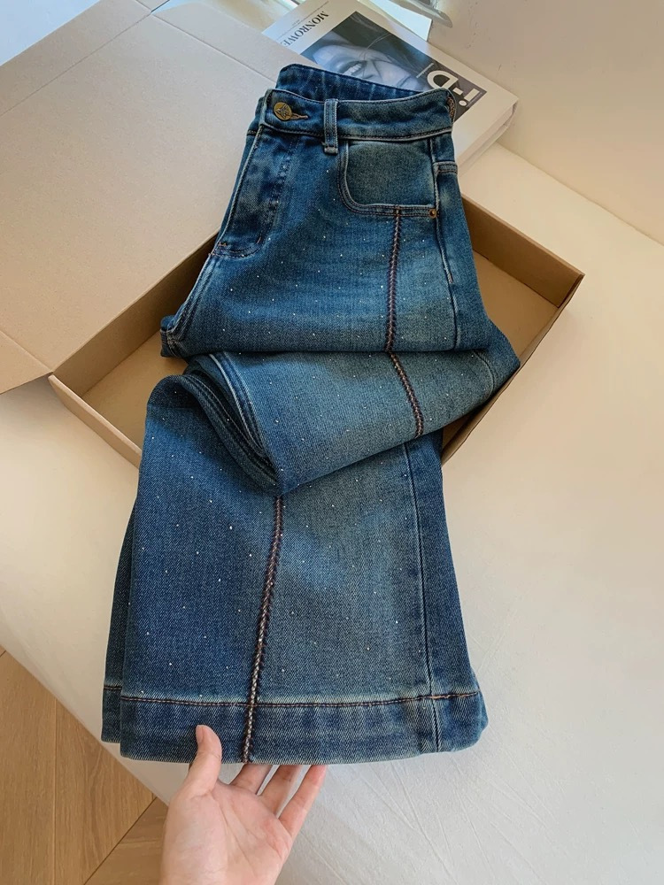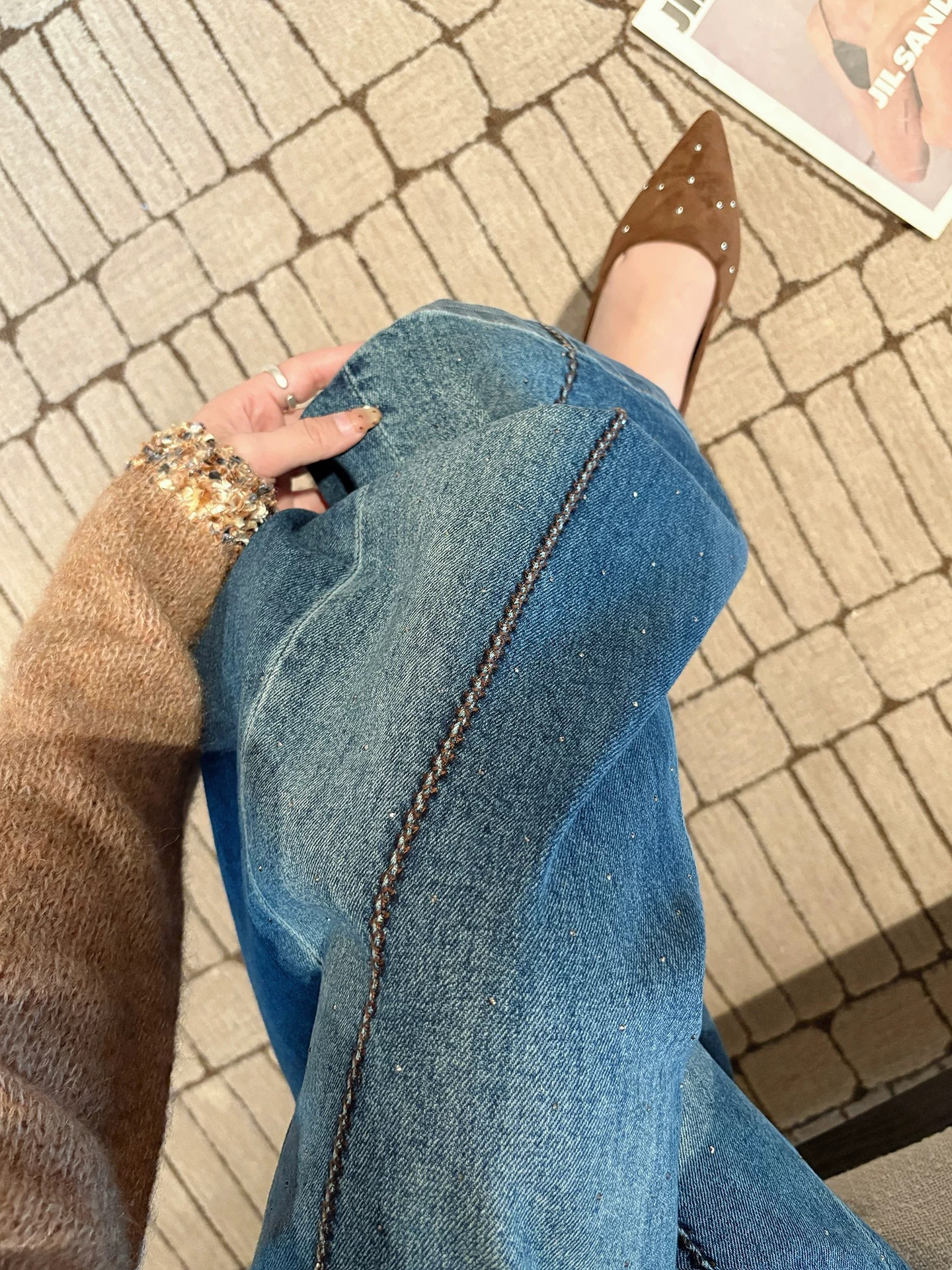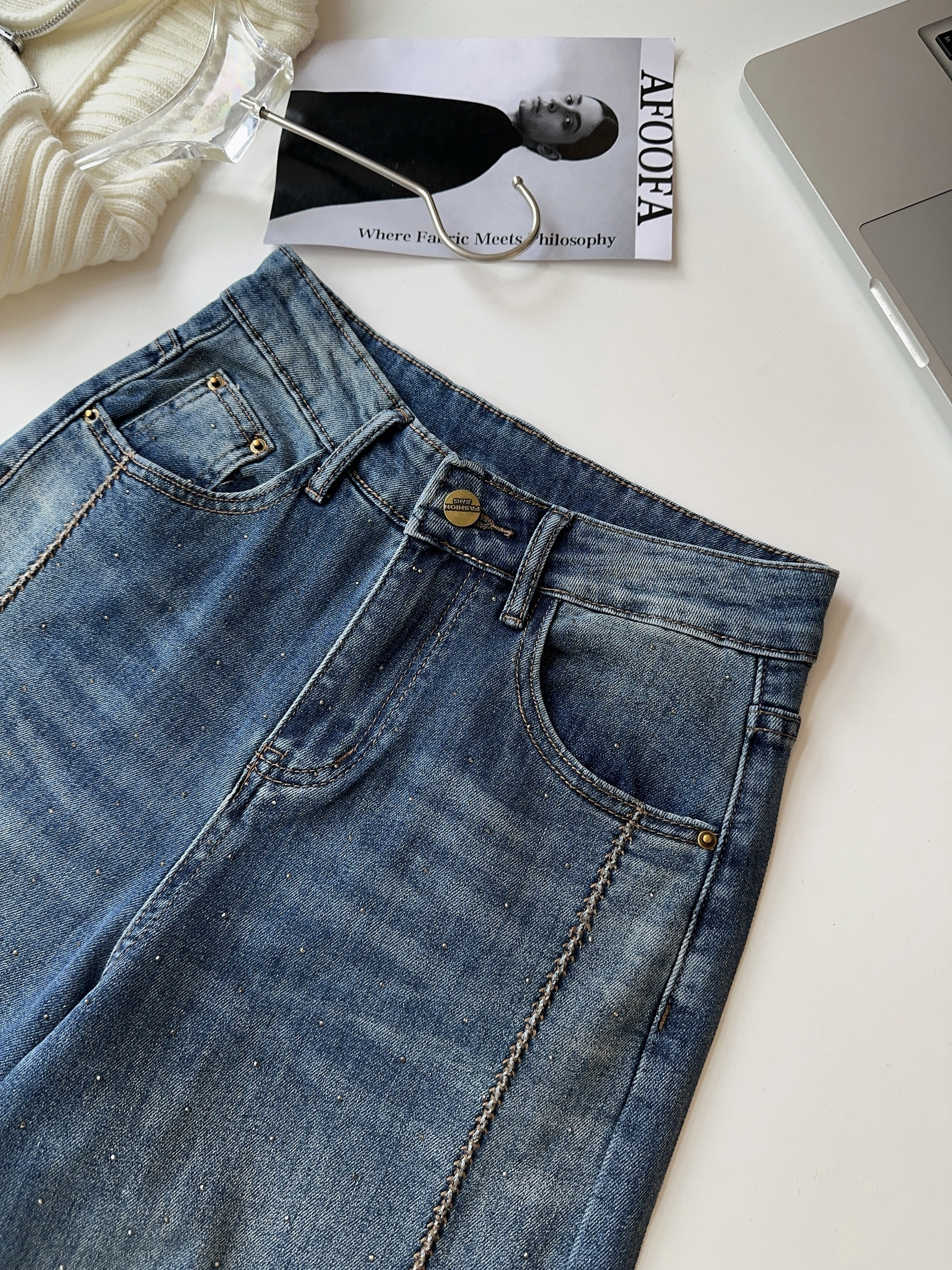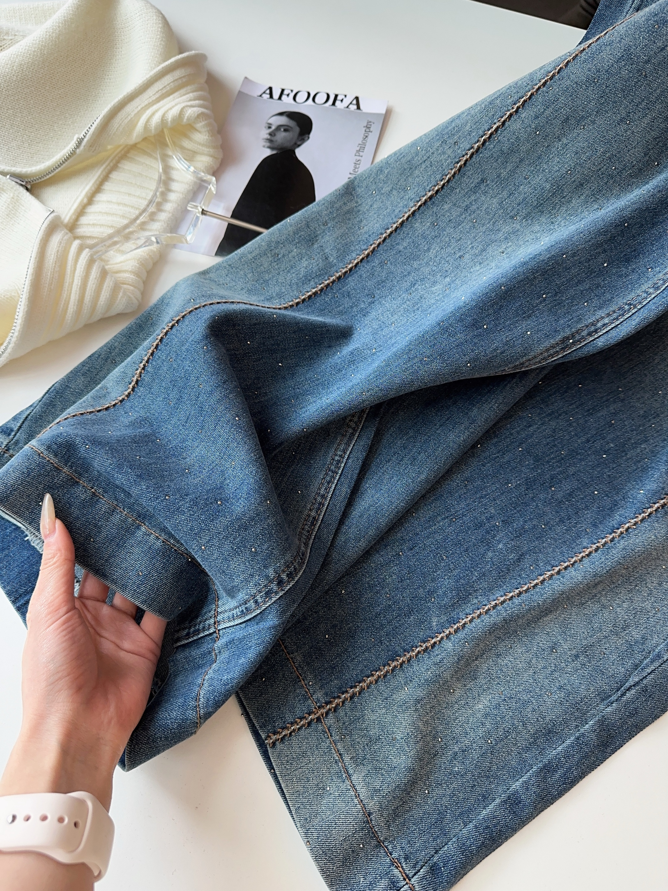 韩国进口烫钻,无敌爆闪,超吸睛,阔腿版型,侧缝立体三角剪裁,六线流畅,显瘦又显高,出门回头率爆表!