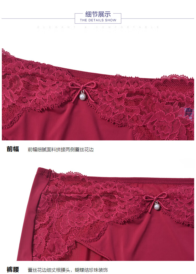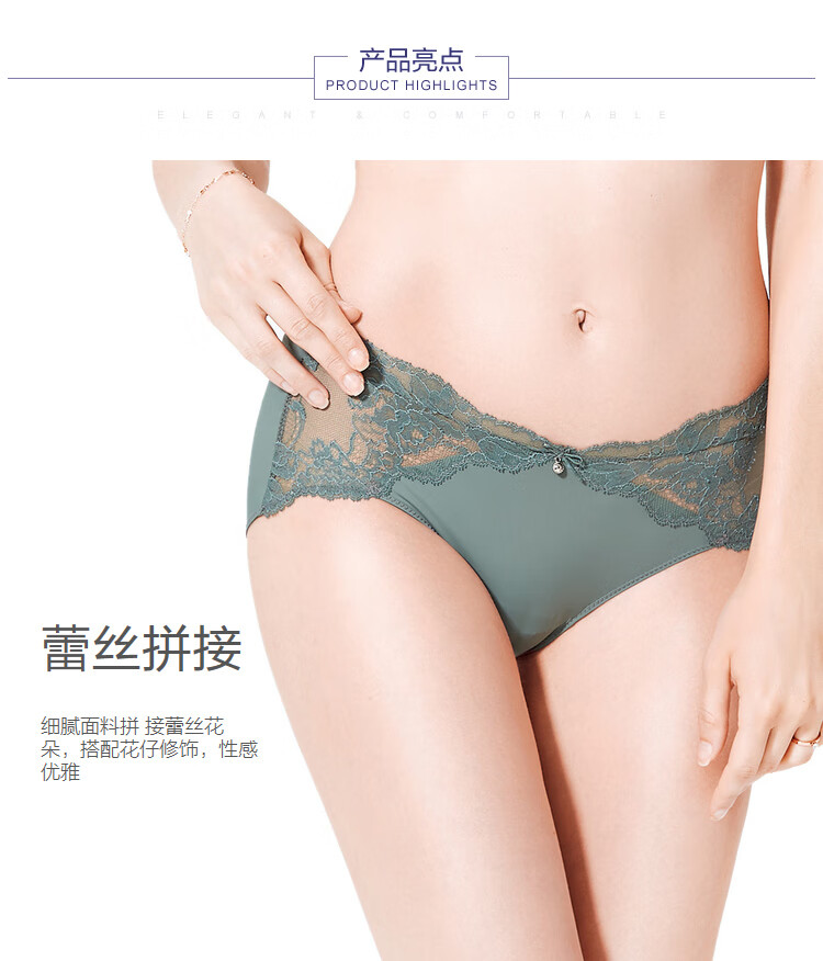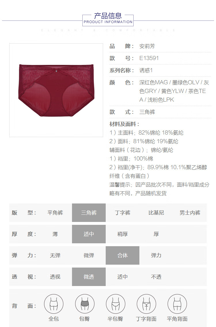 【3F】安莉芳【列维斯蕾丝】女士棉质底裆内裤舒适性感中腰三角裤E13591