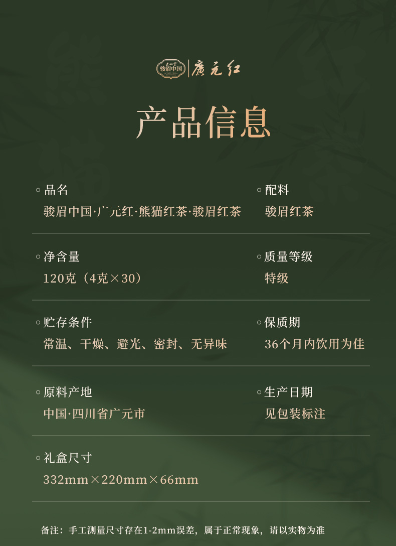 正山堂 广元红熊猫红茶礼盒装 四川特级正宗红茶茶叶送礼长辈120g