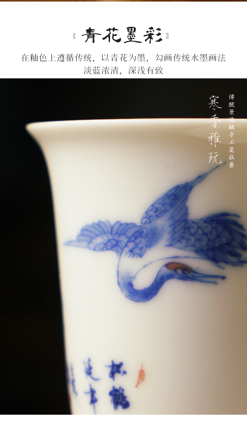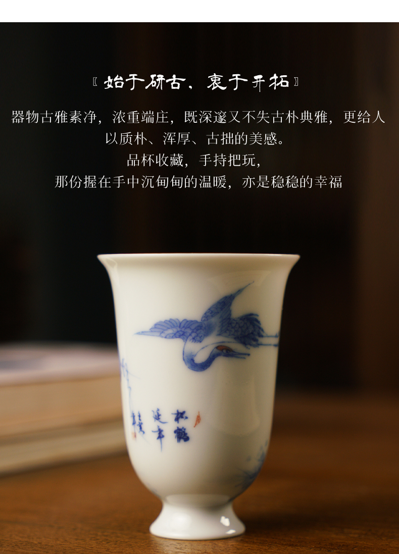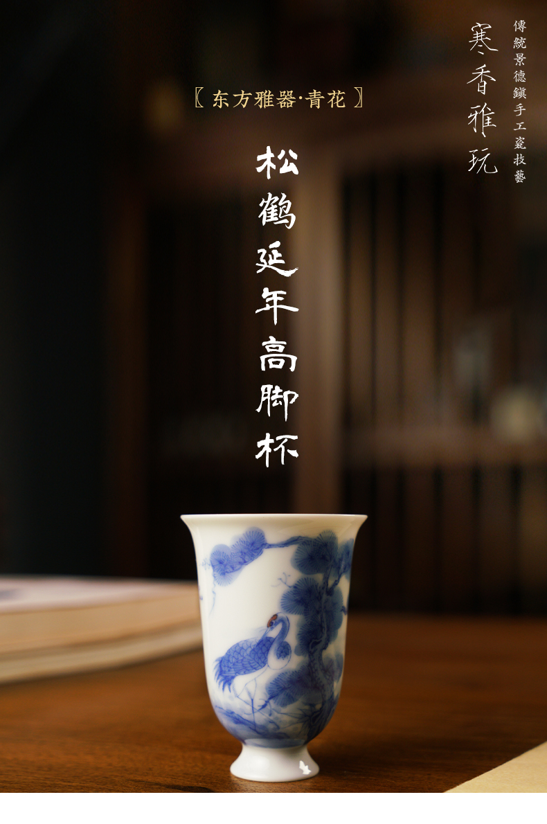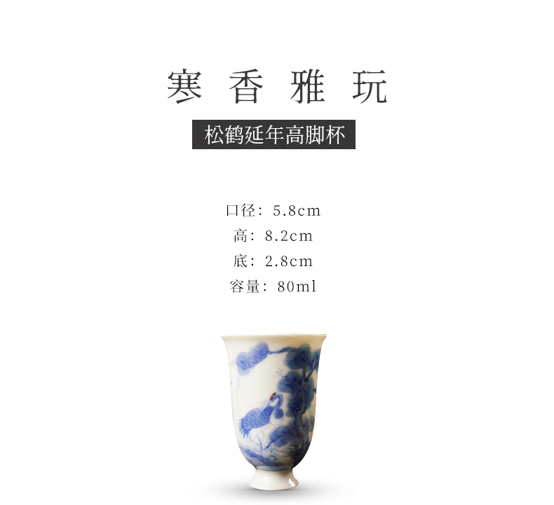 寒香雅玩青花松鹤延年高脚杯(缺货)