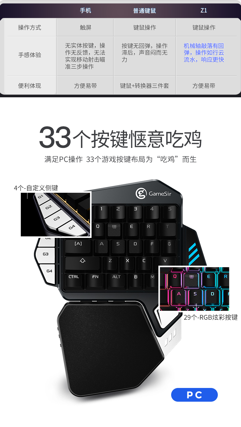 【全新】小鸡Z1机械单手键盘青轴红轴鼠标套装lol英雄联盟绝地求生电竞游戏吃鸡左手笔记本电脑外接小键盘小型便携