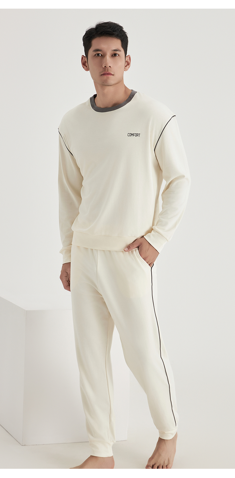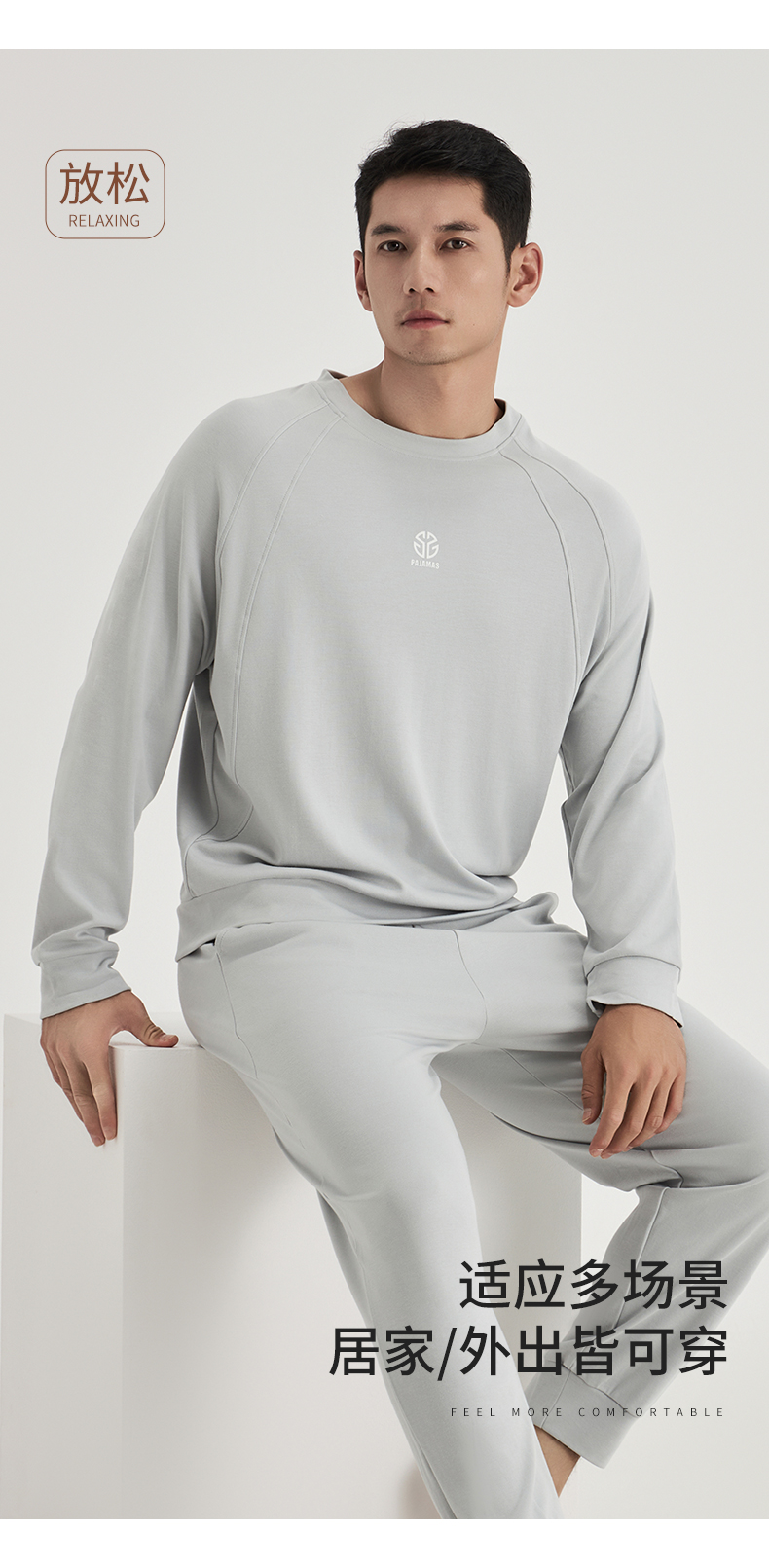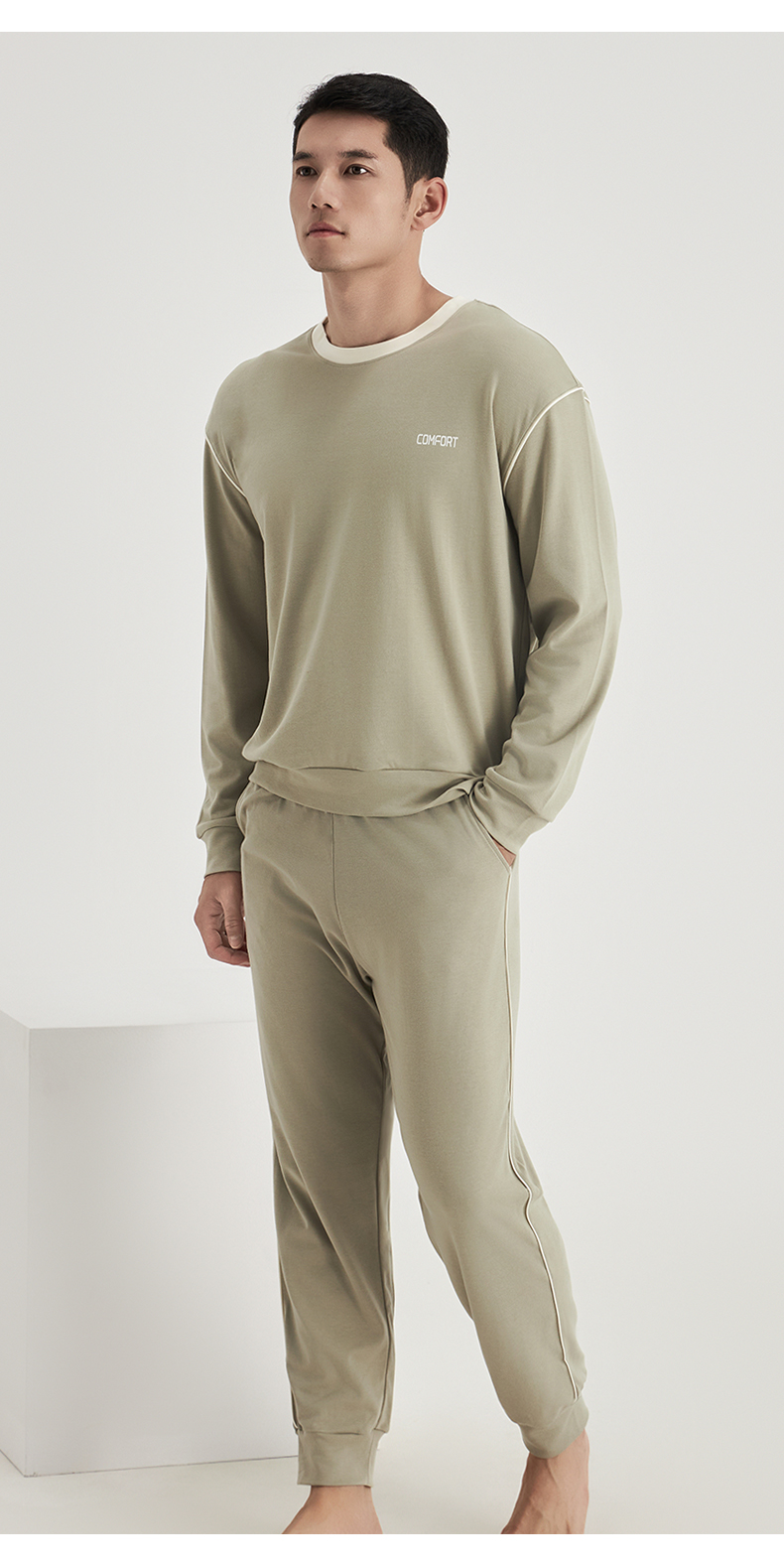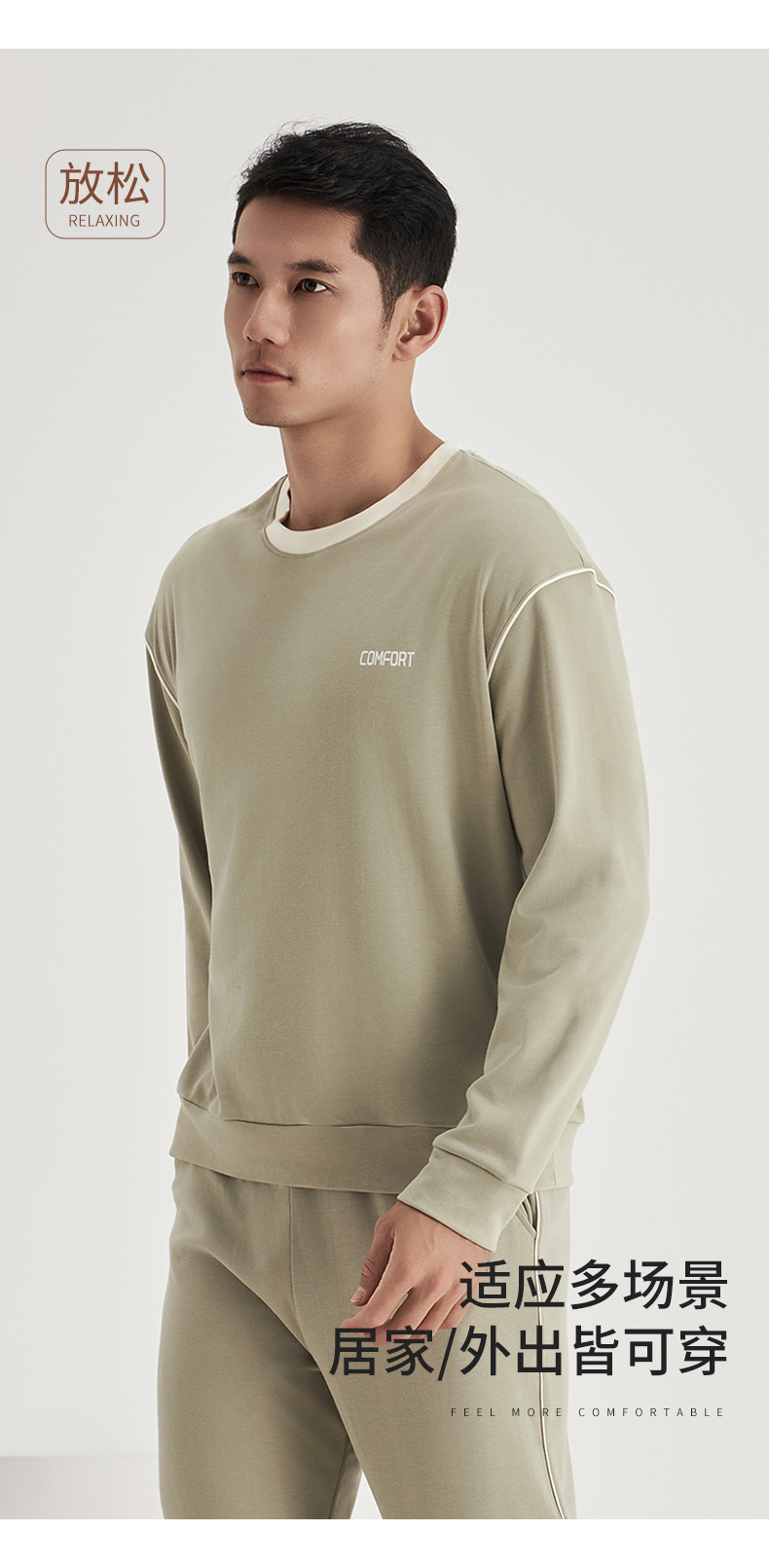 weyo新款秋季舒适亲肤男士舒感棉系列撞色领口长袖印花家居服套装52707、52709
