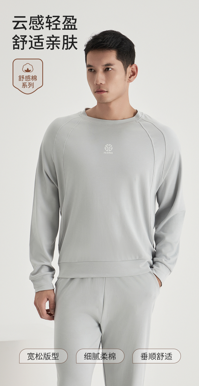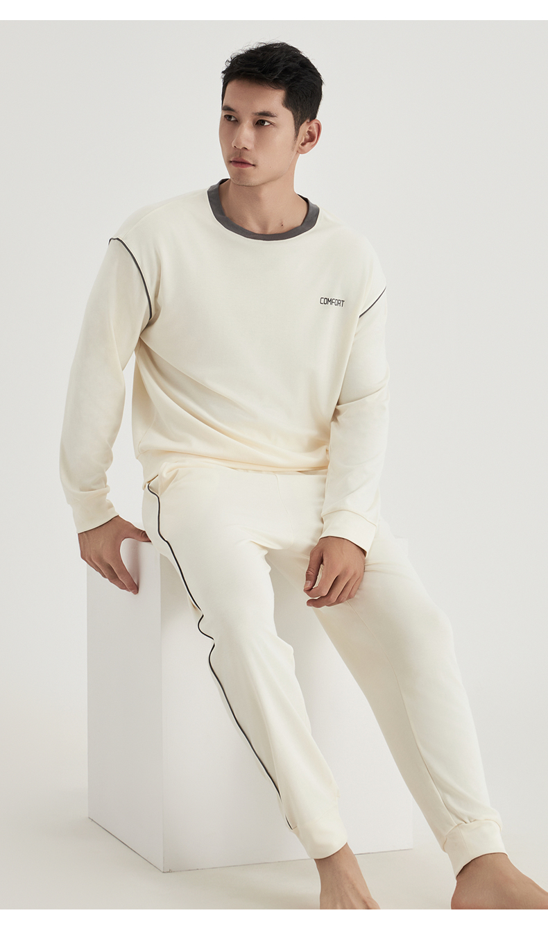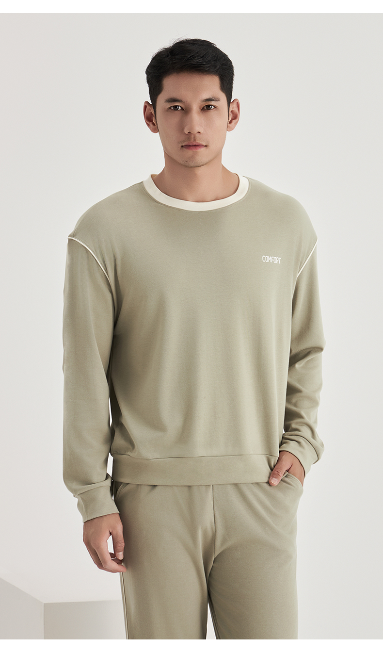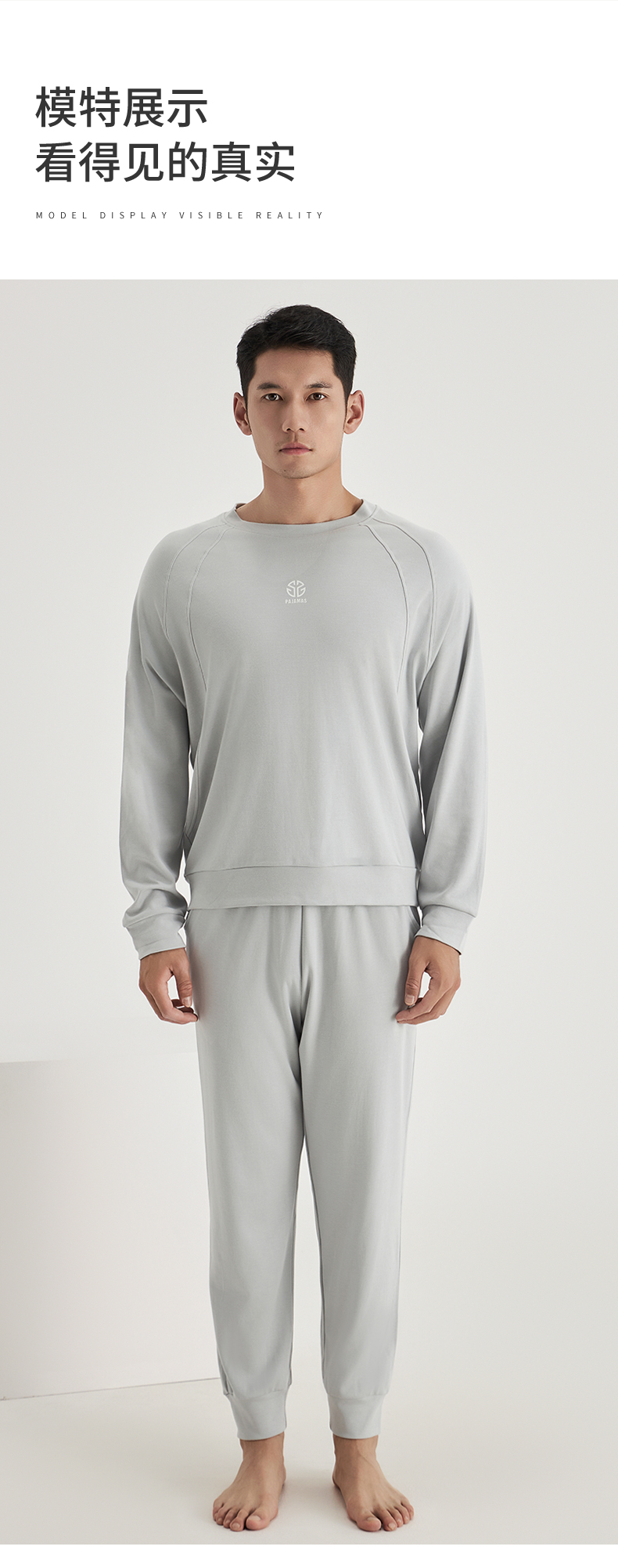 weyo新款秋季舒适亲肤男士舒感棉系列撞色领口长袖印花家居服套装52707、52709
