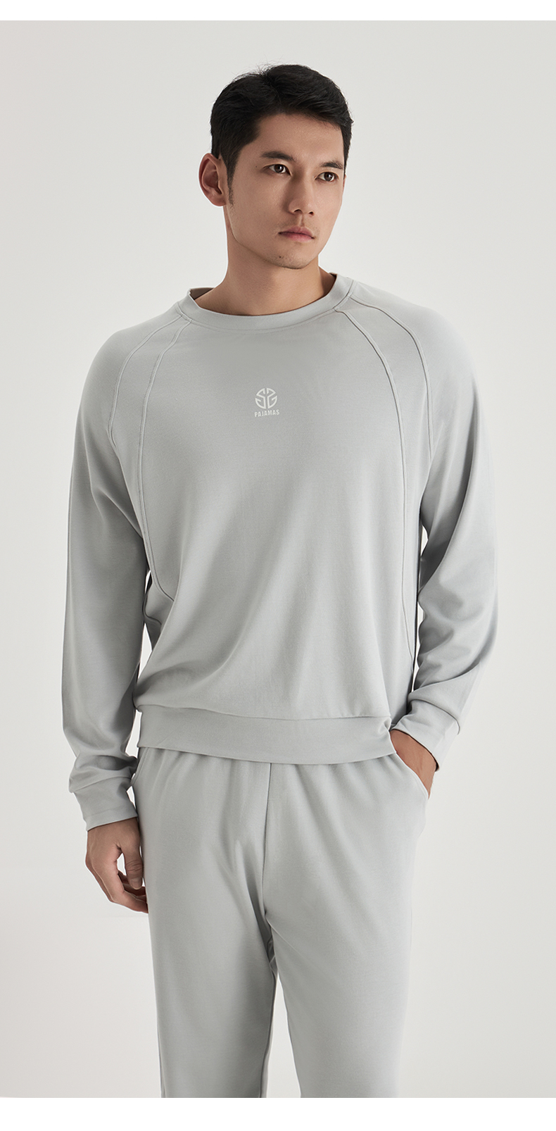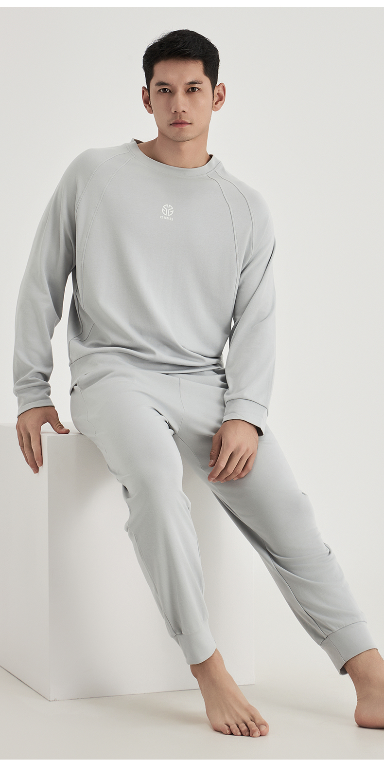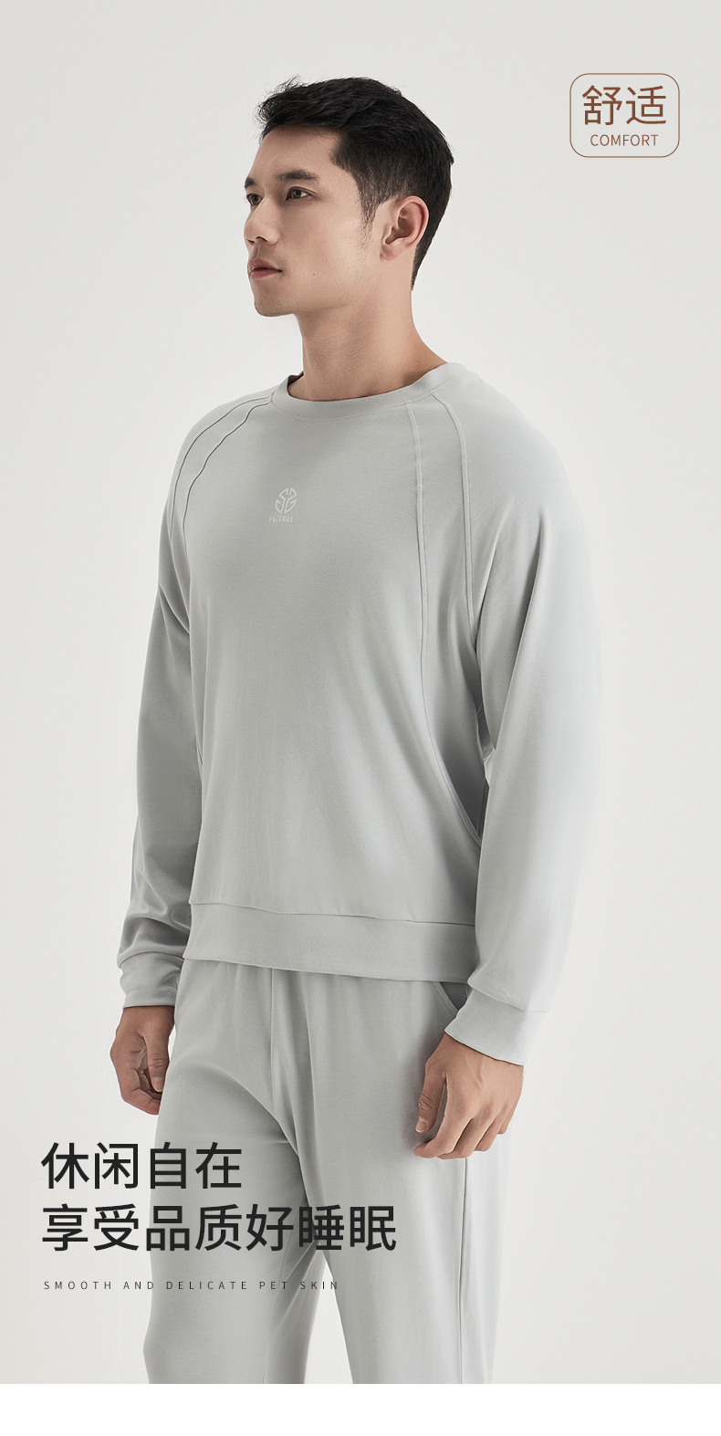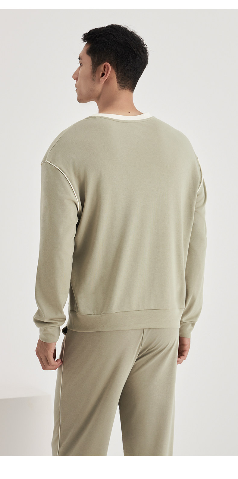 weyo新款秋季舒适亲肤男士舒感棉系列撞色领口长袖印花家居服套装52707、52709