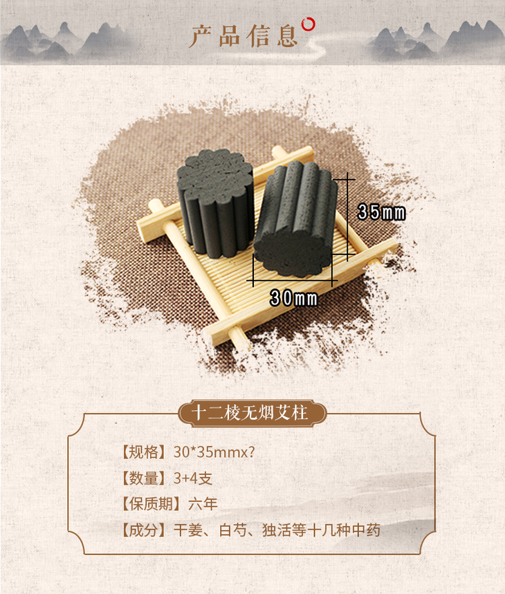 蕲艾 加粗十二棱无烟艾柱 好燃不易碎 30粒/袋
