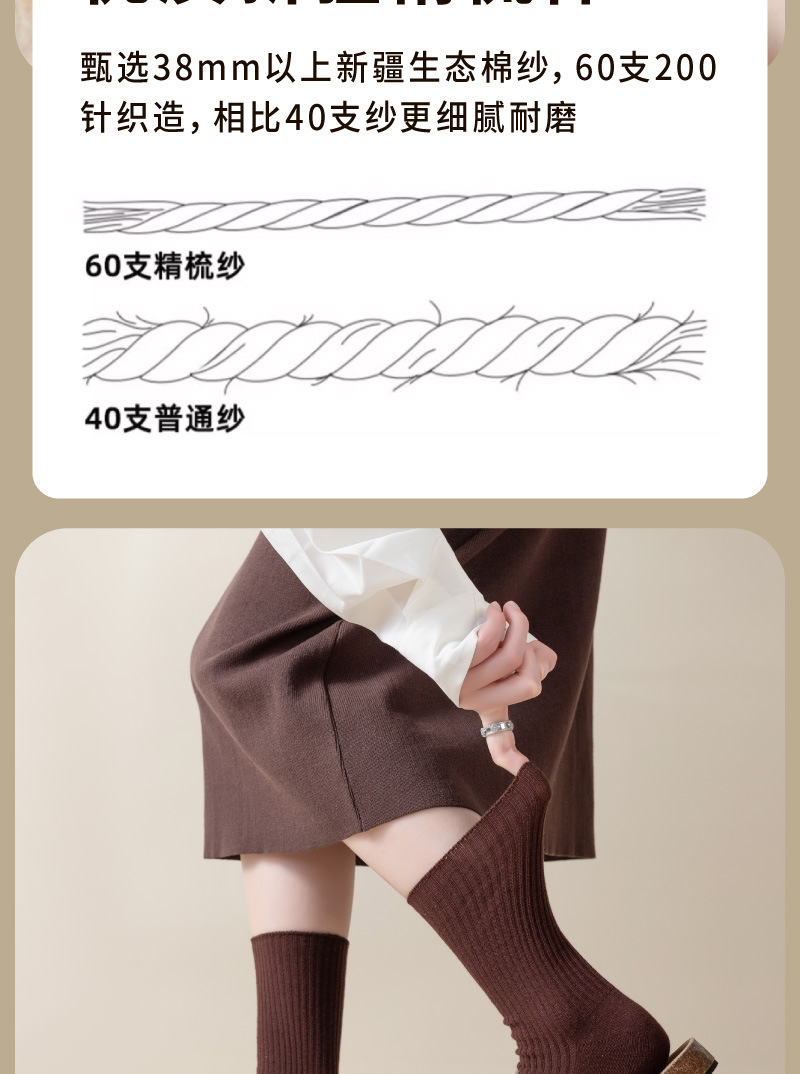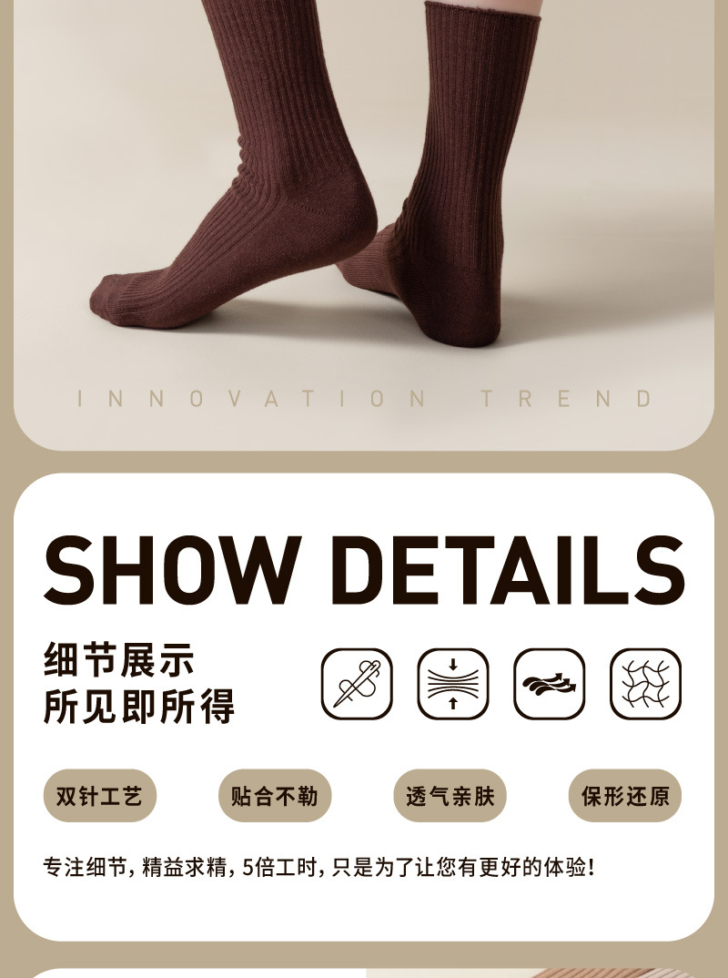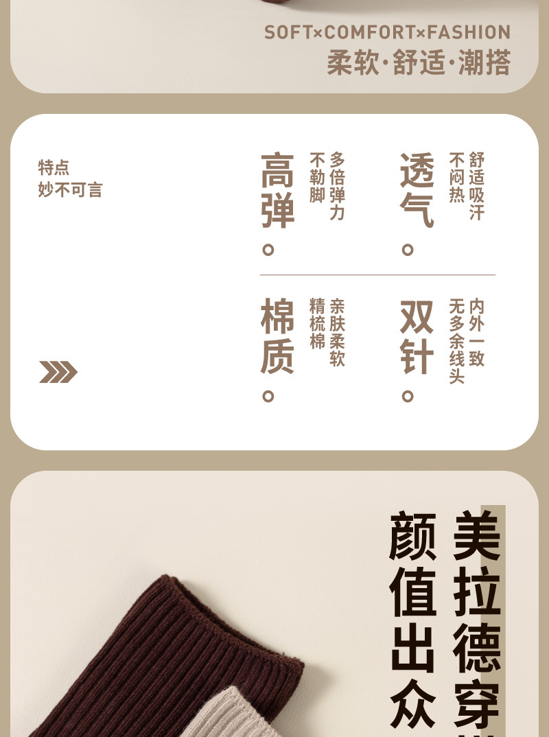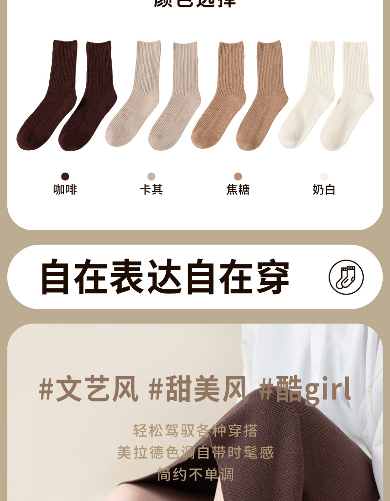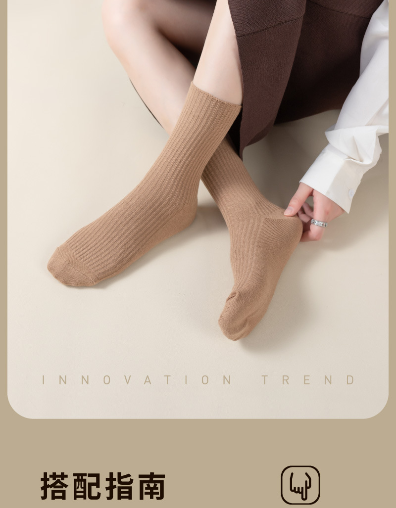 【5双装❗️双针无骨袜】2025年春季新款时尚百搭简约中筒袜女士诸暨袜子