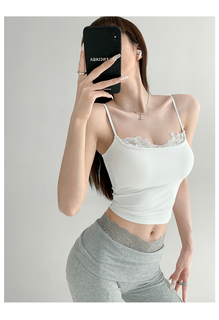 【甜辣芭蕾风❗蕾丝拼接背心】自带胸垫,亲肤透气面料,蕾丝纯欲夏季辣妹外穿短款打底上衣吊带QQ