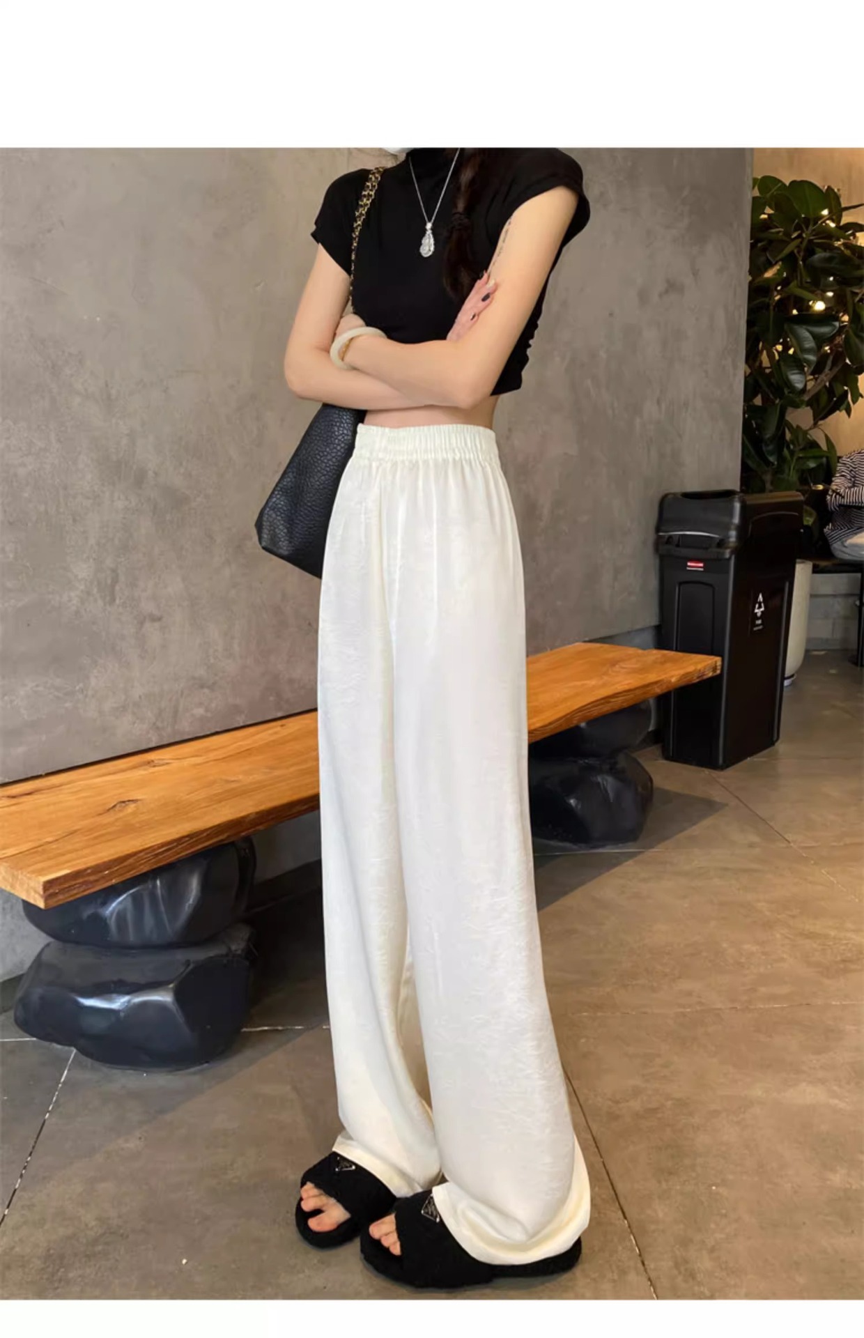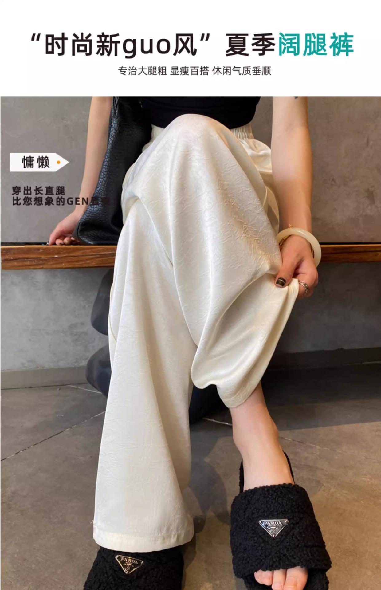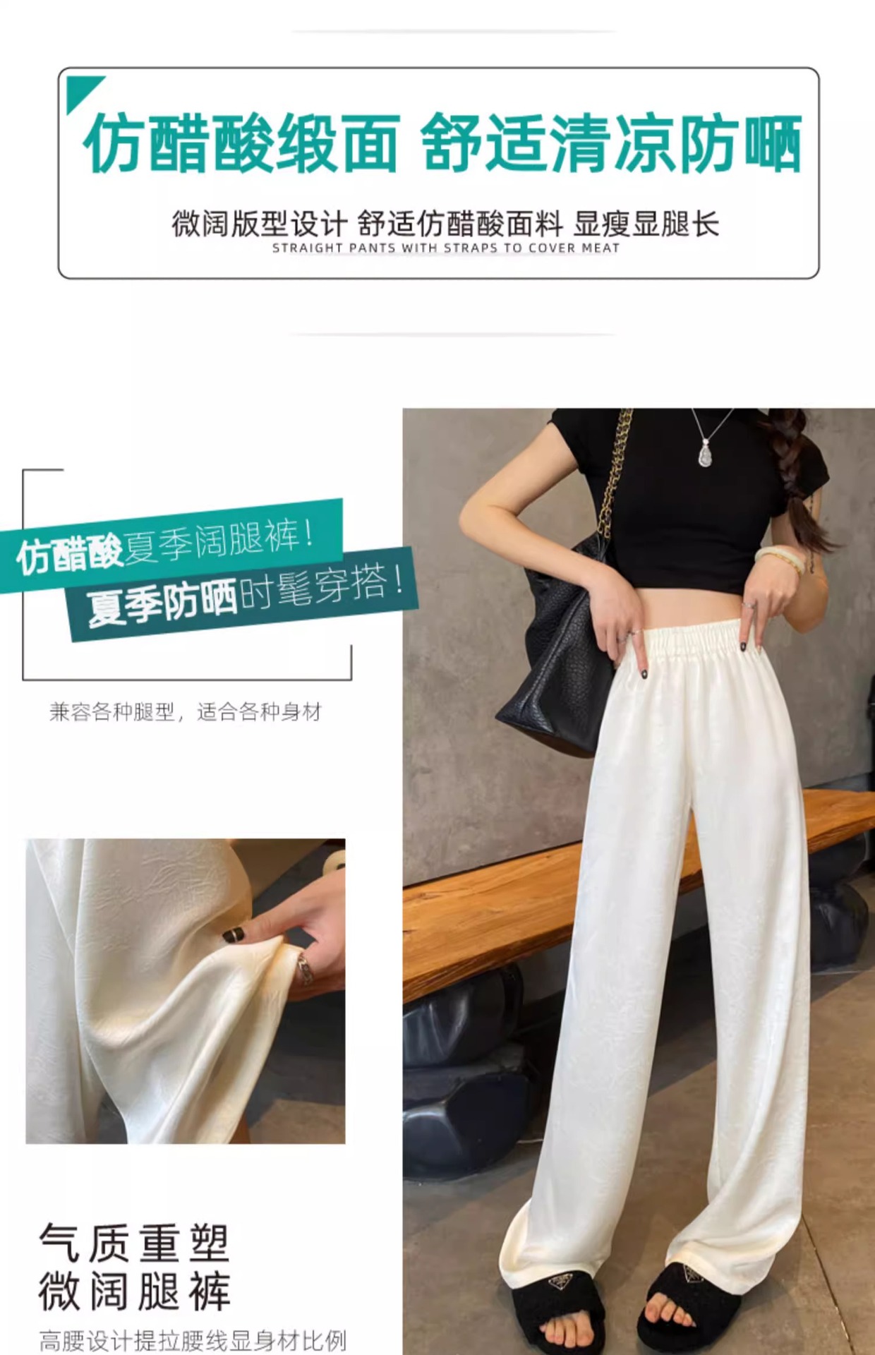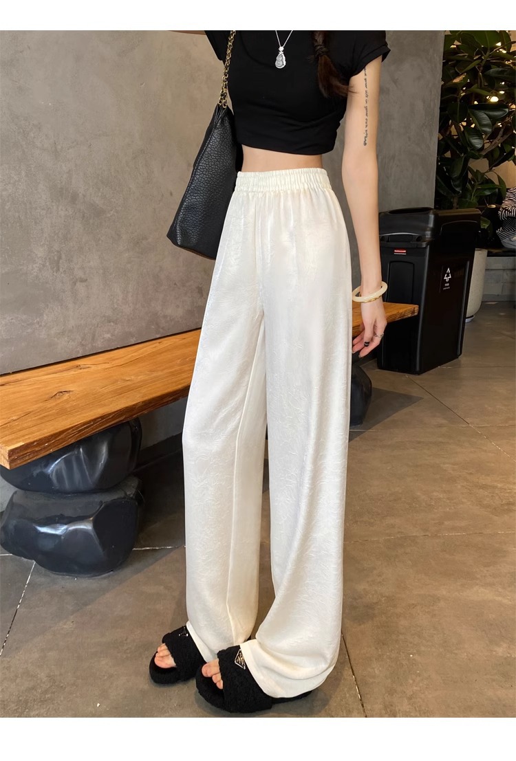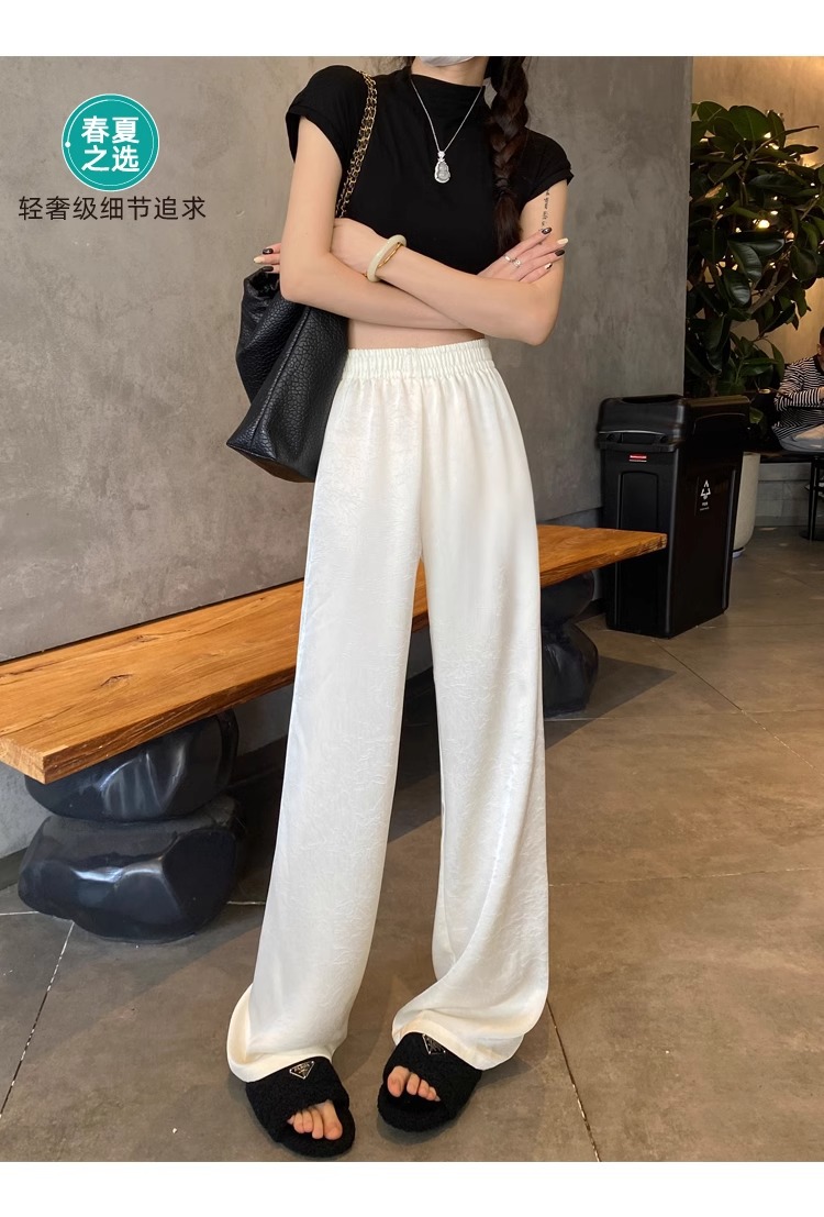 【热卖❗️59.9/件🔥缎面阔腿裤】松紧腰头不勒肚,宽松版型藏肉藏胯,高腰剪裁拉长比例,显高显瘦两不误,搭配短上衣/针织衫都显贵气,高腰垂感冰丝休闲直筒大码女裤胖mm200斤L