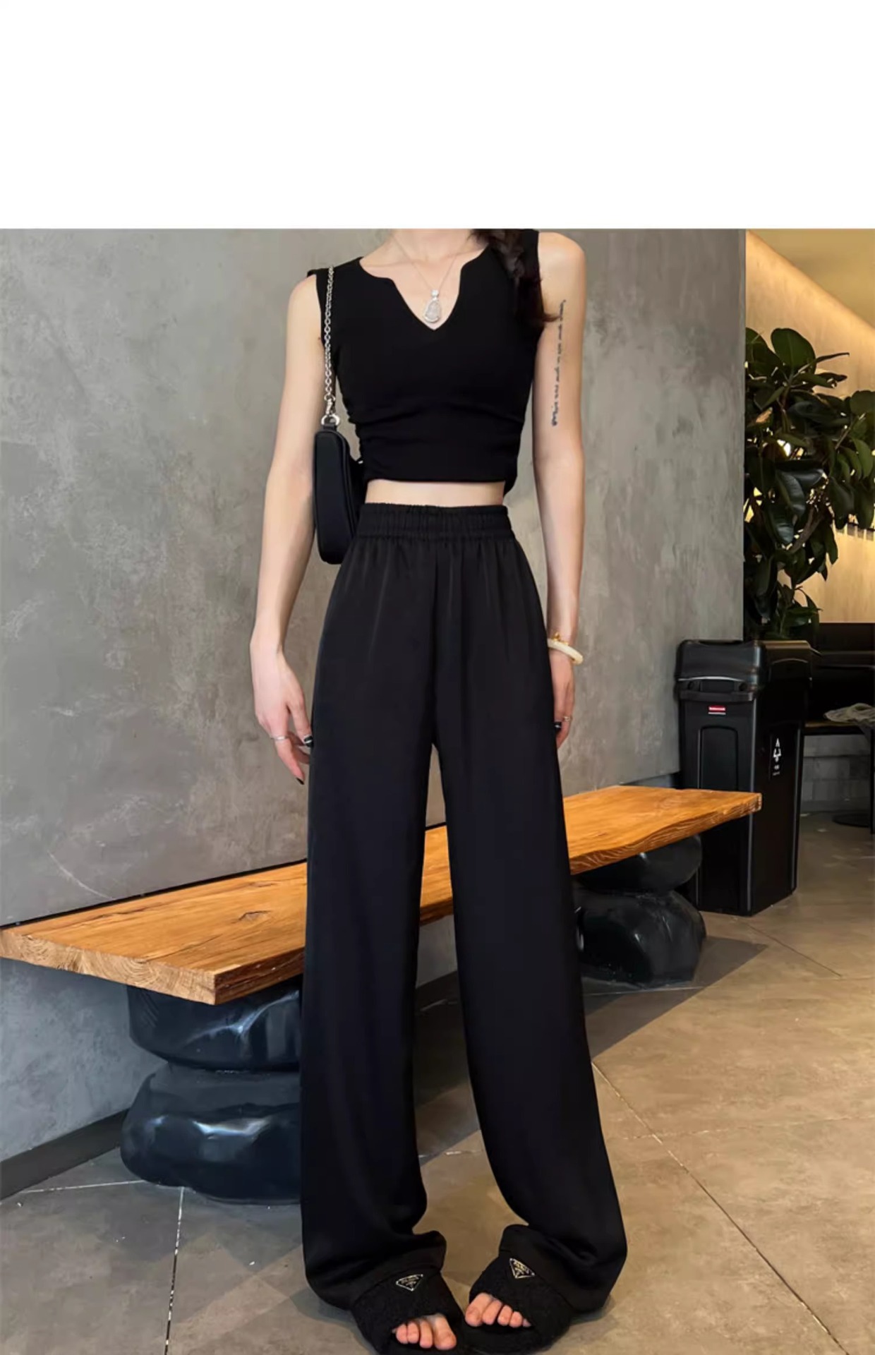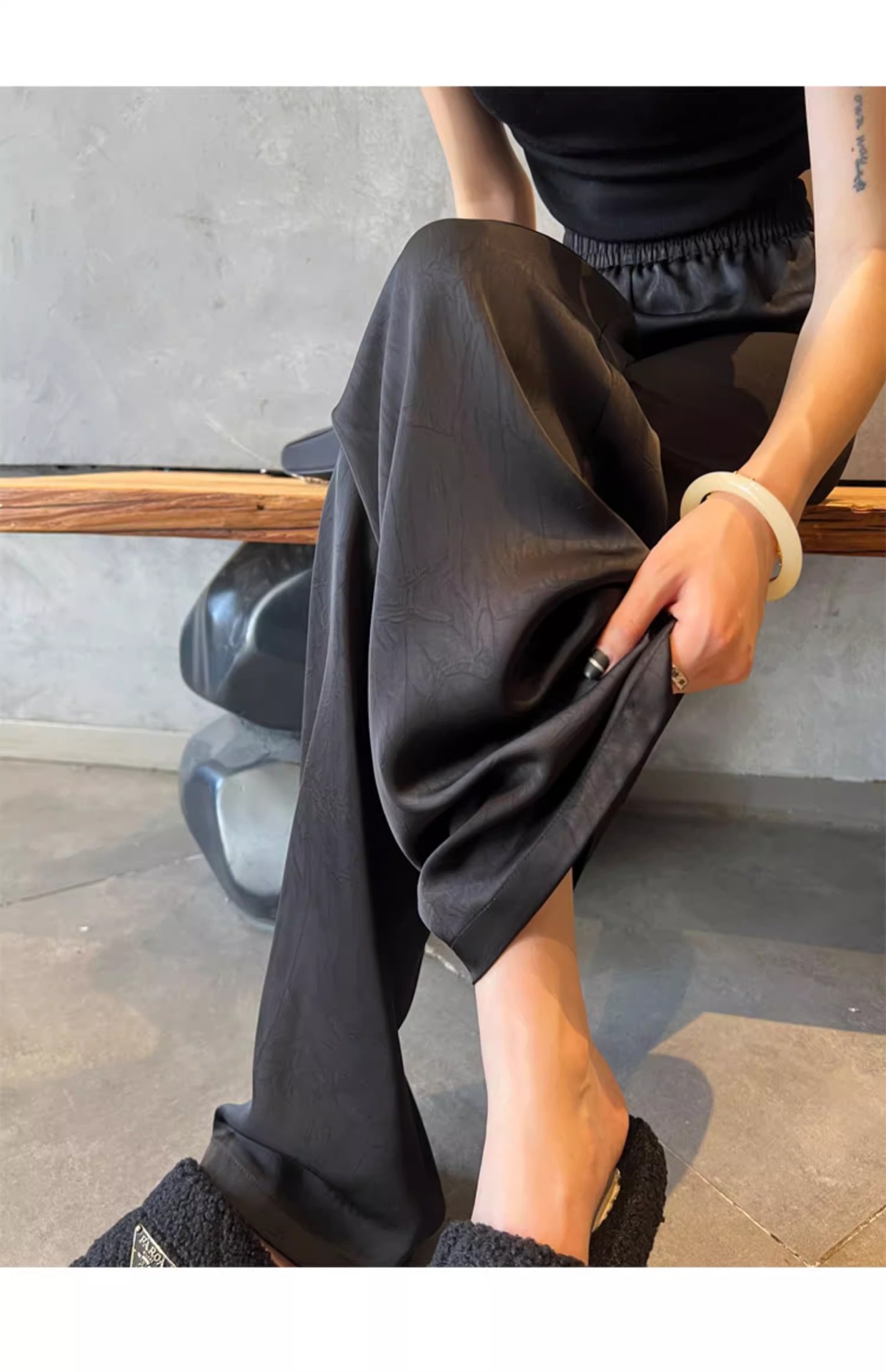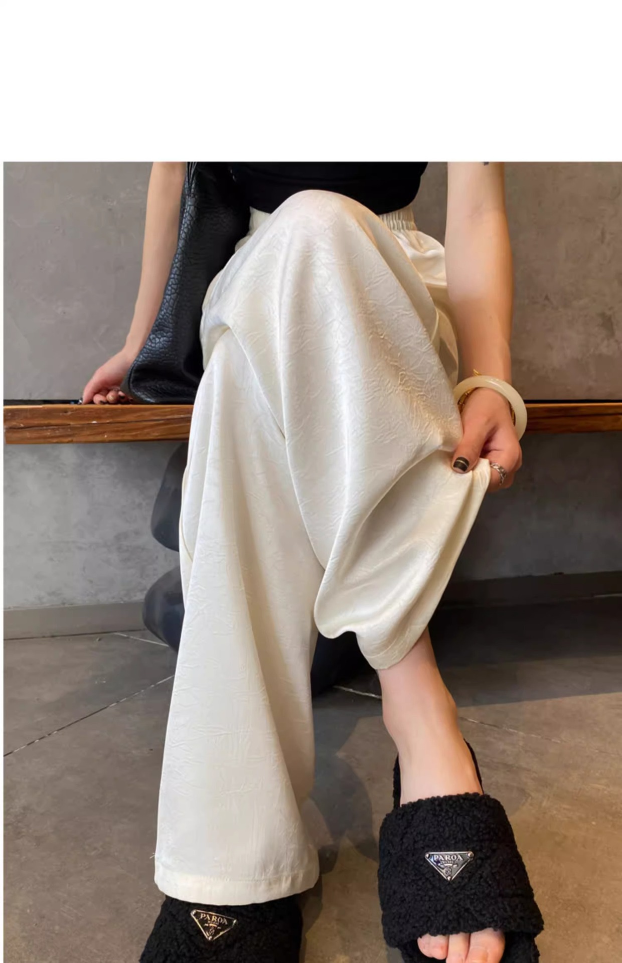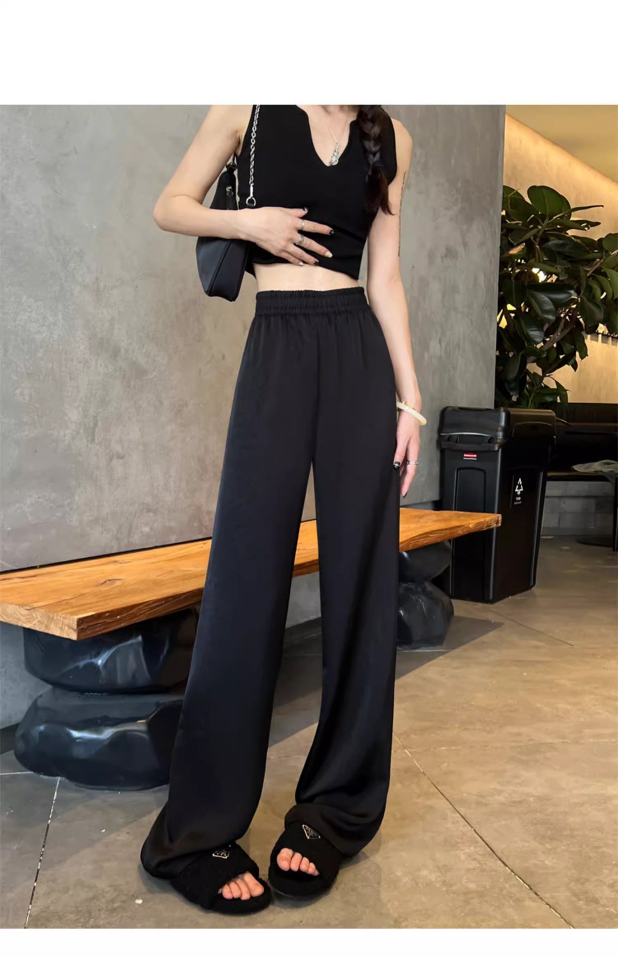 【热卖❗️59.9/件🔥缎面阔腿裤】松紧腰头不勒肚,宽松版型藏肉藏胯,高腰剪裁拉长比例,显高显瘦两不误,搭配短上衣/针织衫都显贵气,高腰垂感冰丝休闲直筒大码女裤胖mm200斤L
