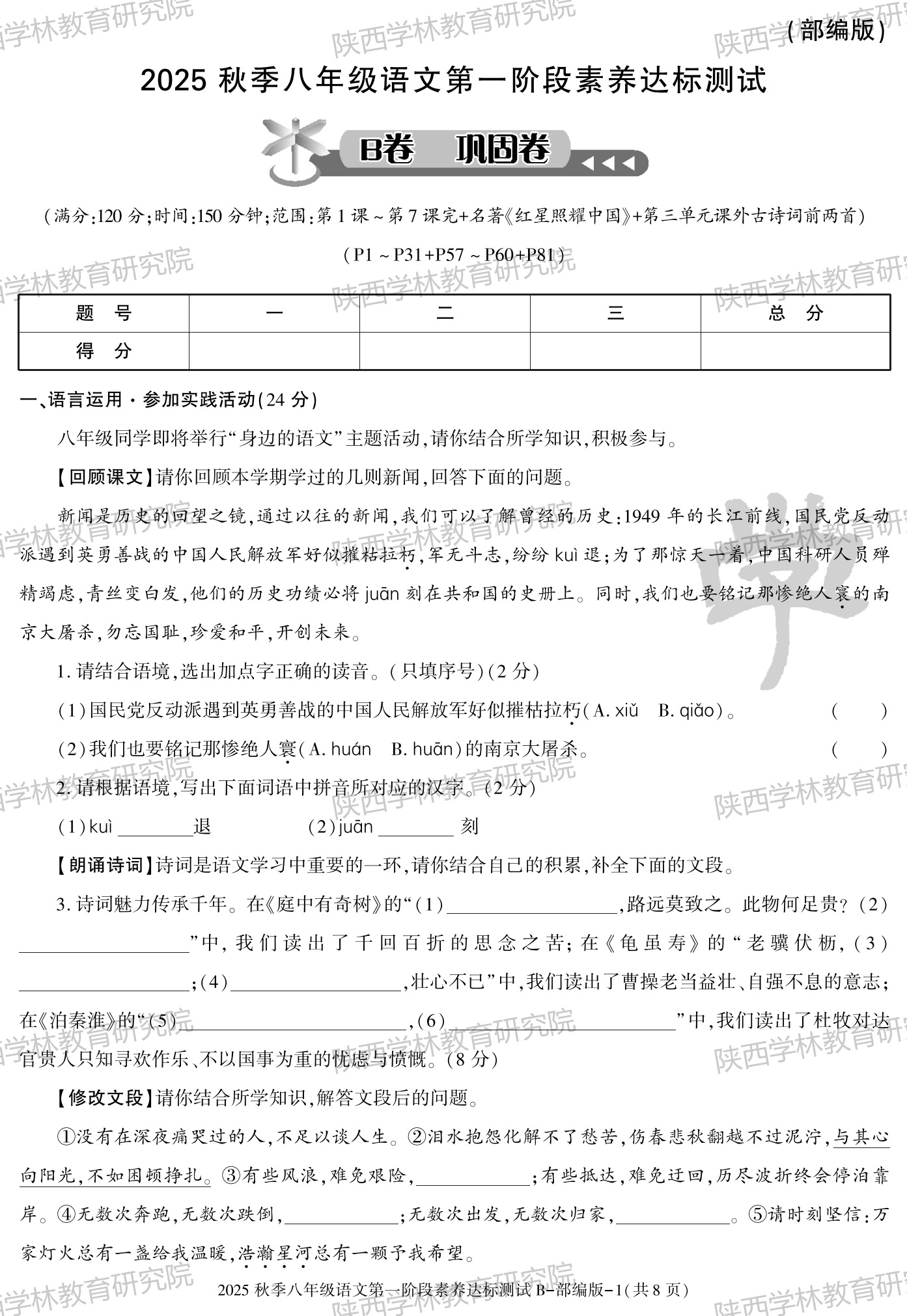 2025年秋小学【期中】自查卷(上册)语数英(版本可选)