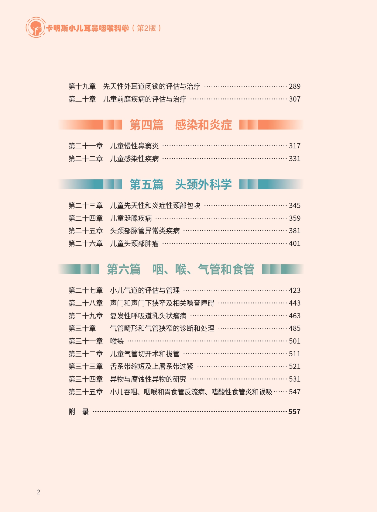目前,国内关于儿童耳鼻咽喉头颈外科系统的参考书籍较少,特引进Elsevier出版的Cummings Pediatric Otolaryngology(SECOND EDITION)。全书内容精炼,重点突出,立足临床,为患儿父母、普通公众和儿童医疗保健医师提供了儿童耳鼻咽喉科疾病诊疗的借鉴和参考。