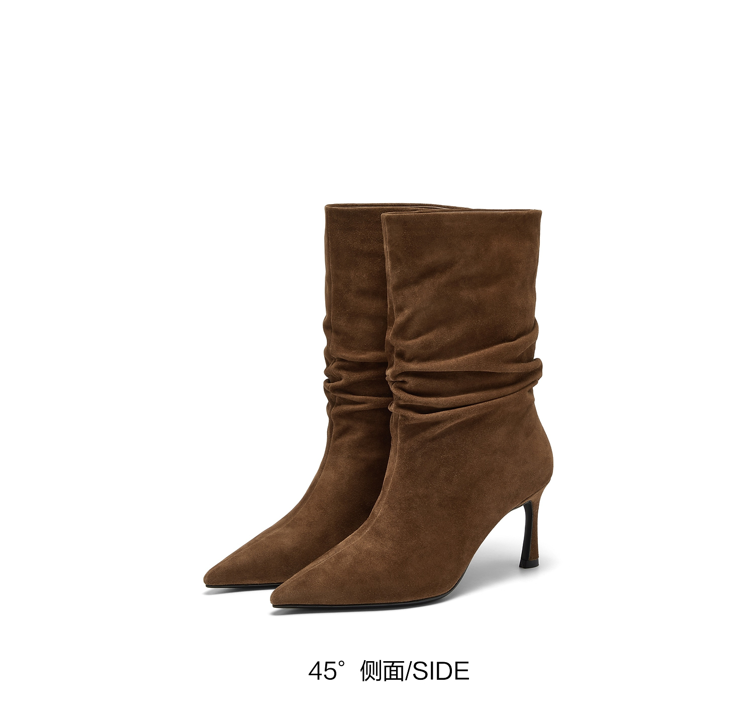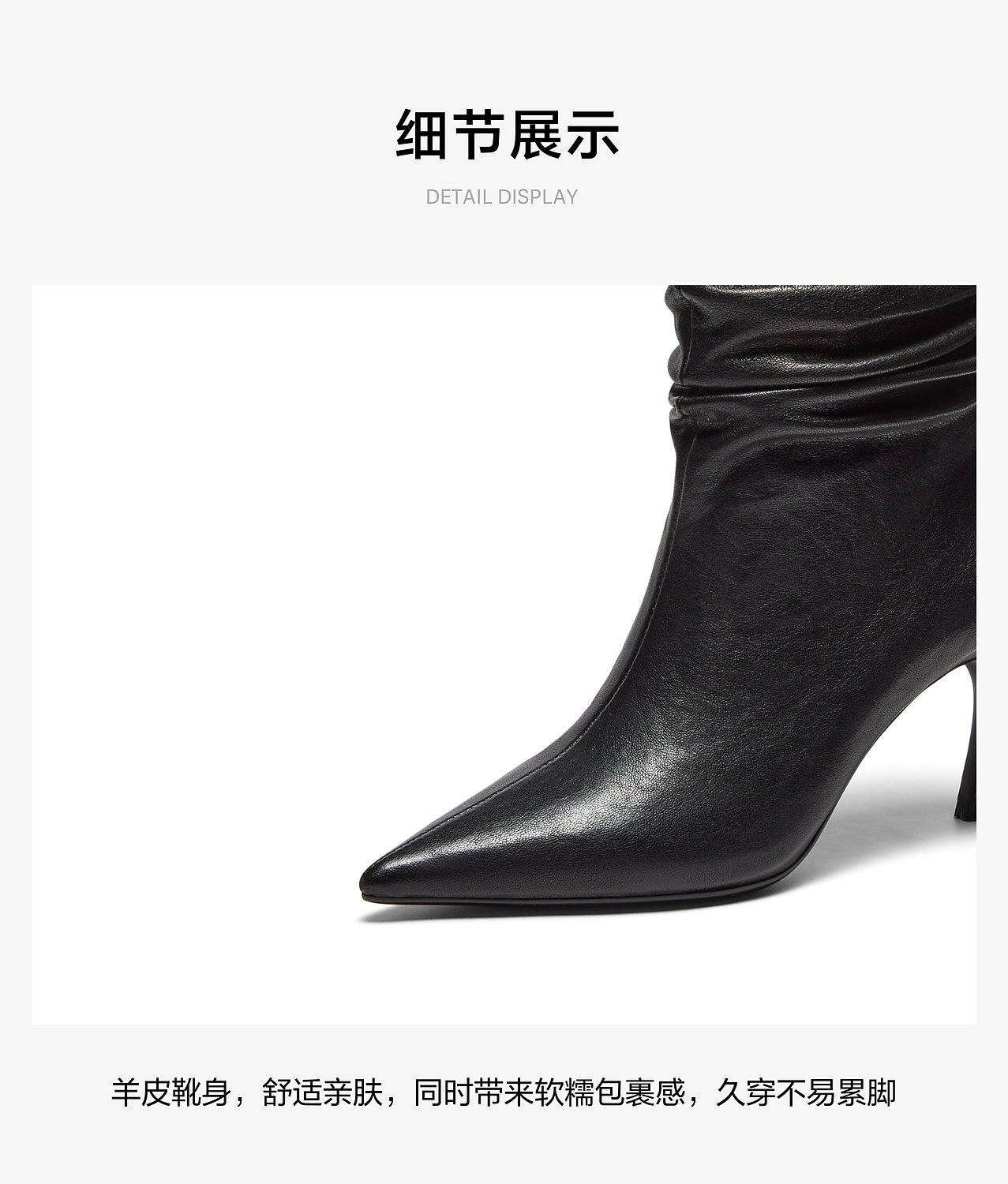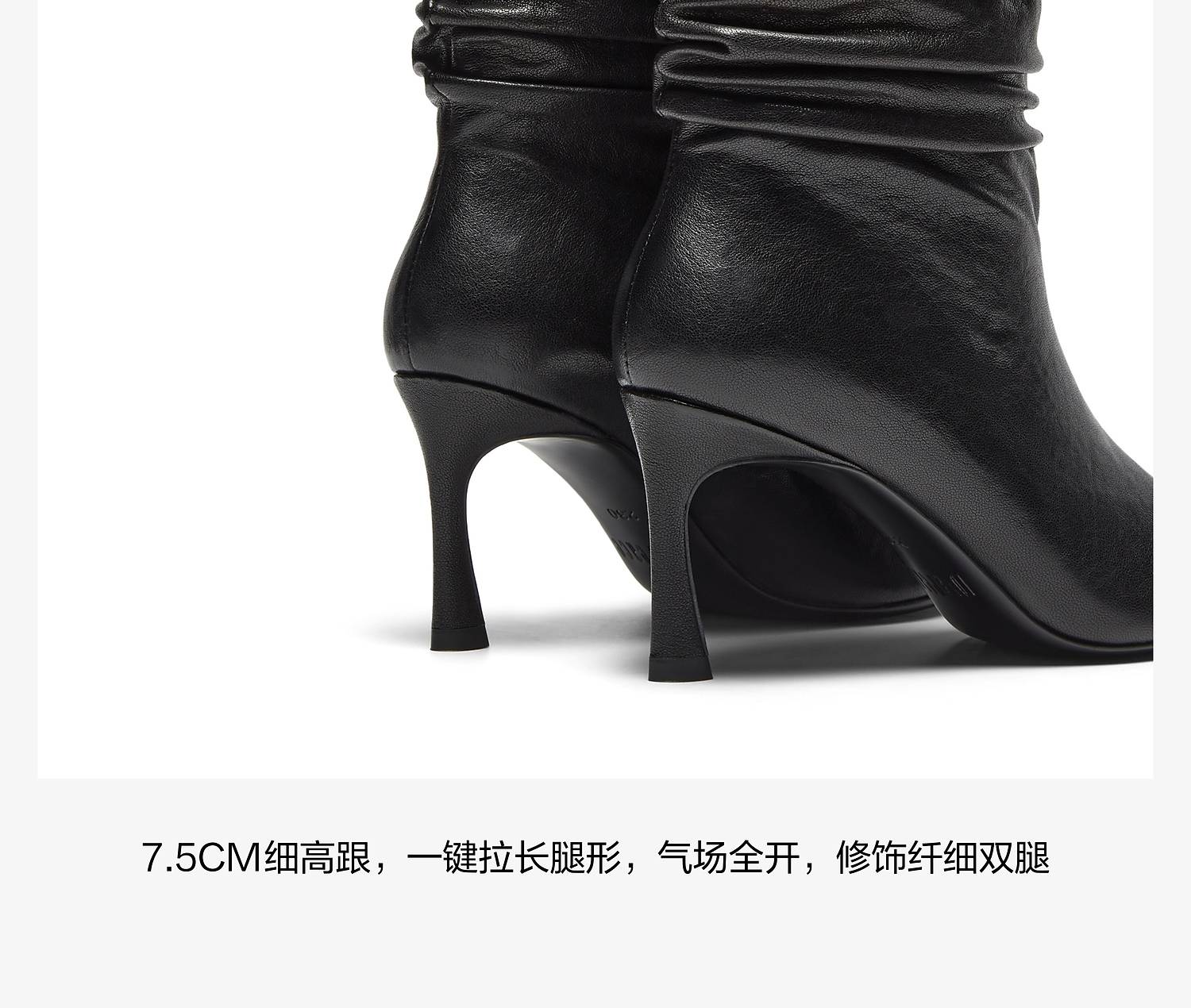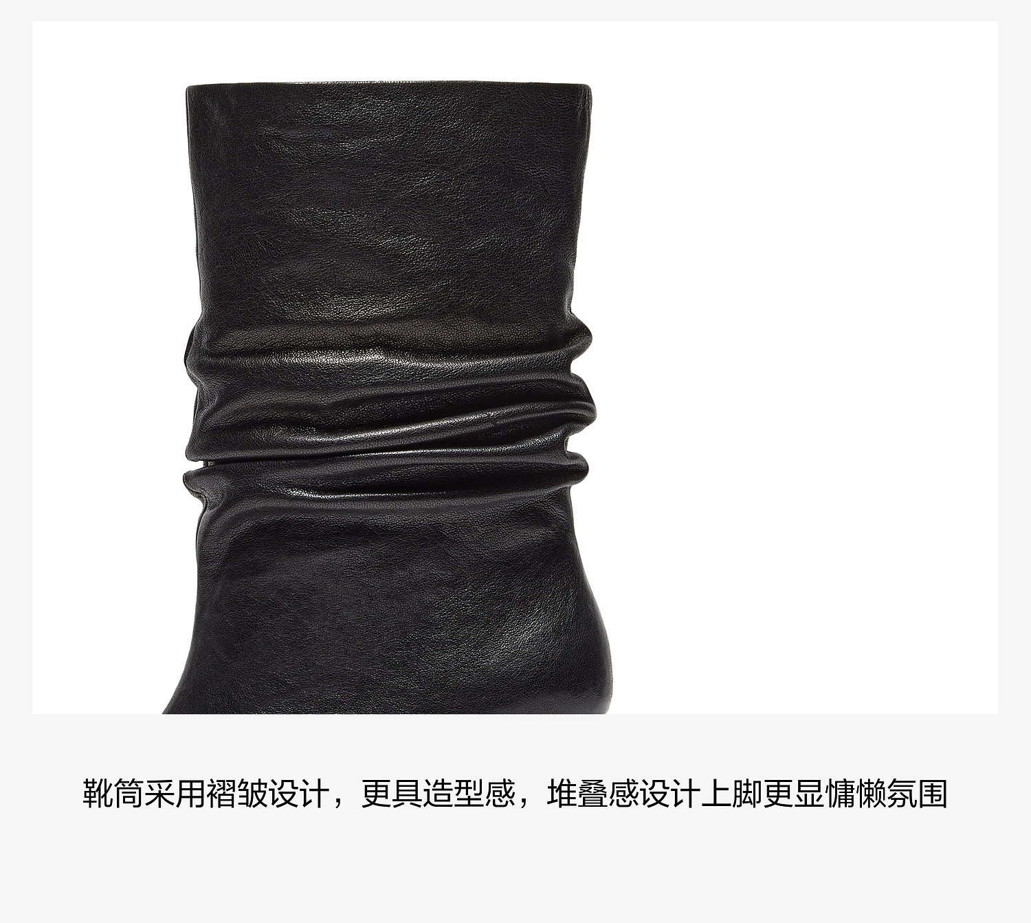 BF楼真美诗巴黎之冬2025新冬款羊皮细高跟堆堆时装短靴西部短靴女吊牌价2298折后价1798