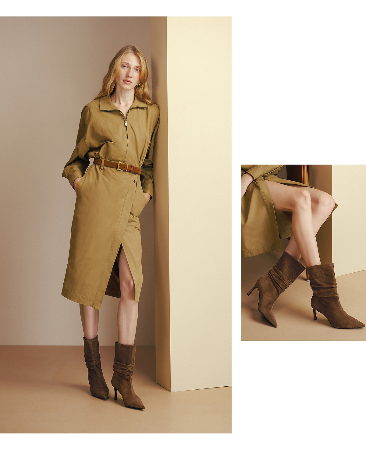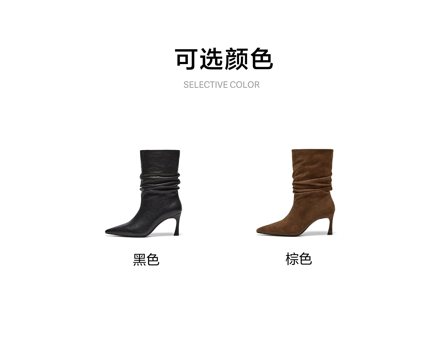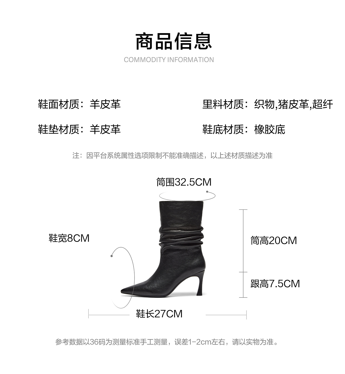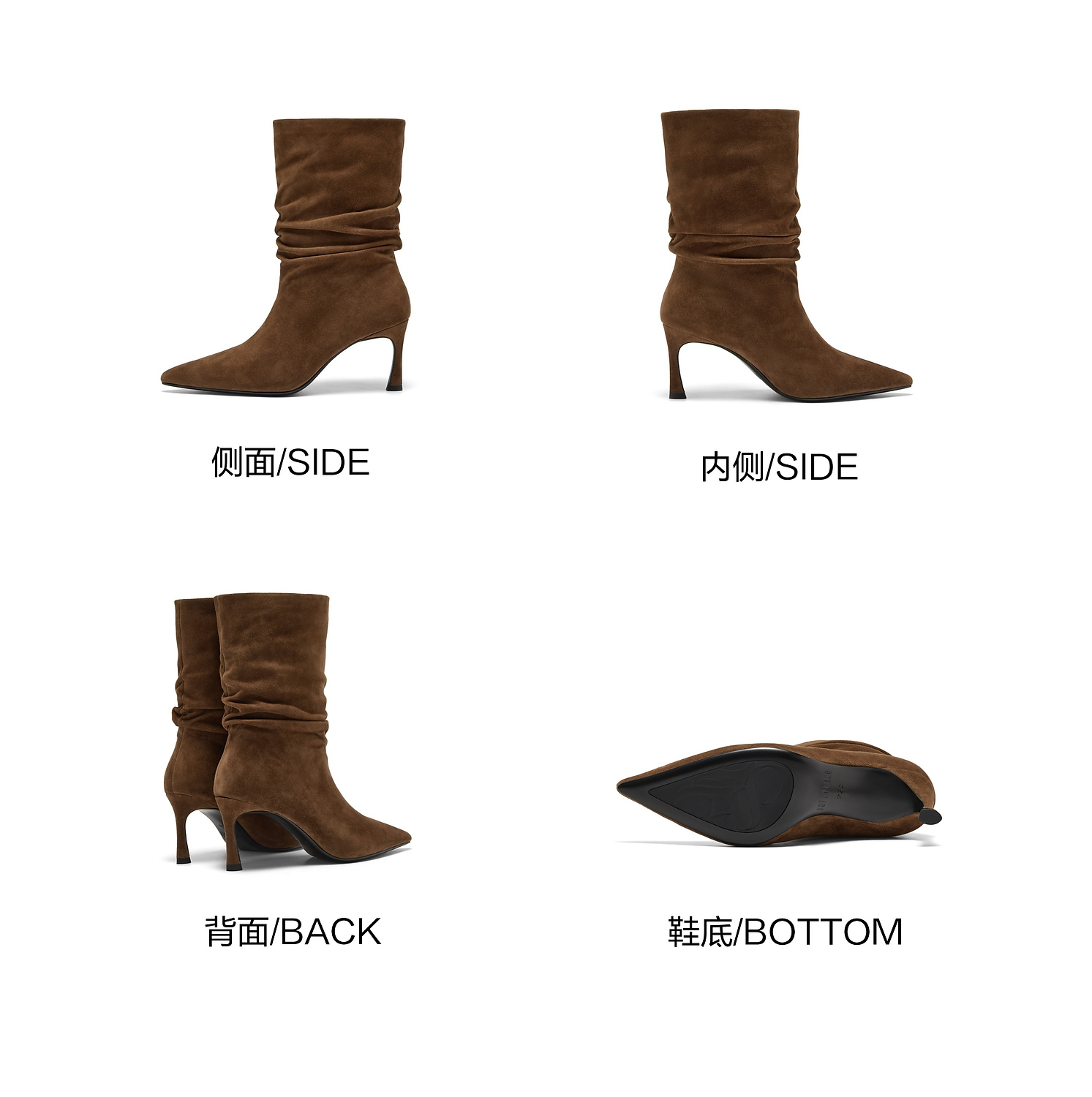 BF楼真美诗巴黎之冬2025新冬款羊皮细高跟堆堆时装短靴西部短靴女吊牌价2298折后价1798