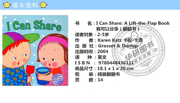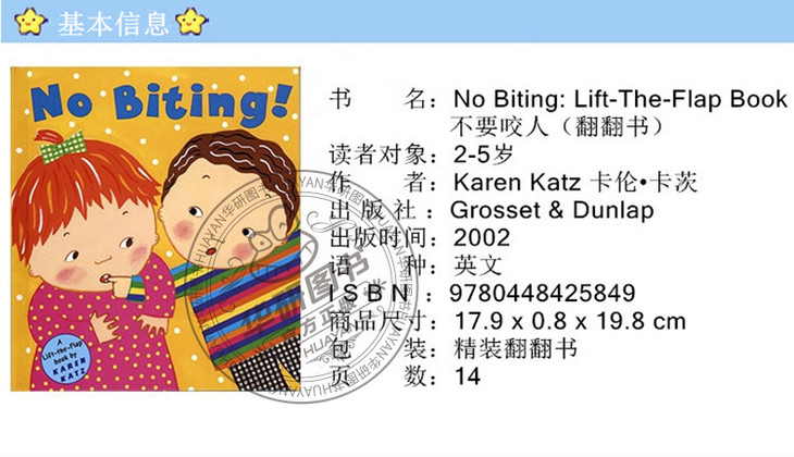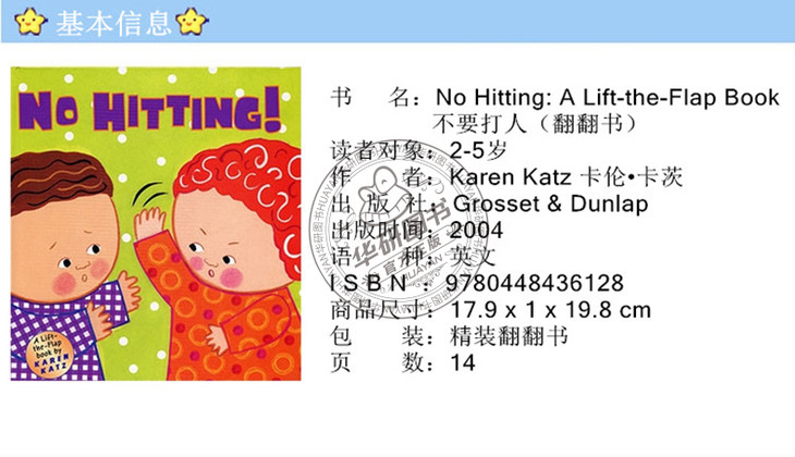书名:Karen Katz: I Can Share, No Biting, No Hitting卡伦·卡茨翻翻书:我可以分享,不要咬人,不要打人