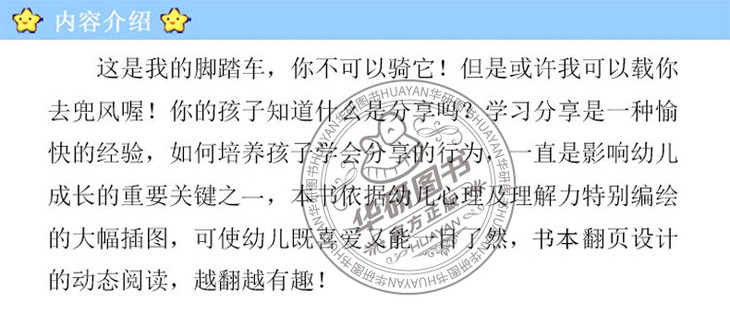 这是我的脚踏车,你不可以骑它!……但是或许我可以载你去兜风喔!你的孩子知道什么是分享吗?学习分享是一种愉快的经验,如何培养孩子学会分享的行为,一直是影响幼儿成长的重要关键之一。