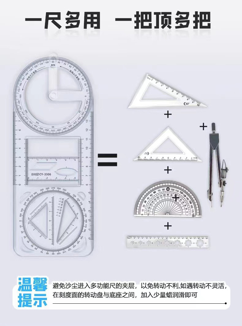 中小学生活动角尺多功能尺子 小学版 几何图形学生专用画绘图函数尺/个