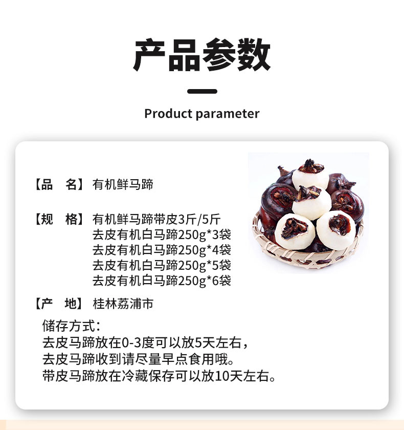 【厂商直发】广西有机鲜马蹄荸荠带皮去皮白马蹄清甜多汁新鲜包邮