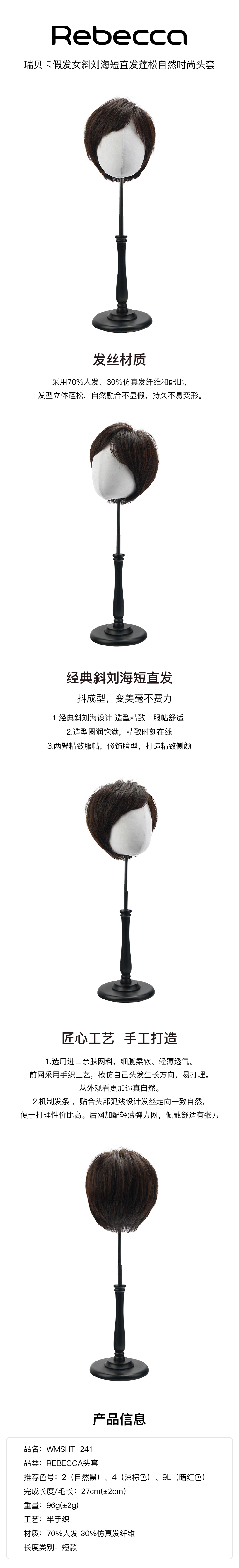 Rebecca瑞贝卡假发女斜刘海短直发蓬松自然时尚头套