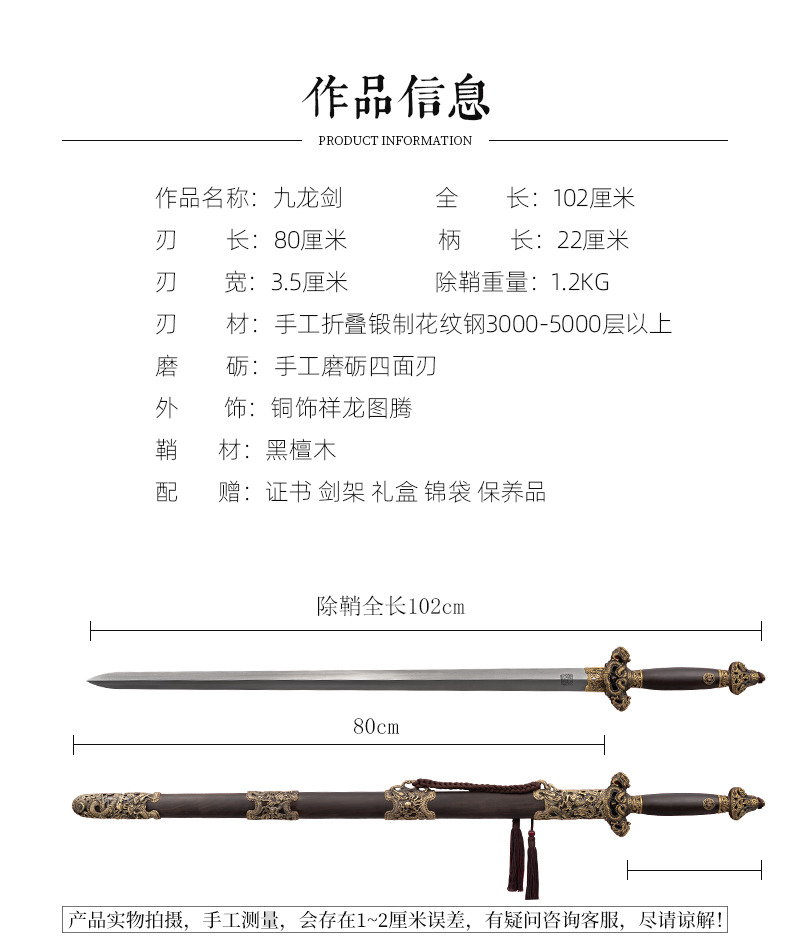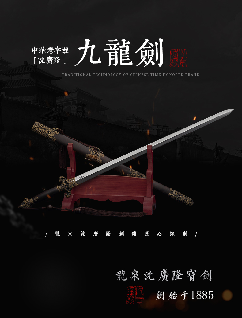 九龙剑 龙泉沈广隆宝剑 传统剑 礼品剑 收藏剑 未开刃
