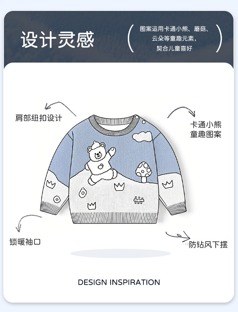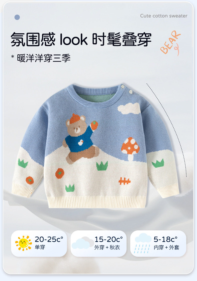 欢乐小熊针织纯棉A类婴儿毛衣秋冬拼色男童毛衣加厚帅气宝宝毛衣