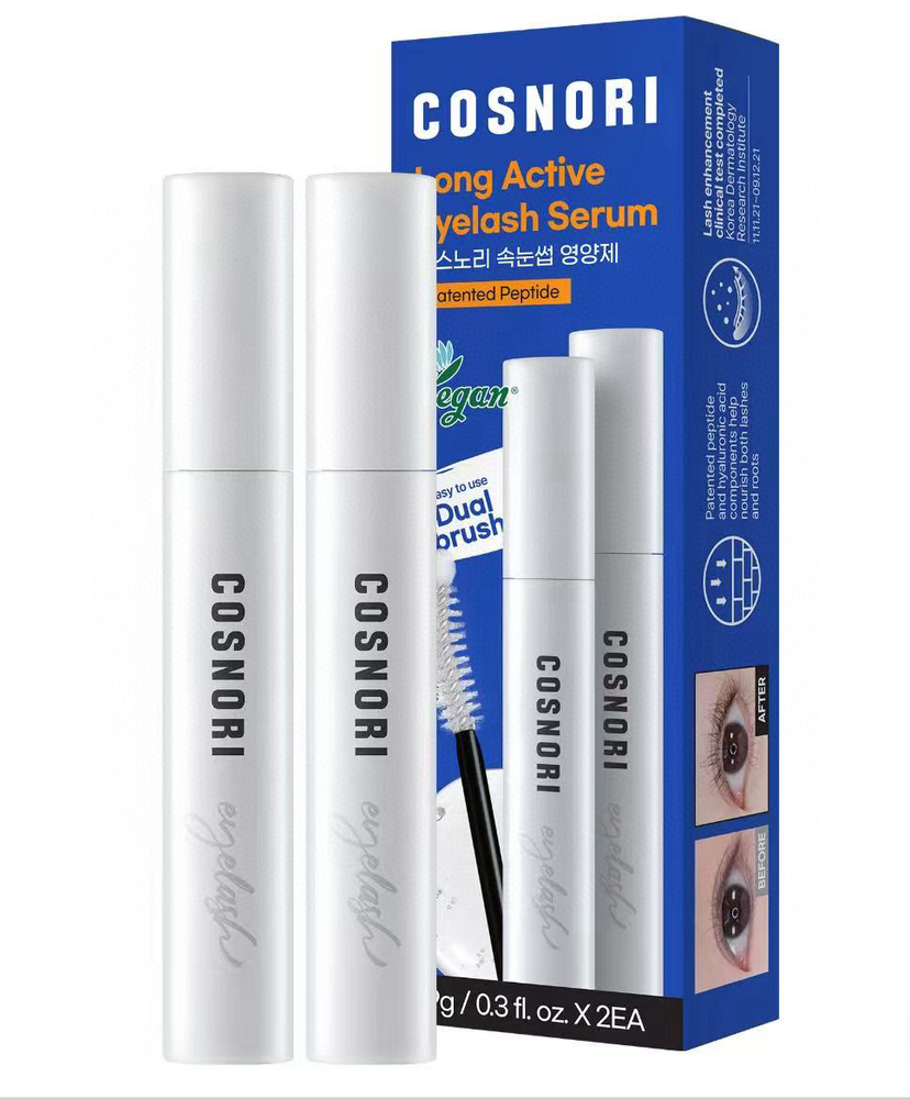COSNORI长效睫毛滋养精华,美国🇺🇸直邮特价298元🉐包税包邮到手了🔥包税包邮到手了🔥每套2支,每支9g装!让你的睫毛每天都更浓密、更修长。人气品牌COSNORI,采用专利肽配方与纯素植物成分,温和无刺激,有效滋养睫毛根部,减少断裂与脱落。双头刷设计,精准护理每一根睫毛,从根部到尾端深层滋养,帮助睫毛自然增长、柔韧有光泽。早晚使用皆可,妆前涂抹不影响眼妆,持续使用可见显著变化。每组含两支装,性价比高,轻松拥有浓密卷翘的素颜美睫,让双眼更加明亮有神,重塑自信魅力。