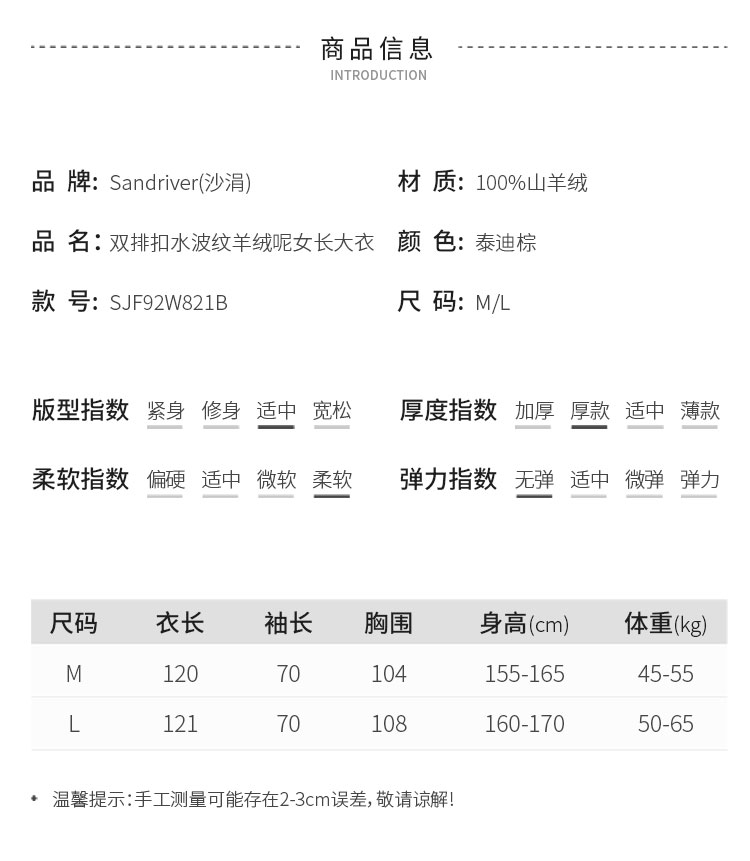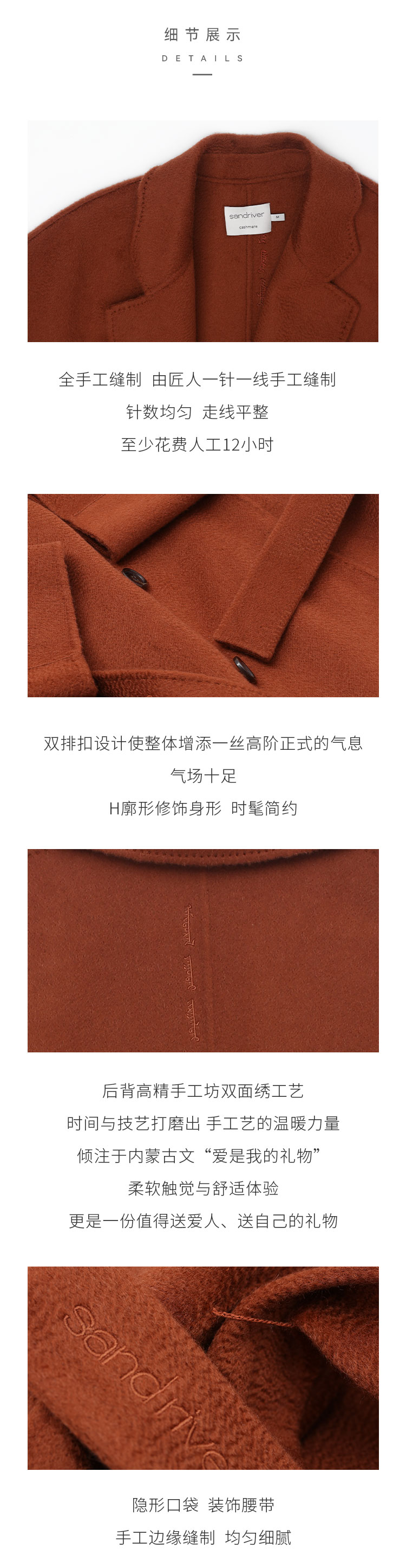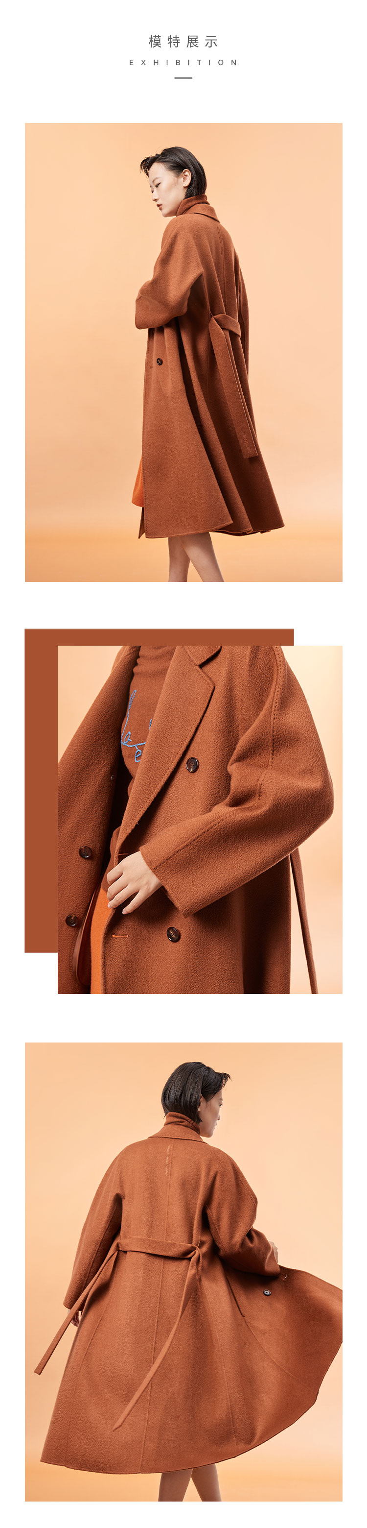 双排扣水波纹羊绒呢女长大衣 SJF92W821B
