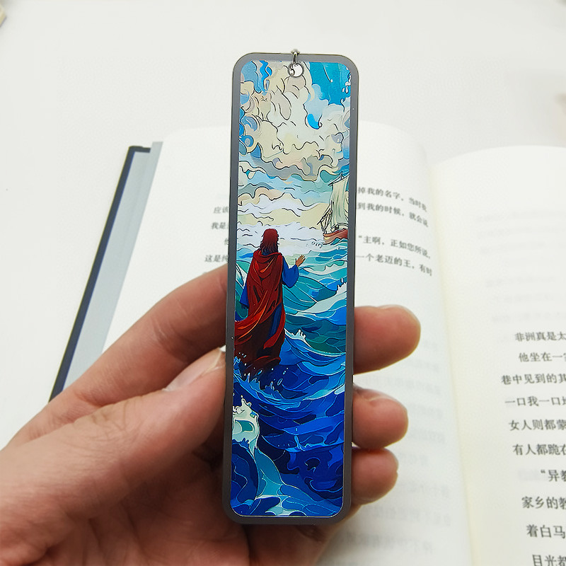 信心之类——行走在水面上彩绘书签正面为彩绘图案,背面为话语。带礼盒装