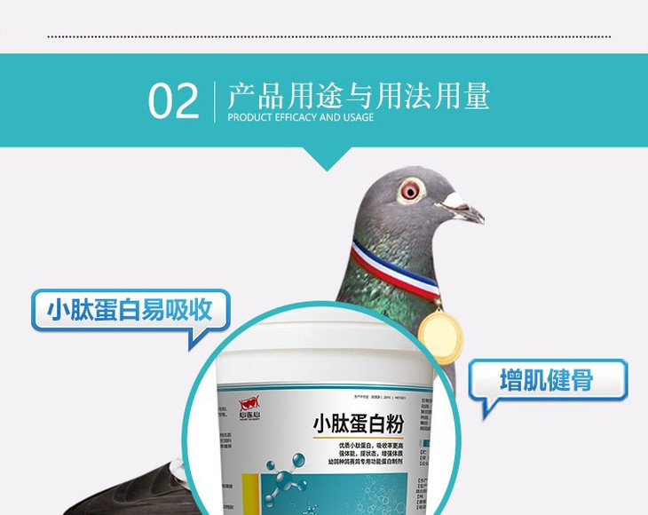 【小肽蛋白粉】1kg,补体蛋白拌鸽粮饲料氨基酸微量元素换羽(西安心连心)