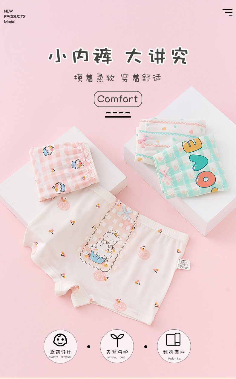 女童莫代尔平角内裤儿童四角女宝宝短裤中大童小女孩冰丝夏季薄款_HLY