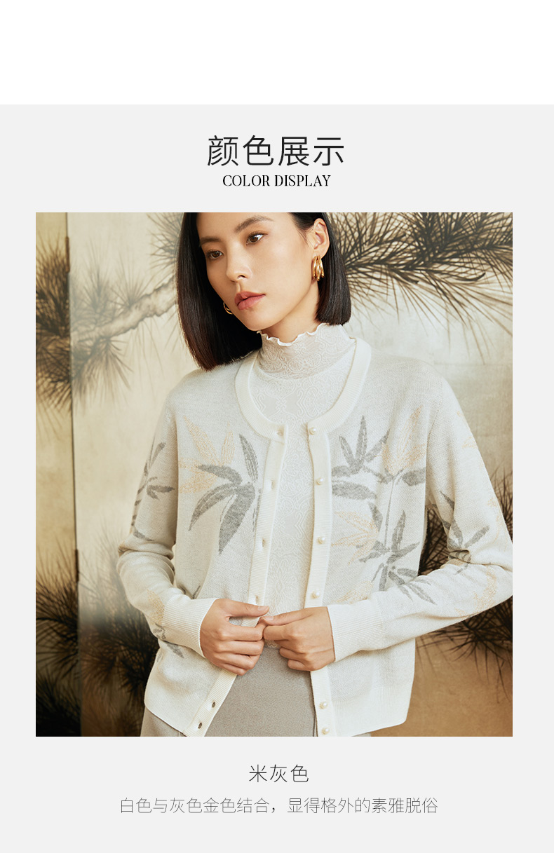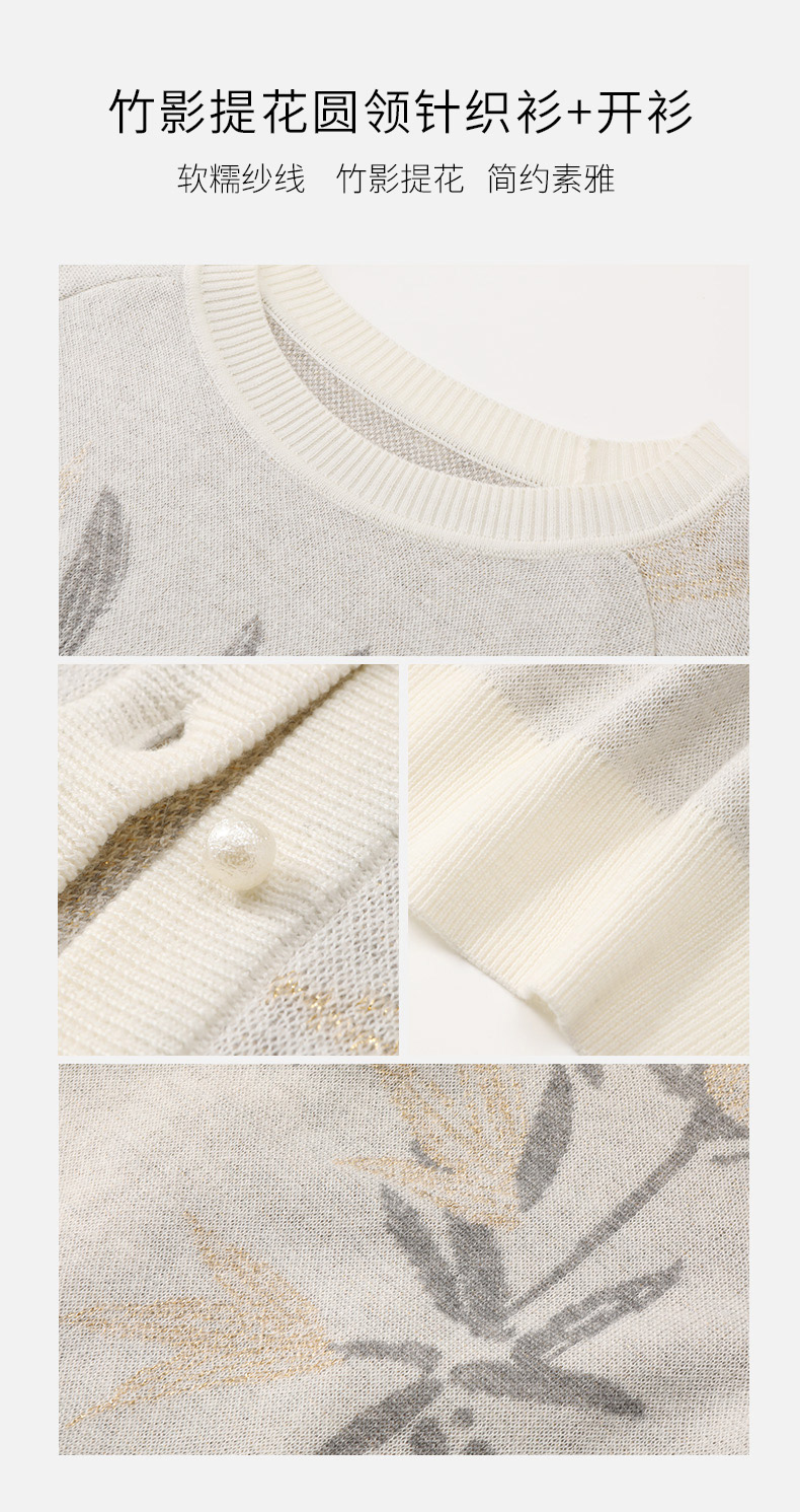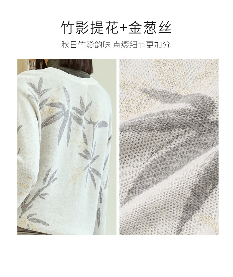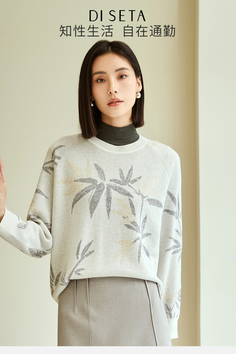 玳莎竹影提花针织衫女秋冬优雅复古设计感圆领长袖羊毛上衣 DD33301